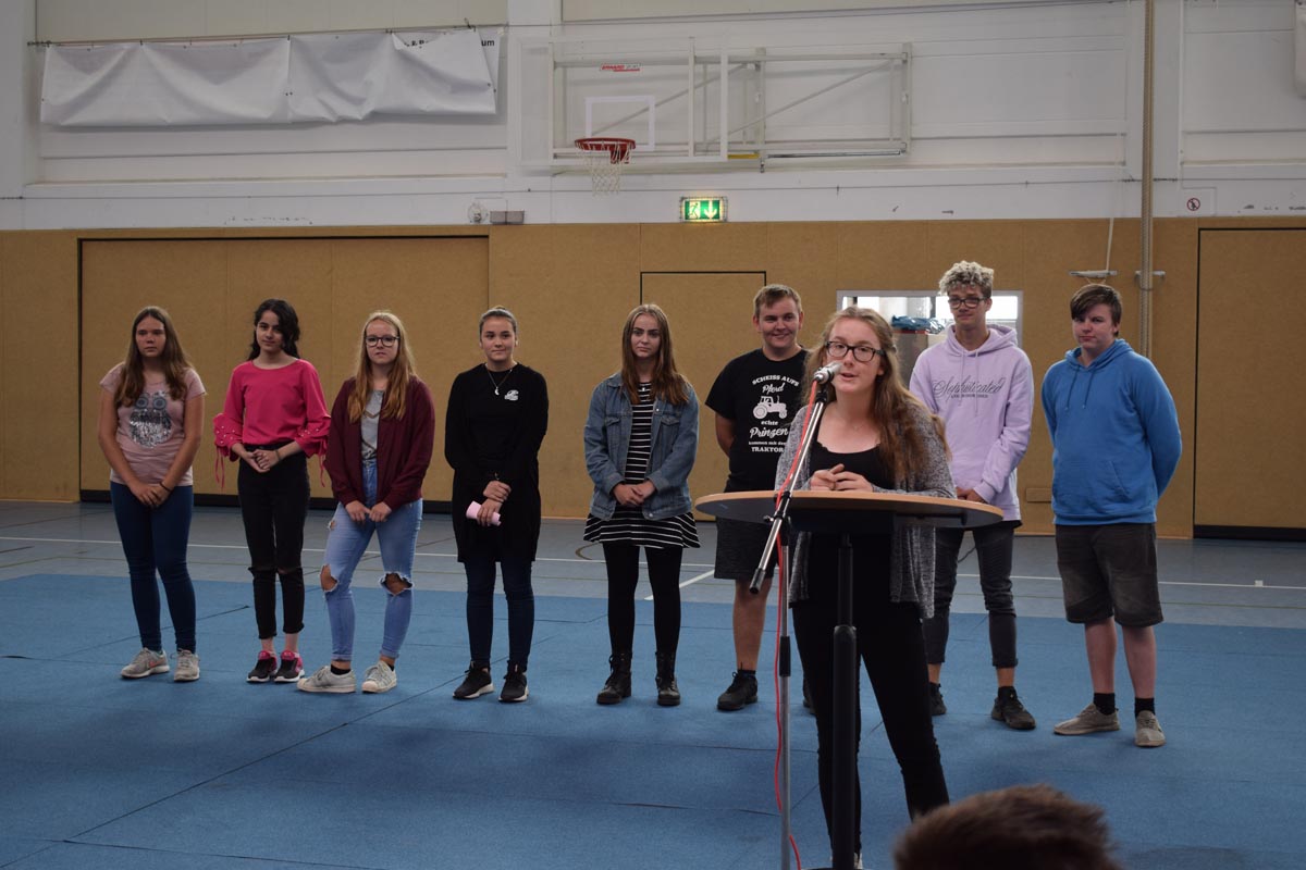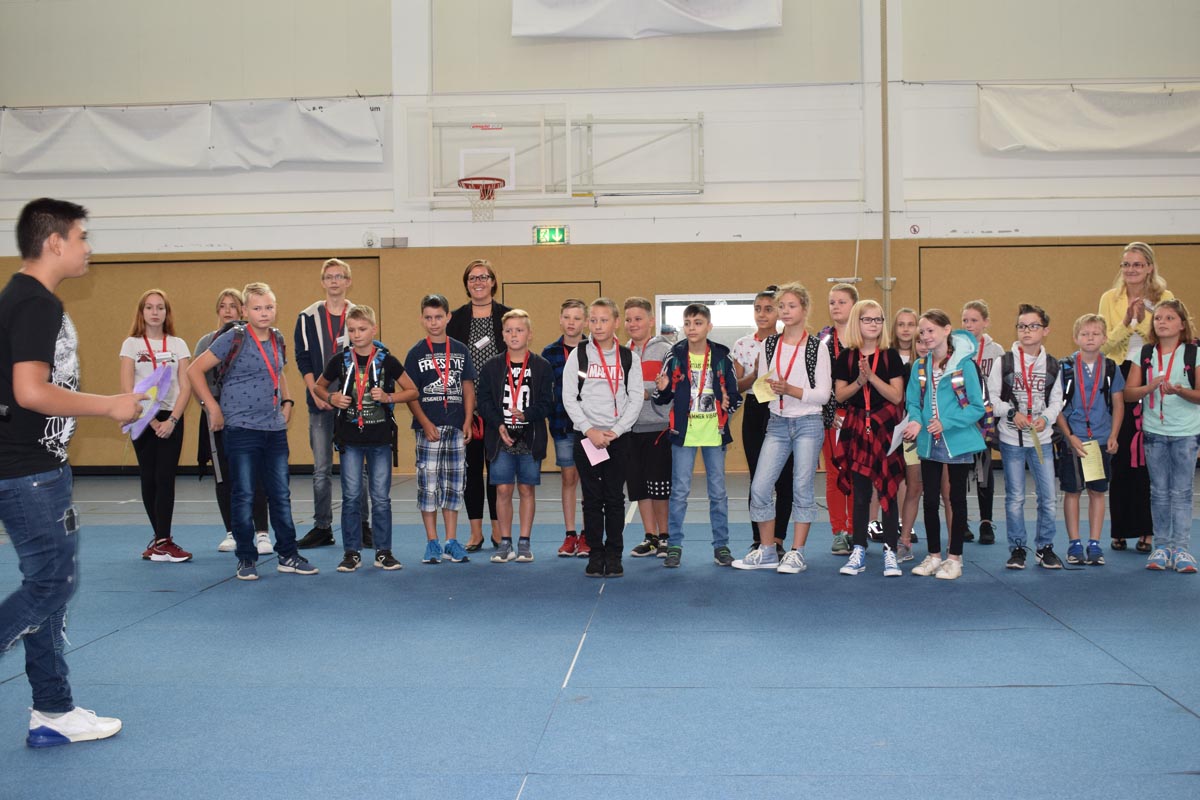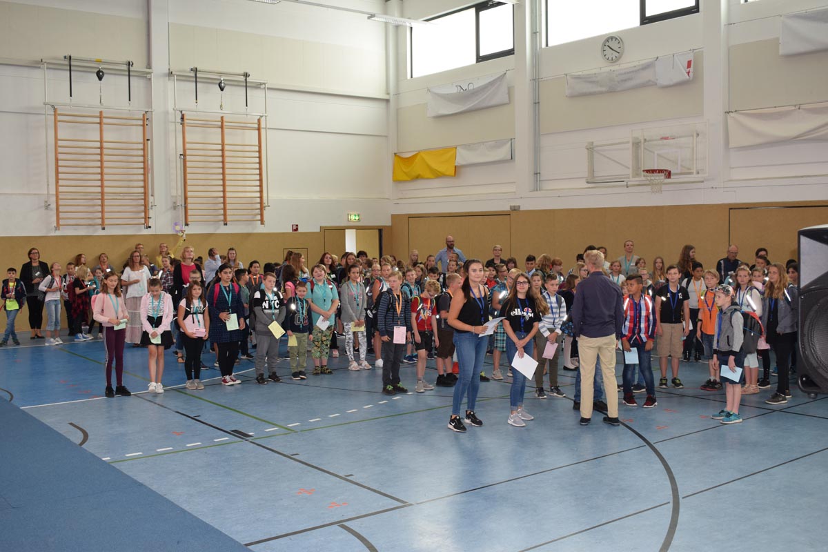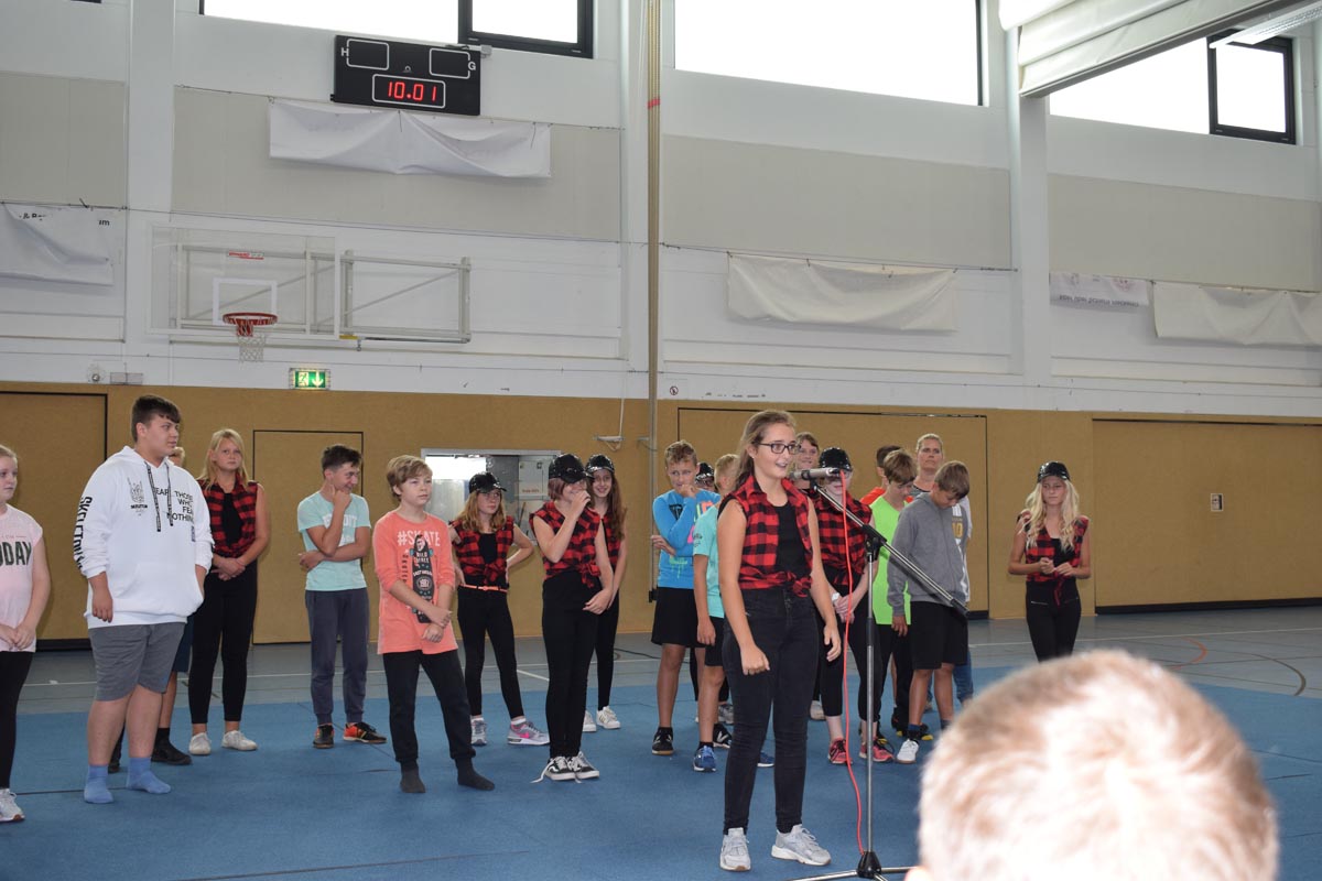 Am Dienstag, d. 21. August 2018 fand um 09.30 Uhr die Einschulungsfeier mit kurzweiligen Wort- und Tanzbeiträgen der Sechstklässler, der Konfliktlotsen und der Gruppe „Crazy Chicks“ statt.