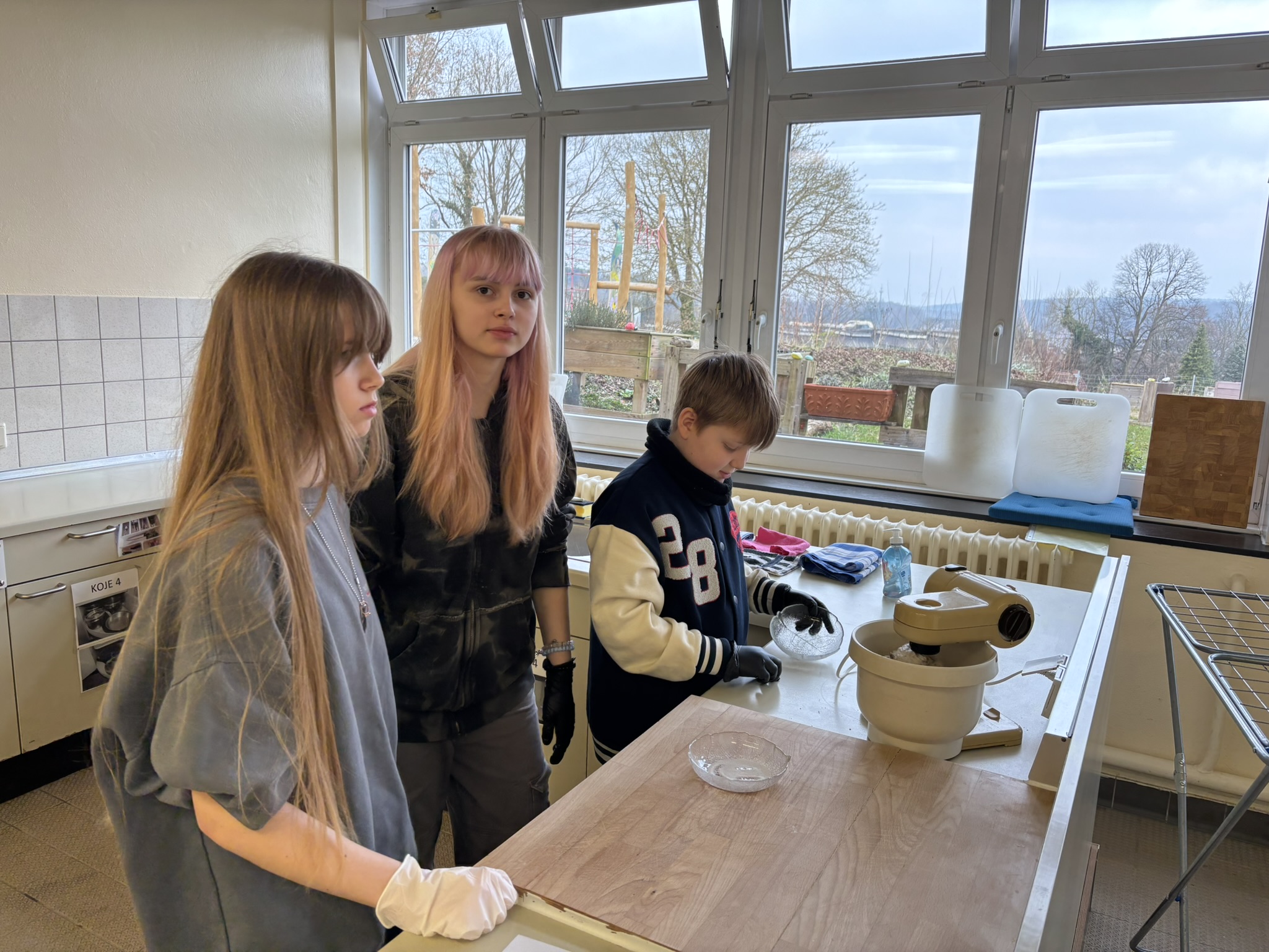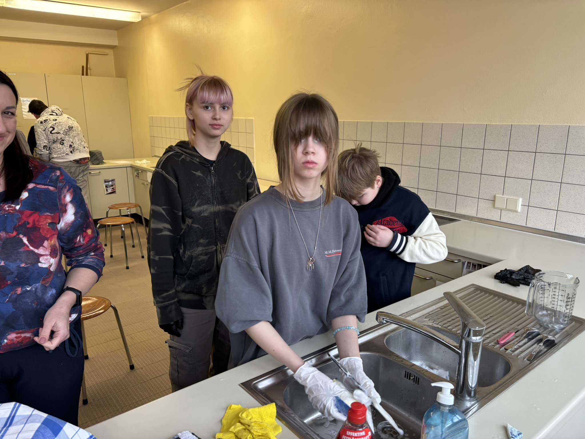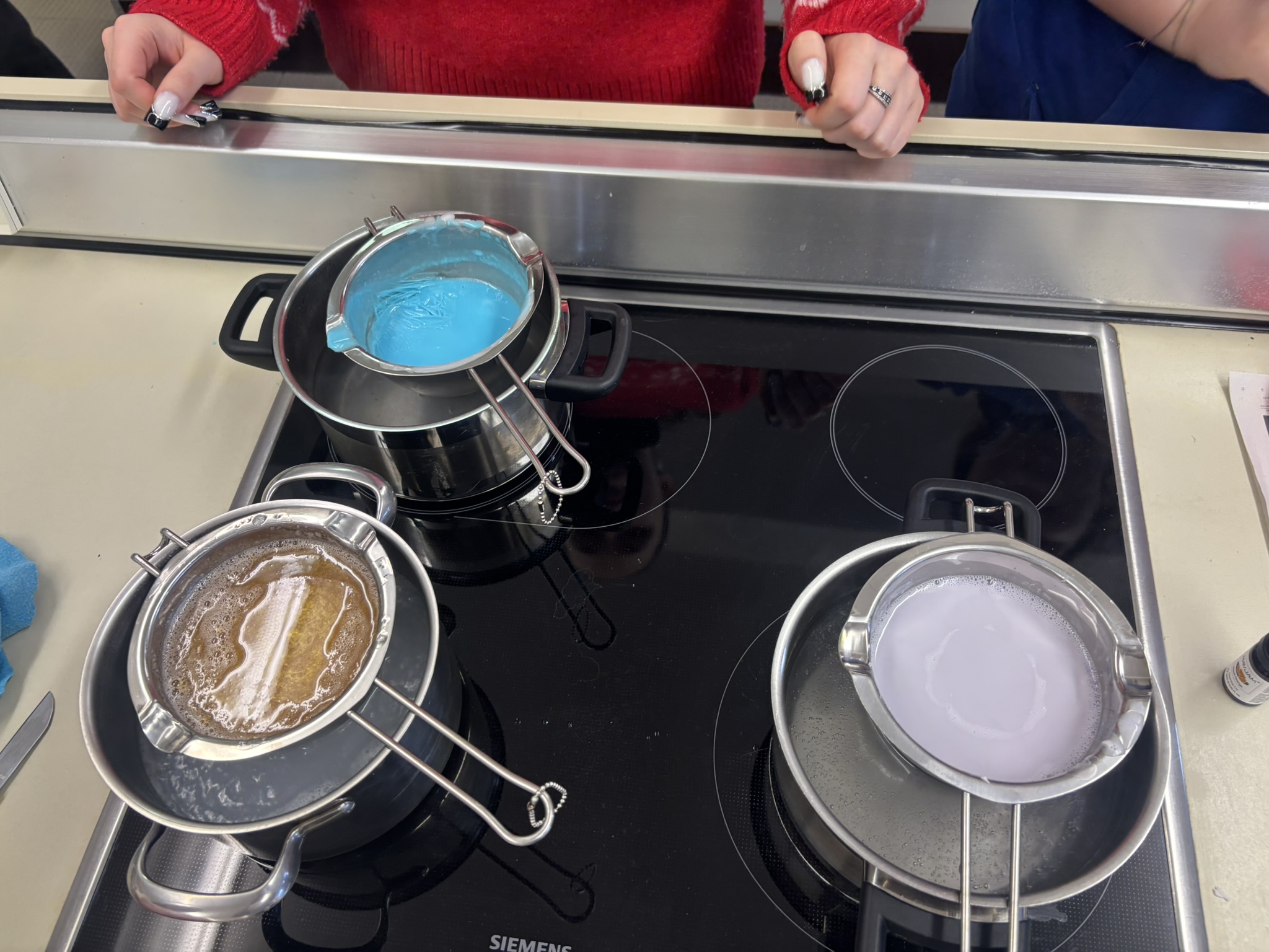 Da uns noch ein wenig Zeit blieb, haben wir kleine Seifen hergestellt – zum Beispiel in Herzform oder in Form eines kleinen Fisches. Dazu haben wir Farbe und verschiedene Düfte unter die Seifenrohmasse gemischt und waren mit dem Ergebnis sehr zufrieden!!