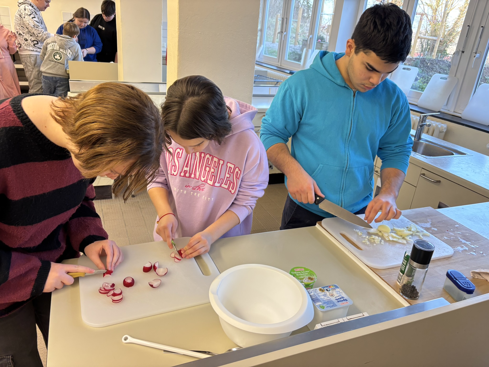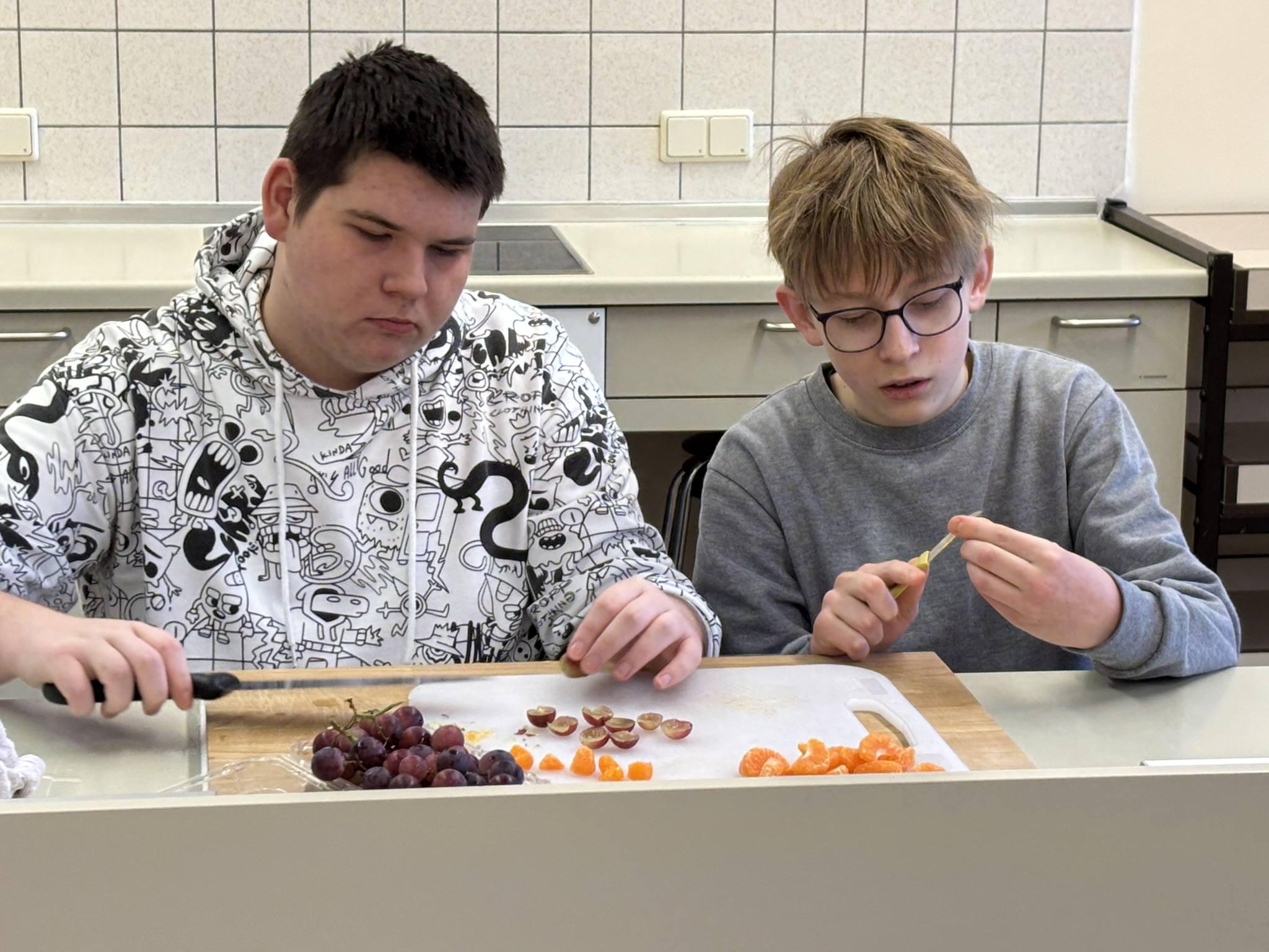 Außerdem haben wir eine süße Quarkspeise, einen Kräuterquark und eine große Portion Obstsalat zubereitet und so konnten wir ausgiebig frühstücken!