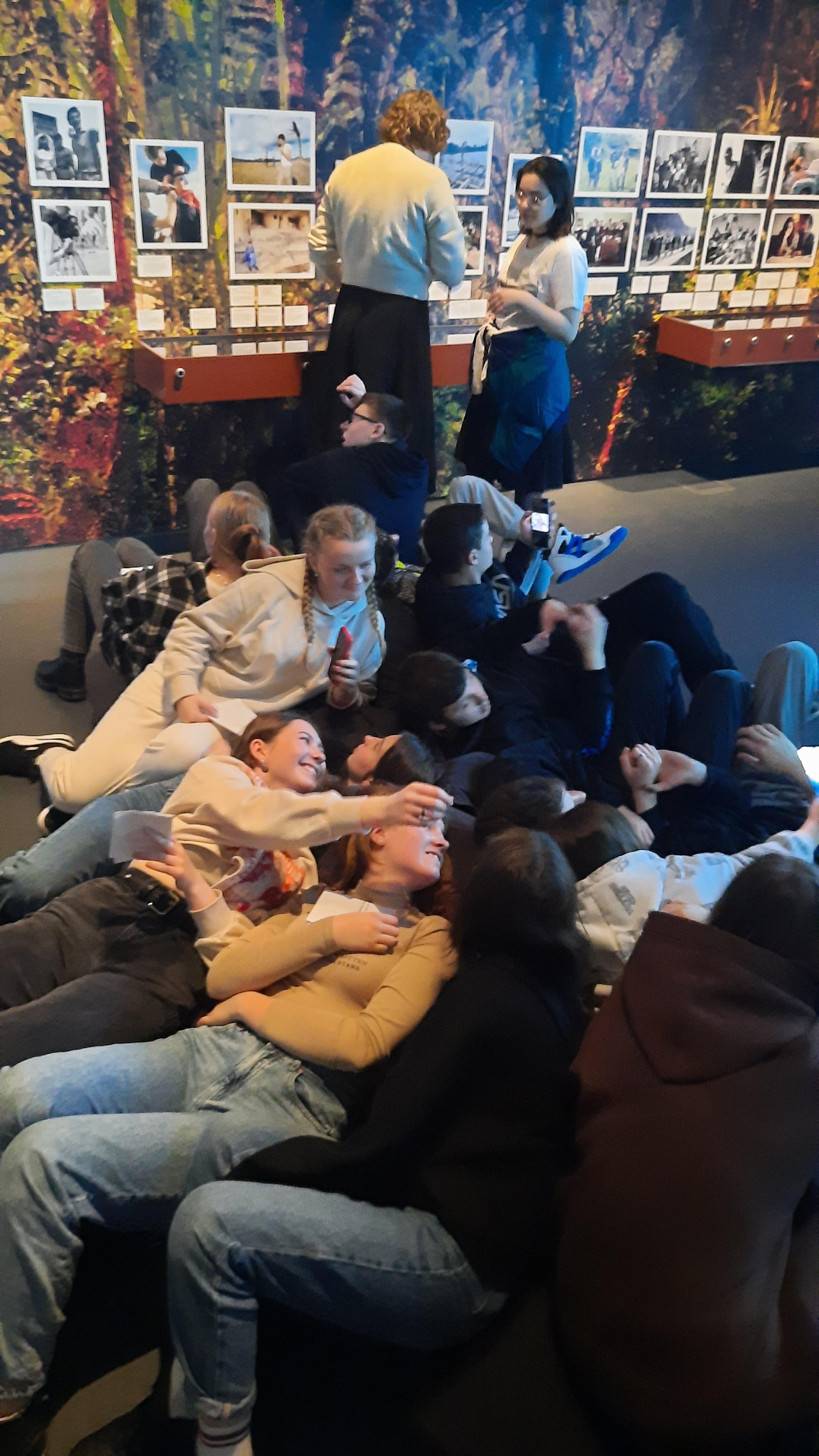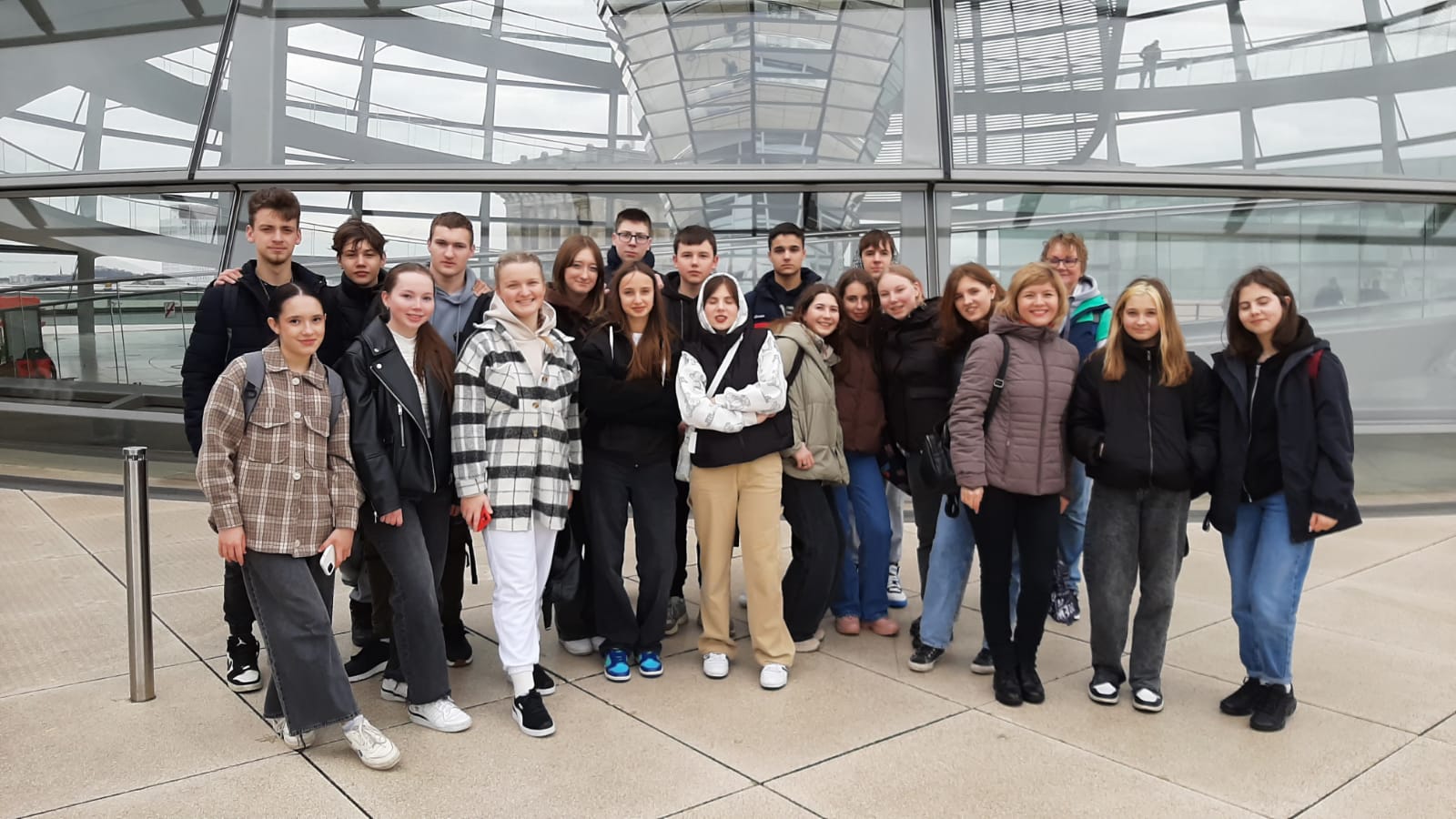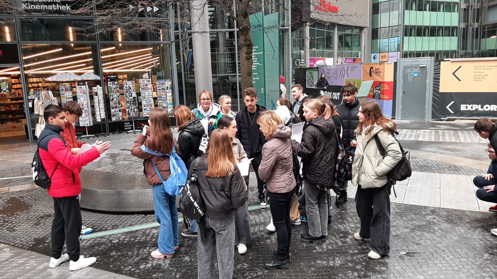 Am Kudamm haben wir dann die die Kaiser-Wilhelm-Gedächtniskirche besucht und waren erstaunt, wie schön die blauen Kirchenfenster von innen aussehen. Einige von uns haben sich die in der Kirche ausgestellten Fotos angesehen und stellten voller Erstaunen fest, dass dort Bilder des russischen Krieges gegen die Ukraine zu sehen waren. Wir waren schockiert, aber auch dankbar für diese Dokumentation des Grauens.