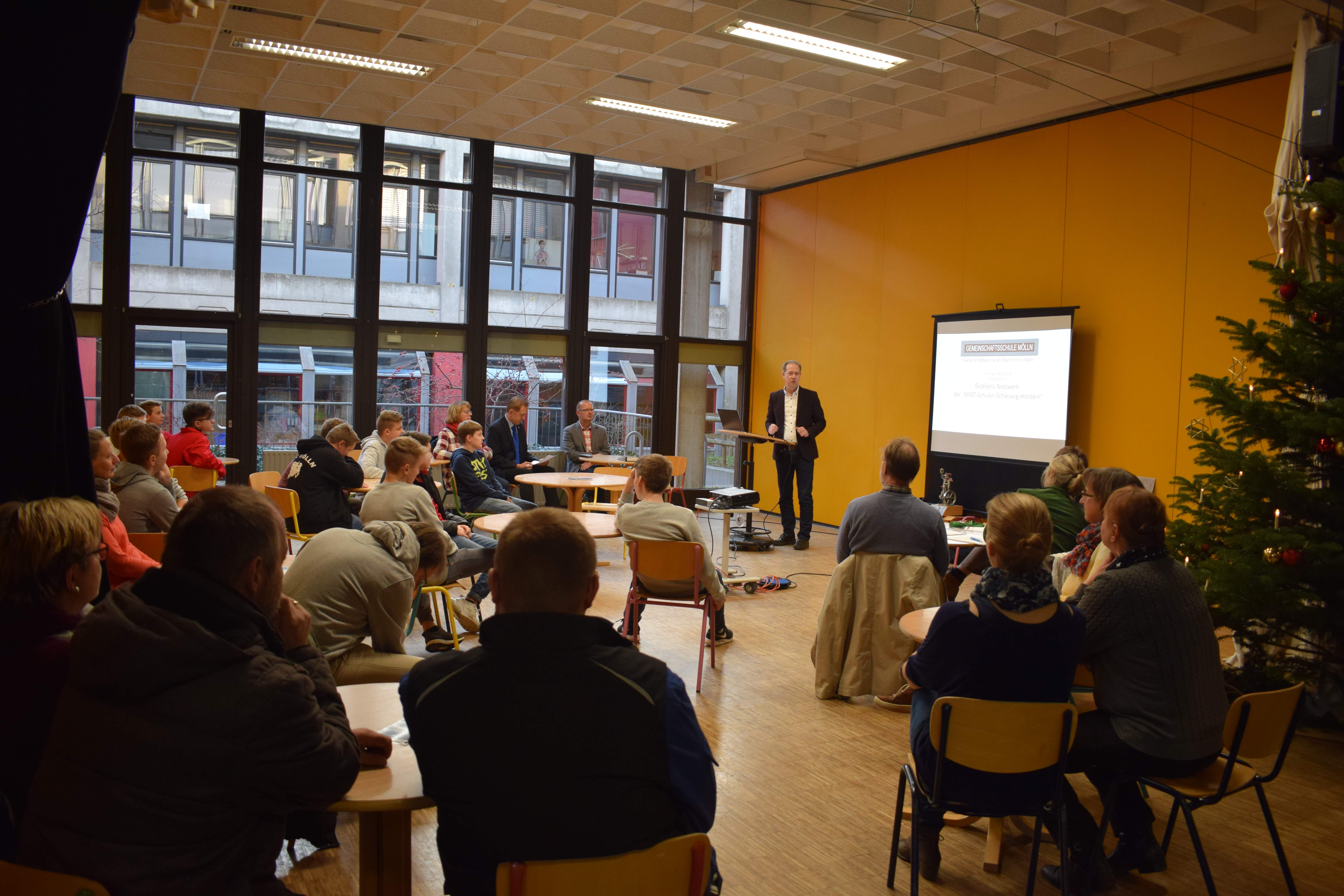 Am Dienstag, 04.12.2018 um 15:00 Uhr fand ein ausführlicher Pressetermin im Forum unserer Schule statt. Etwa 40 Schülerinnen und Schüler, Mitglieder der SV und WPU-1-Gruppen sowie die Fachleiterinnen und Fachleiter der MINT-Fächer waren an der Ausgestaltung des Nachmittags beteiligt.