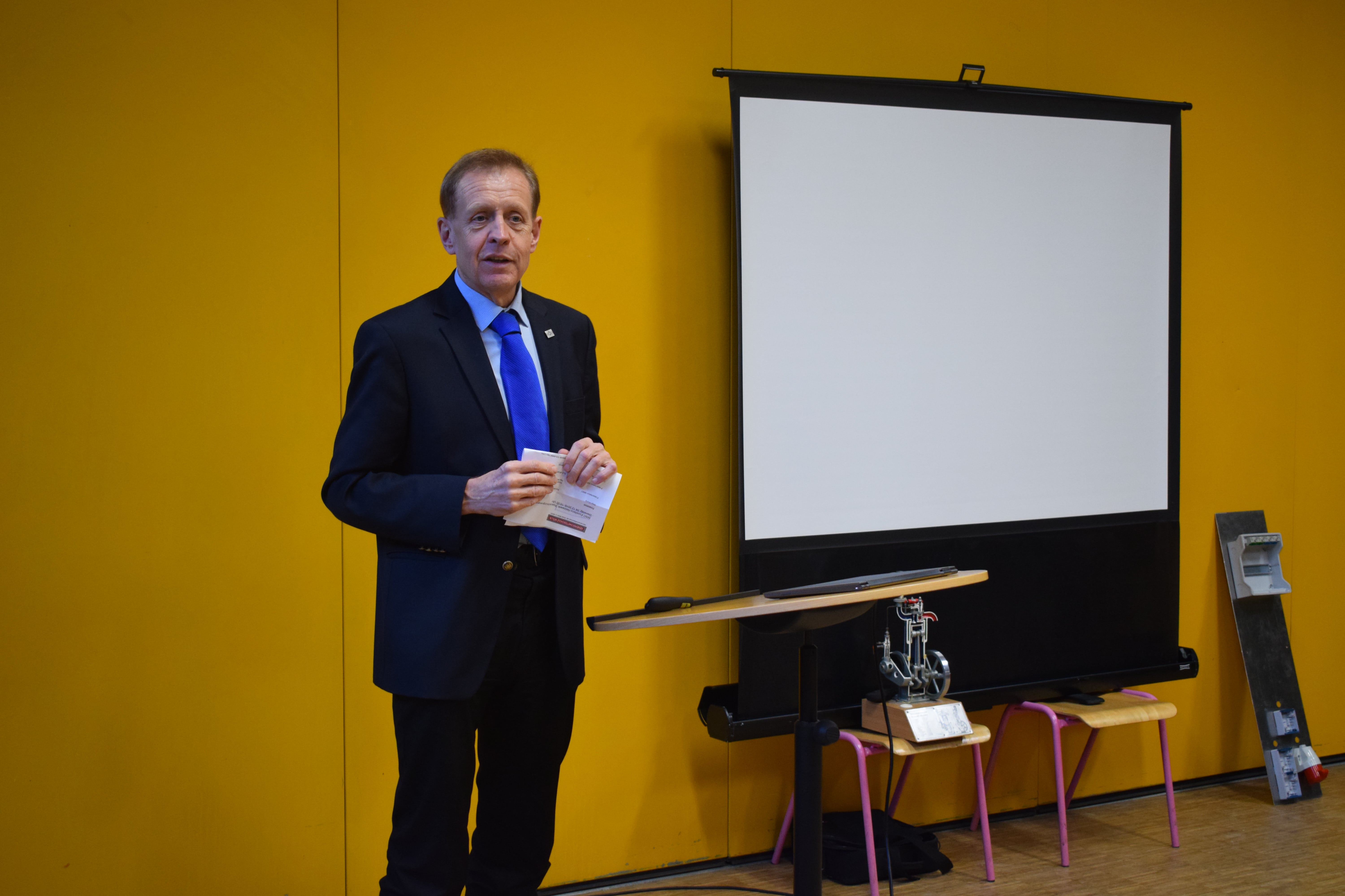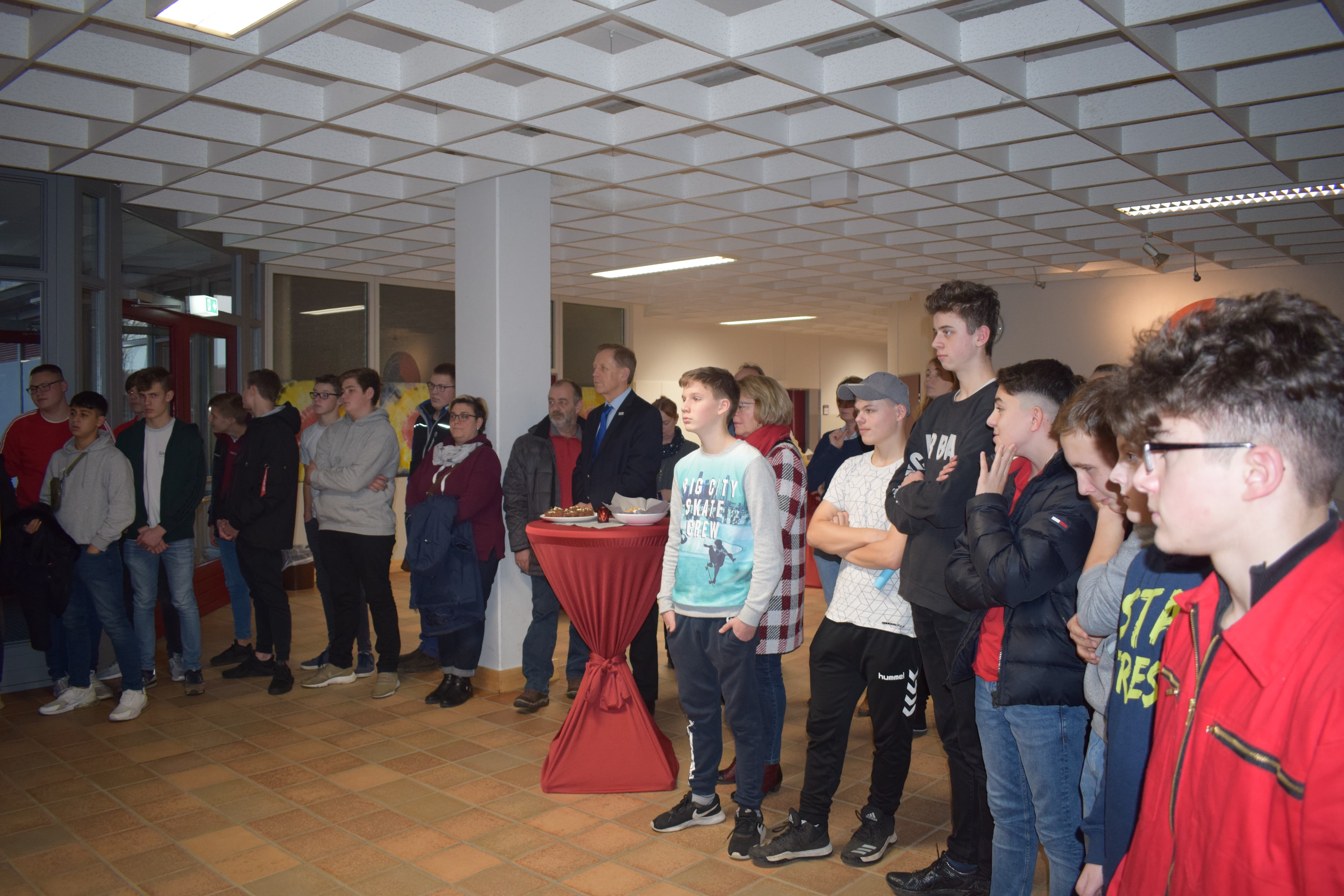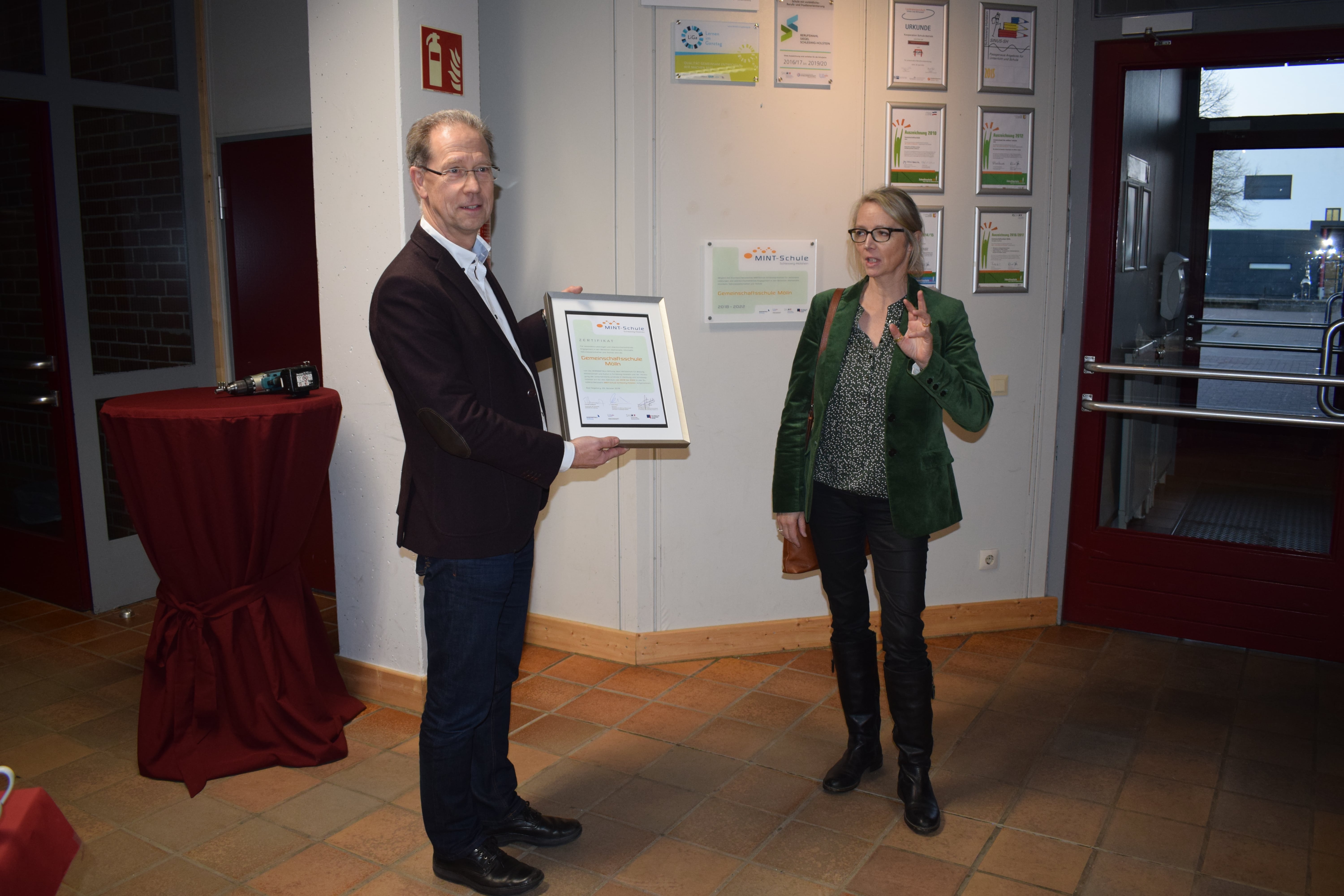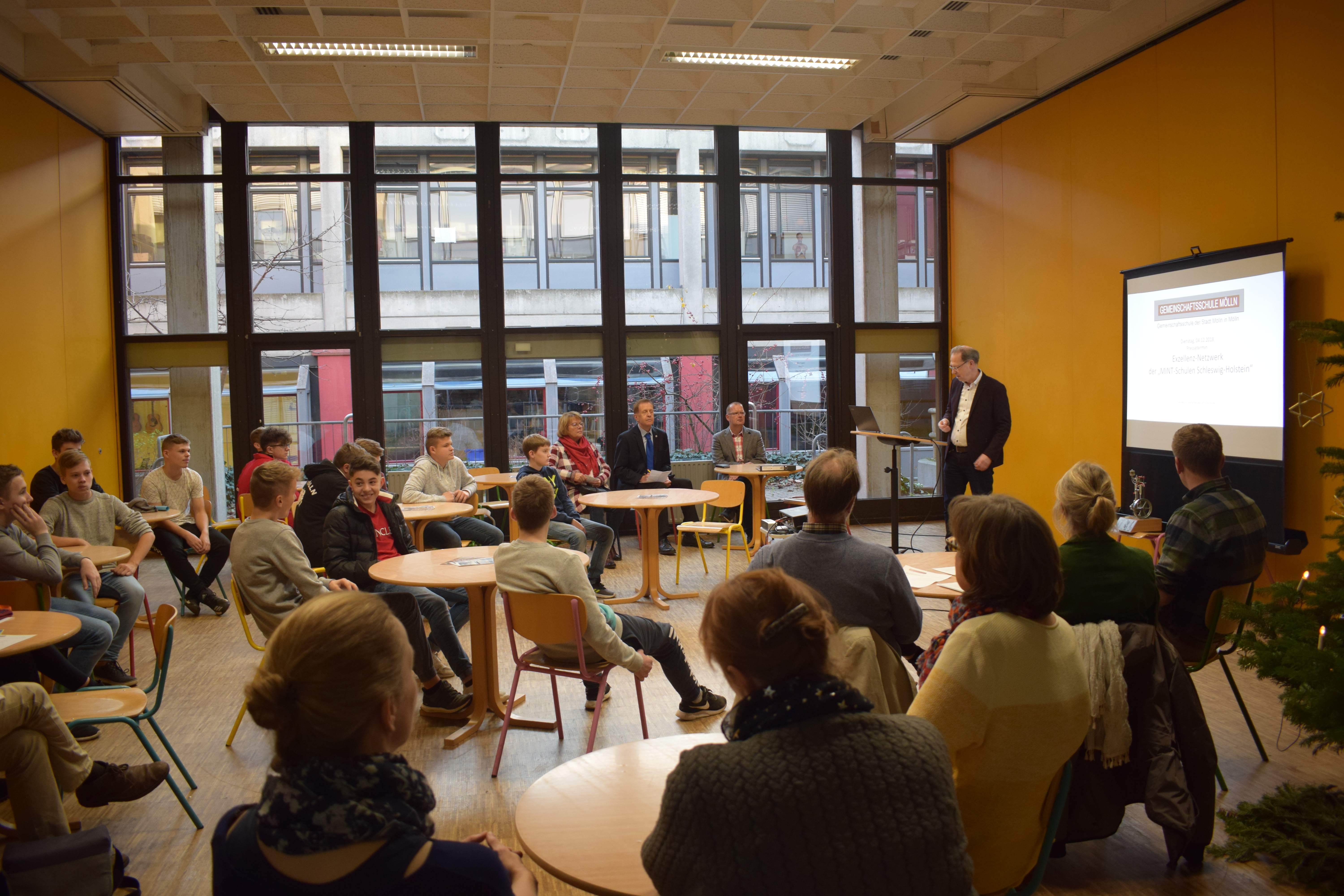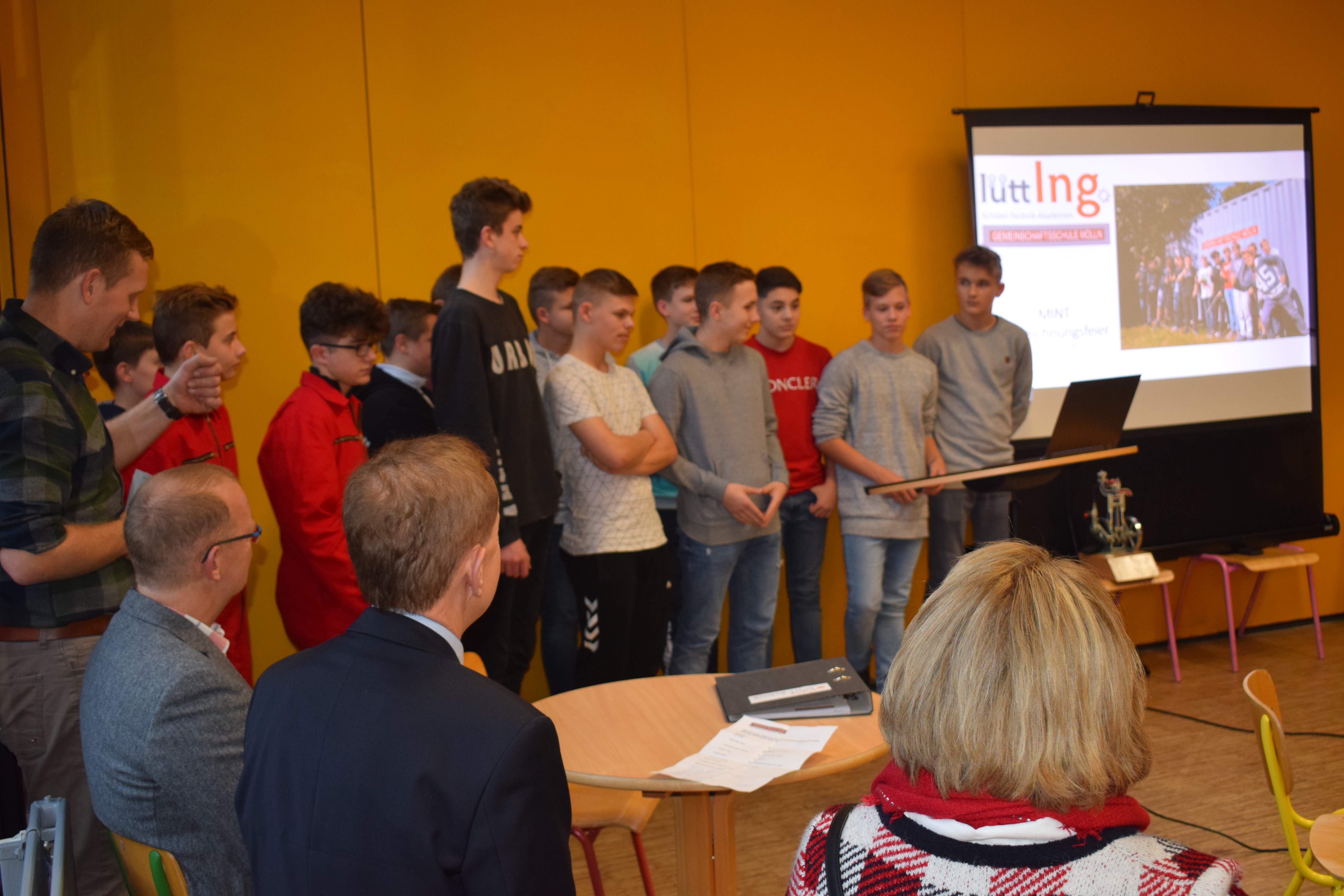 Die Vorsitzende des Auswahlgremiums, Frau Sabine Petersen (Technische Akademie Nord) aus Kiel, hob in Ihrem Grußwort die besonderen Leistungen der Gemeinschaftsschule Mölln im Bereich MINT hervor. Auch der Bürgermeister der Stadt Mölln Herr Jan Wiegels und der stellvertretende Schulleiter des Berufsbildungszentrums Mölln Herr Matthias Links sprachen ein Grußwort. Außerdem nahm an der Veranstaltung die Vorsitzende des Ausschusses für Schule, Sport, Jugend und Soziales, Frau Christiane Gehrmann, teil.