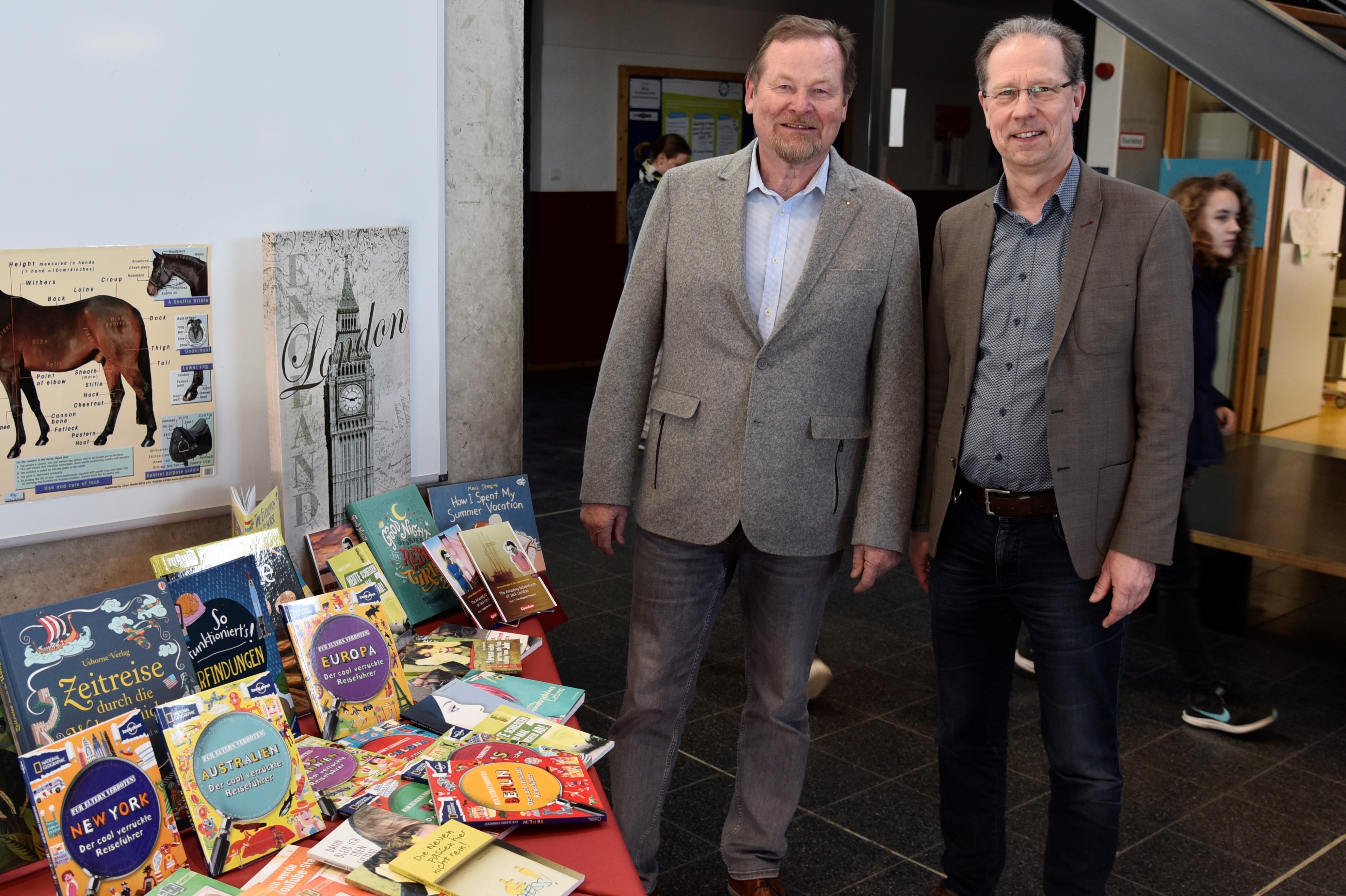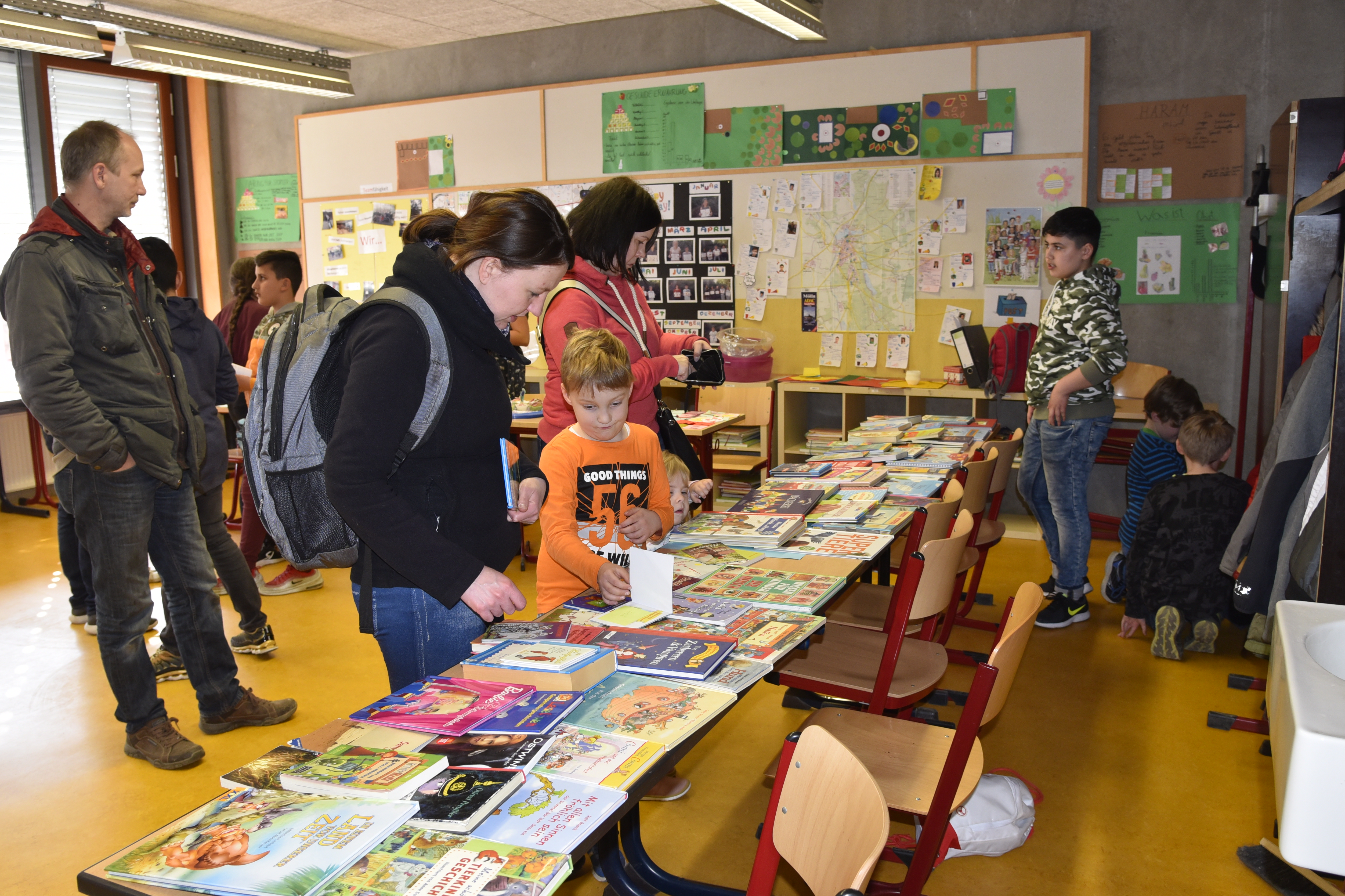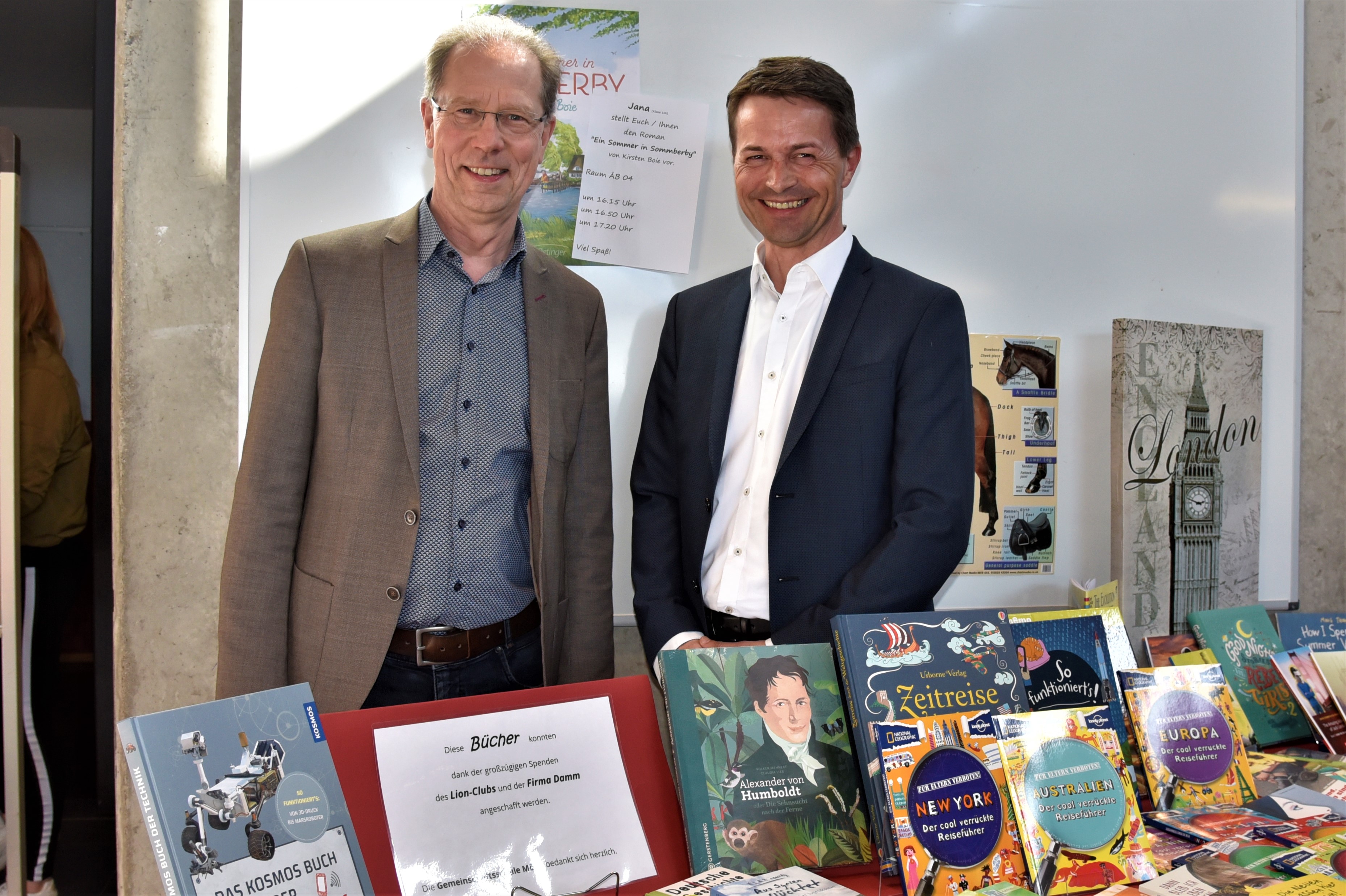 Die durch großzügige Spenden des Lions Club Sachsenwald und die Firma Damm möglichen Neuanschaffungen für die Schülerbücherei luden schon die ersten Leser und Eltern zum Stöbern ein.