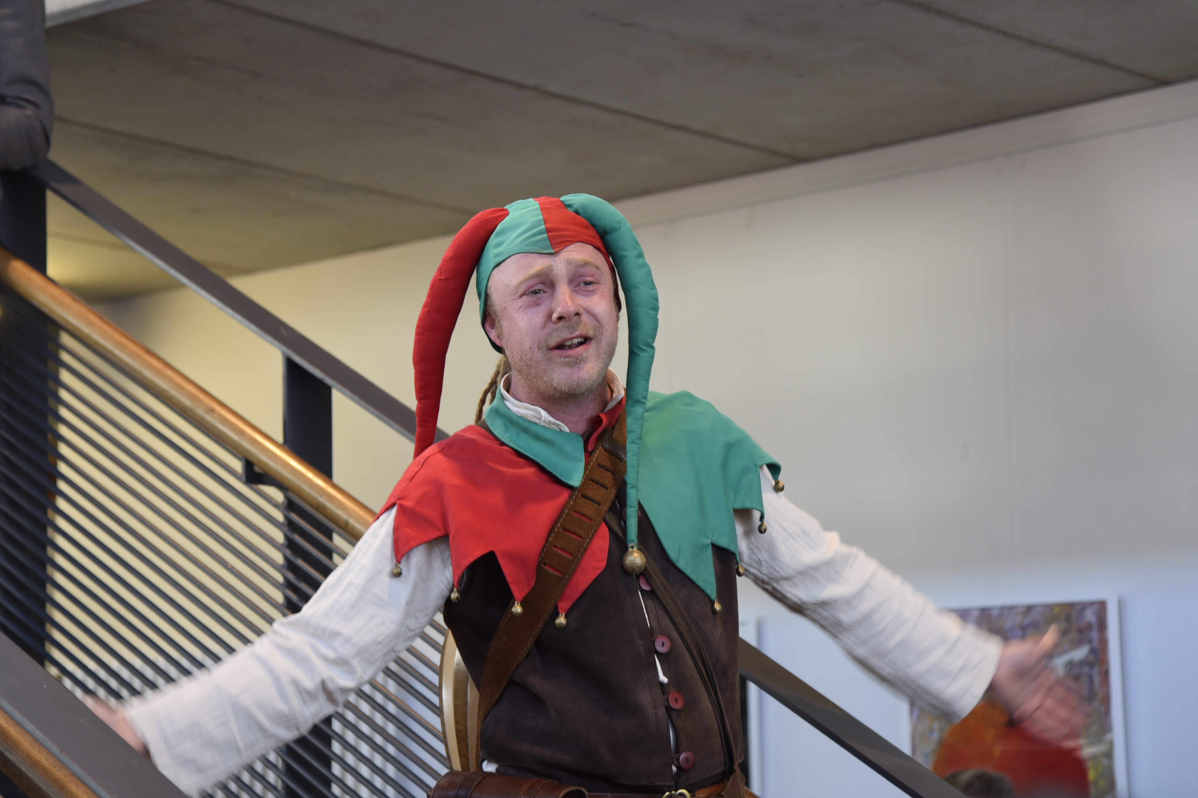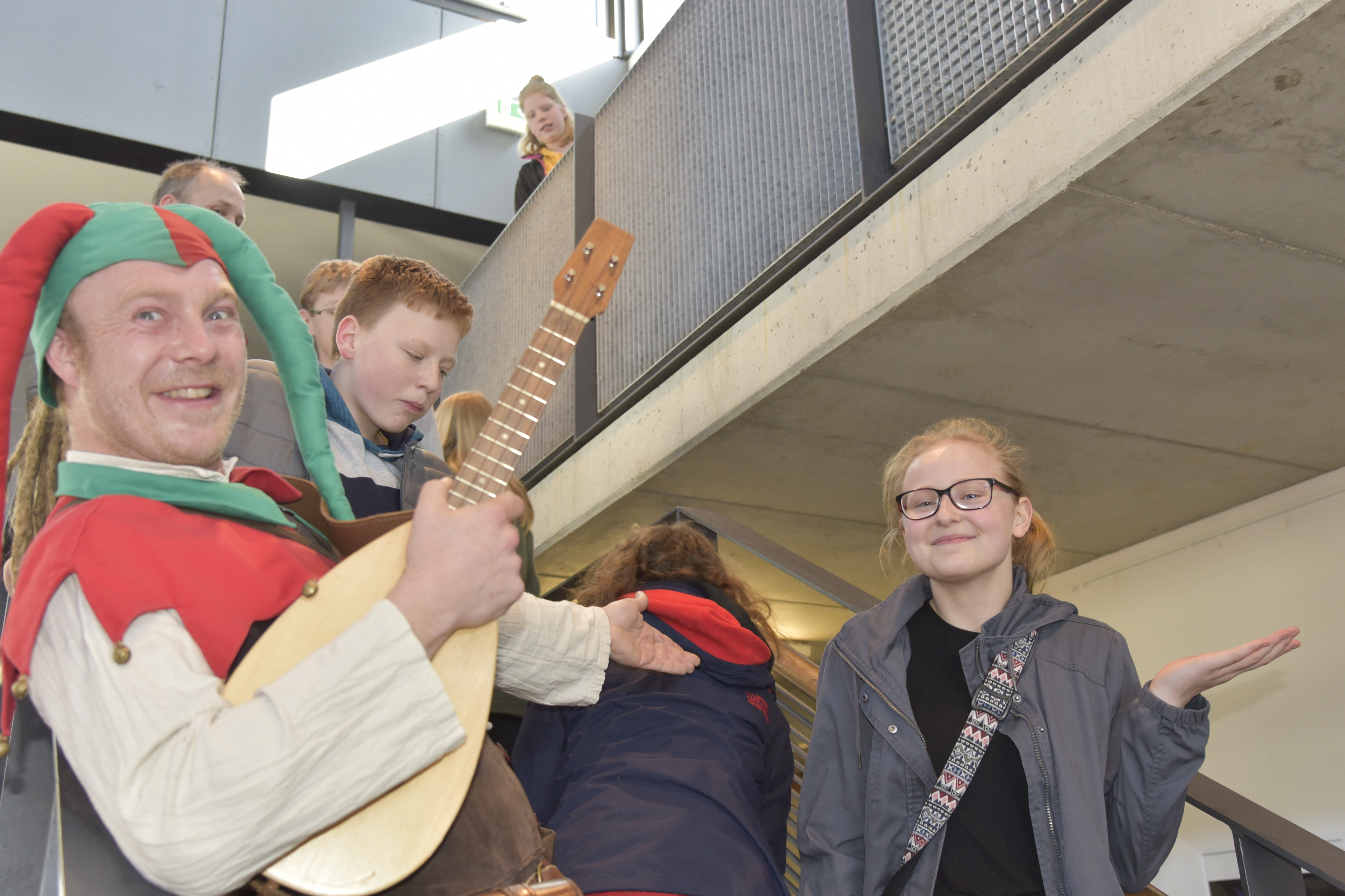 Nach der Eröffnung durch den Schulleiter Dr. Schmidt, der hierbei vom Eulenspiegel fröhlich unterstützt wurde, öffneten sich die vielen Türen der Klassen mit ihrem bunten Programm.