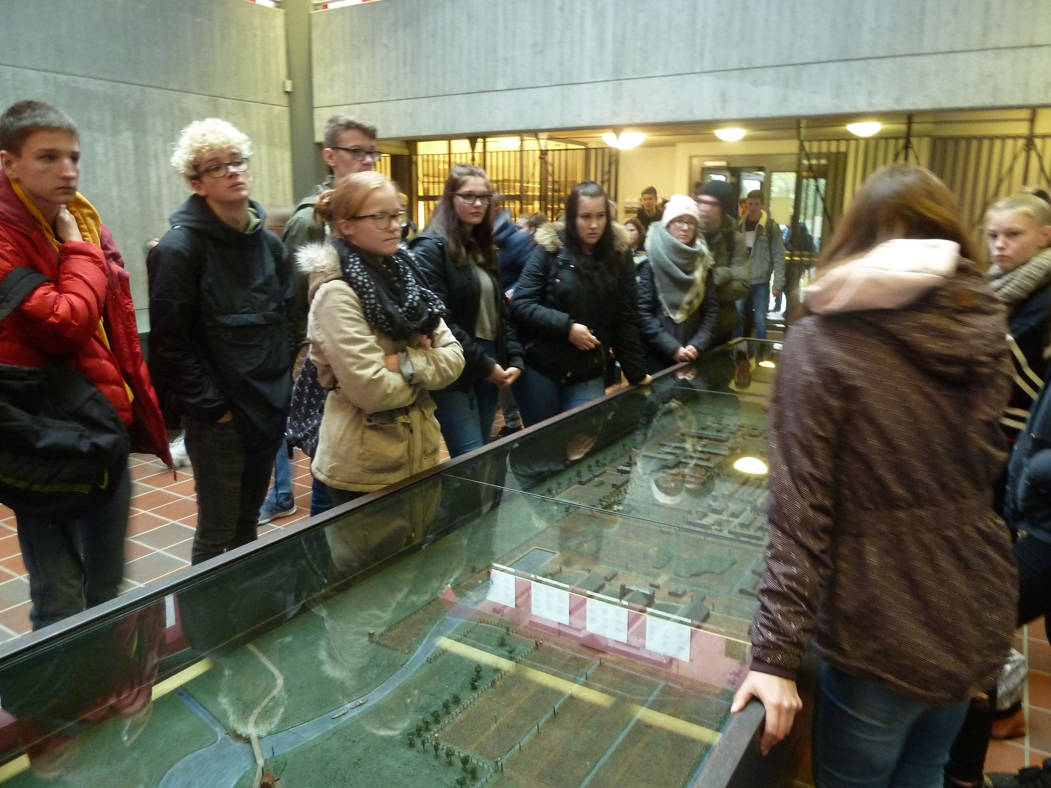 Am 30.10.2018 haben wir mit dem WPU 2 Kurs ,,Das Deutsche Reich von 1933-1989´´ unter der Leitung von Herrn Jens die KZ-Gedenkstätte Neuengamme besucht. Wir sind um 8:15 Uhr mit zwei Bussen nach Neuengamme gefahren, dort angekommen haben wir erst mal das komplette Gelände gesehen. Wir sind dann durch das metaphorische Tor gegangen und in einen Raum gekommen, wo wir auf unseren Guide gewartet haben. In diesem Raum war ein Modell der Gedenkstätte. Wenn man an den Seiten aus dem Raum gesehen hat, konnte man ungefähr kniehohe Zäune sehen, die mit verschiedenen Steinen befüllt waren, diese, so wurde uns erklärt, sollen die ehemaligen Baracken darstellen.
