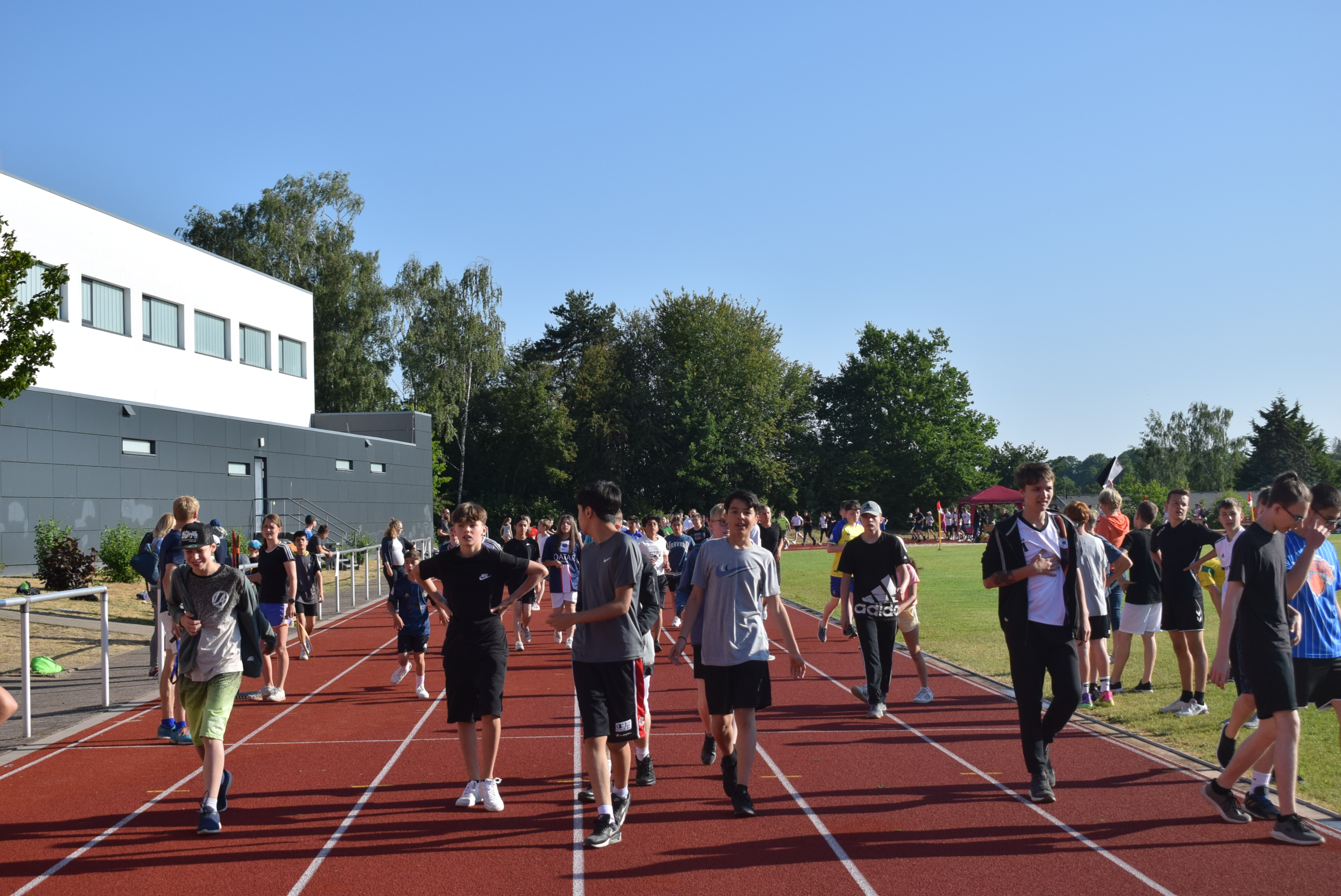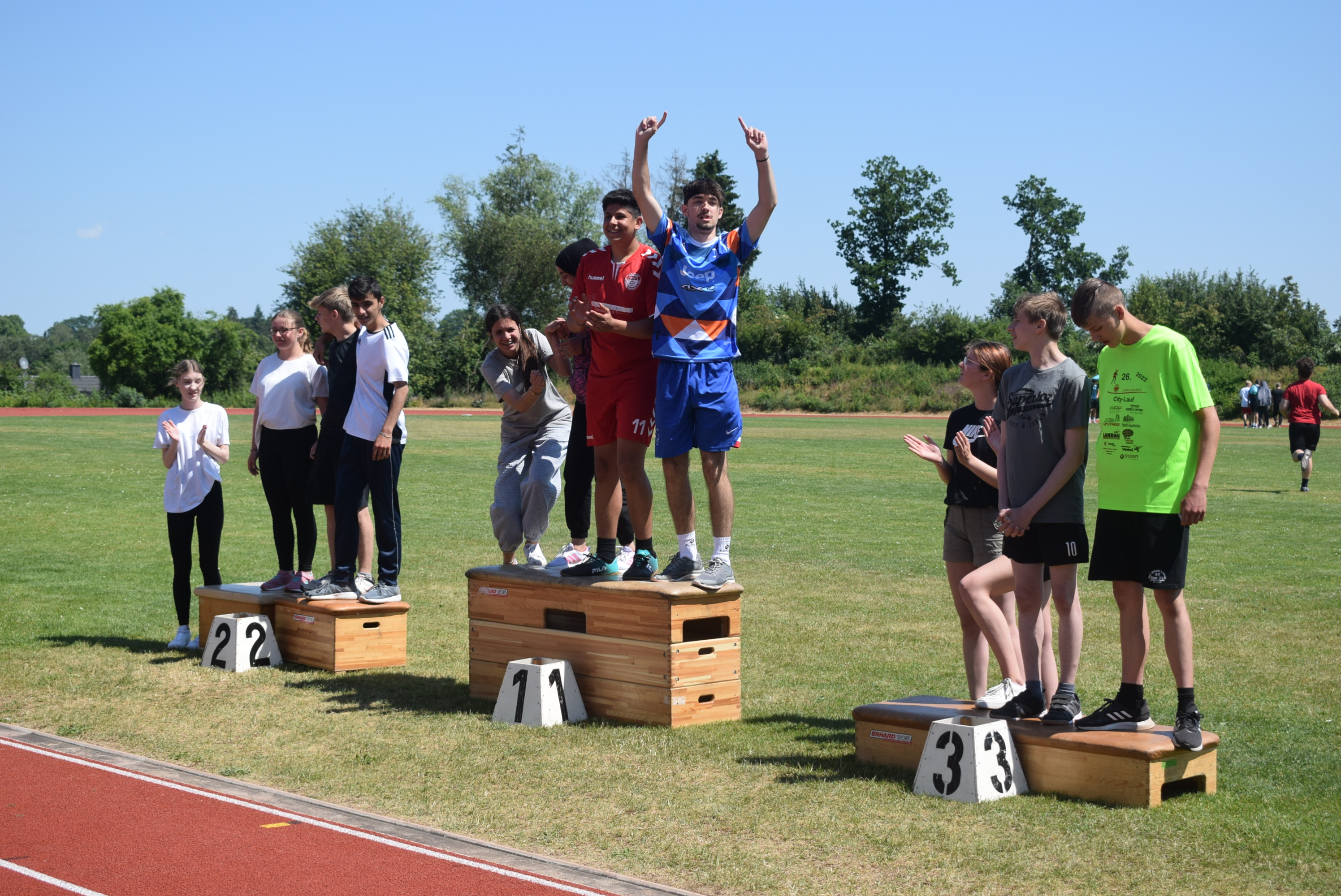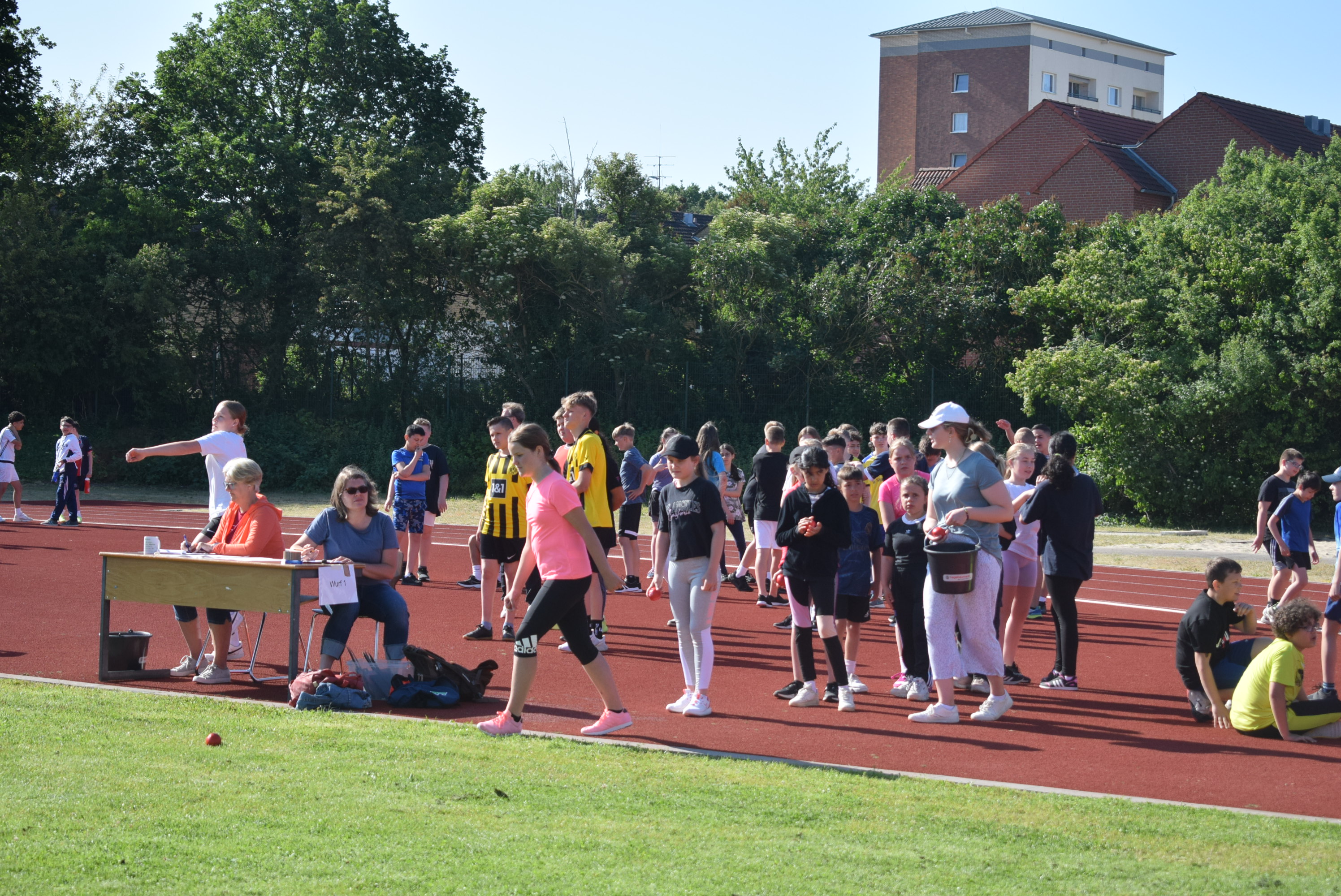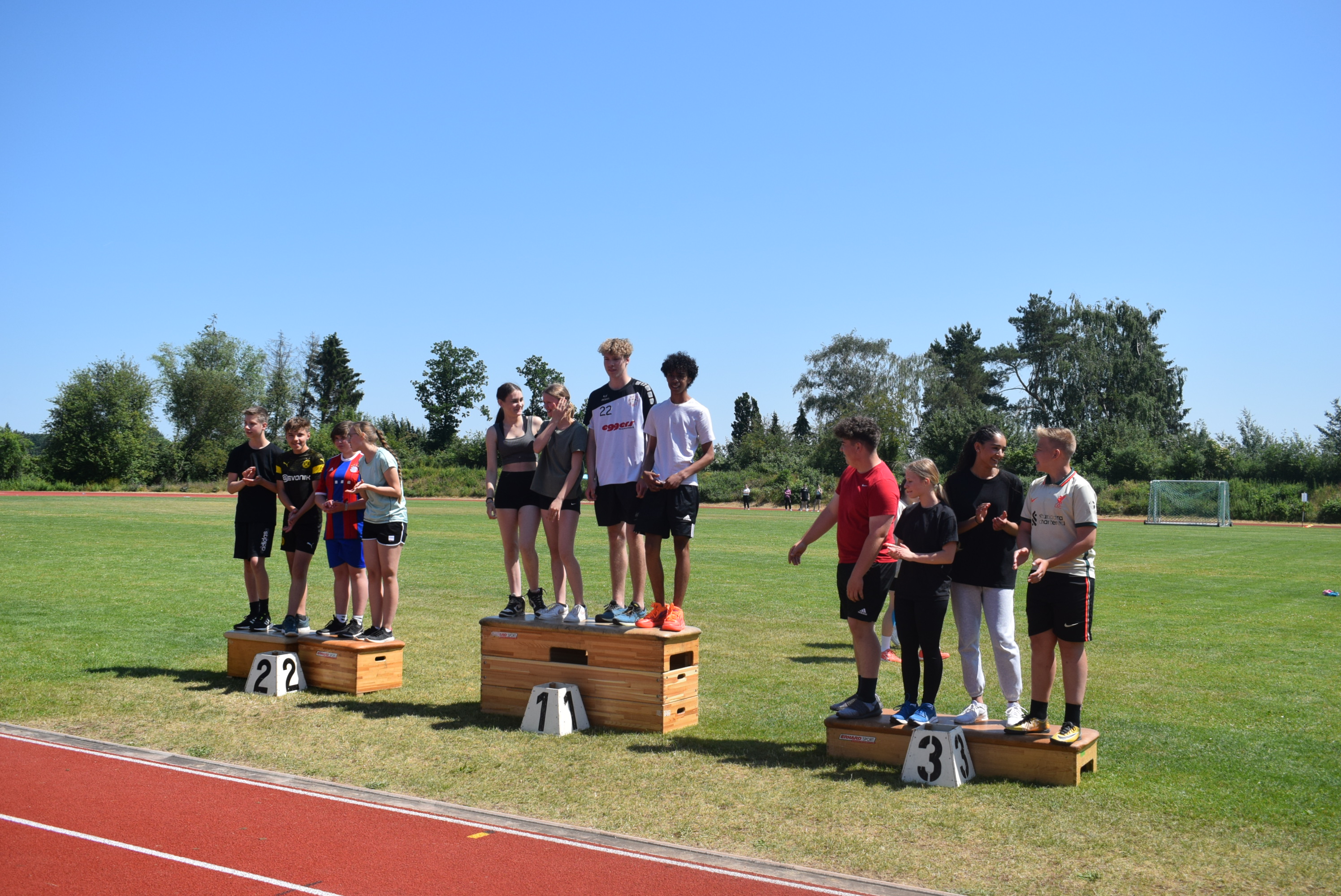 Ein großes Dankeschön geht an die ehrenamtlichen Helfer der 10b, die uns beim Auf- und Abbau und beim Messen unterstützt haben sowie Merlin Wunsch für seinen Einsatz als Schulsanitäter. Die Siegerukunden werden in den nächsten Wochen gedruckt und ausgeteilt. Ehrenurkunden werden feierlich im Rahmen einer Sportlerehrung im Forum in der 2. Stunde am letzten Schultag vor den Sommerferien übergeben.