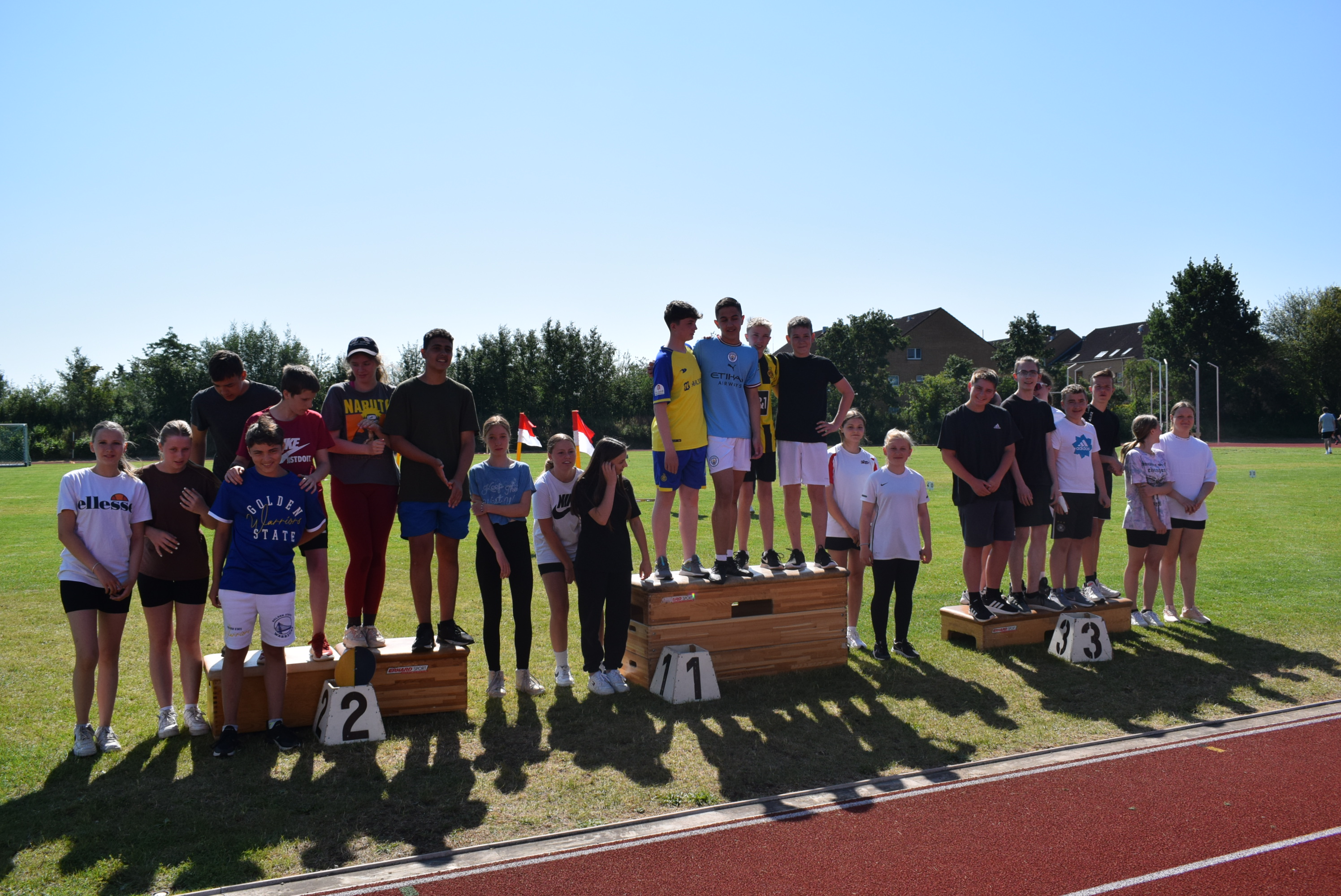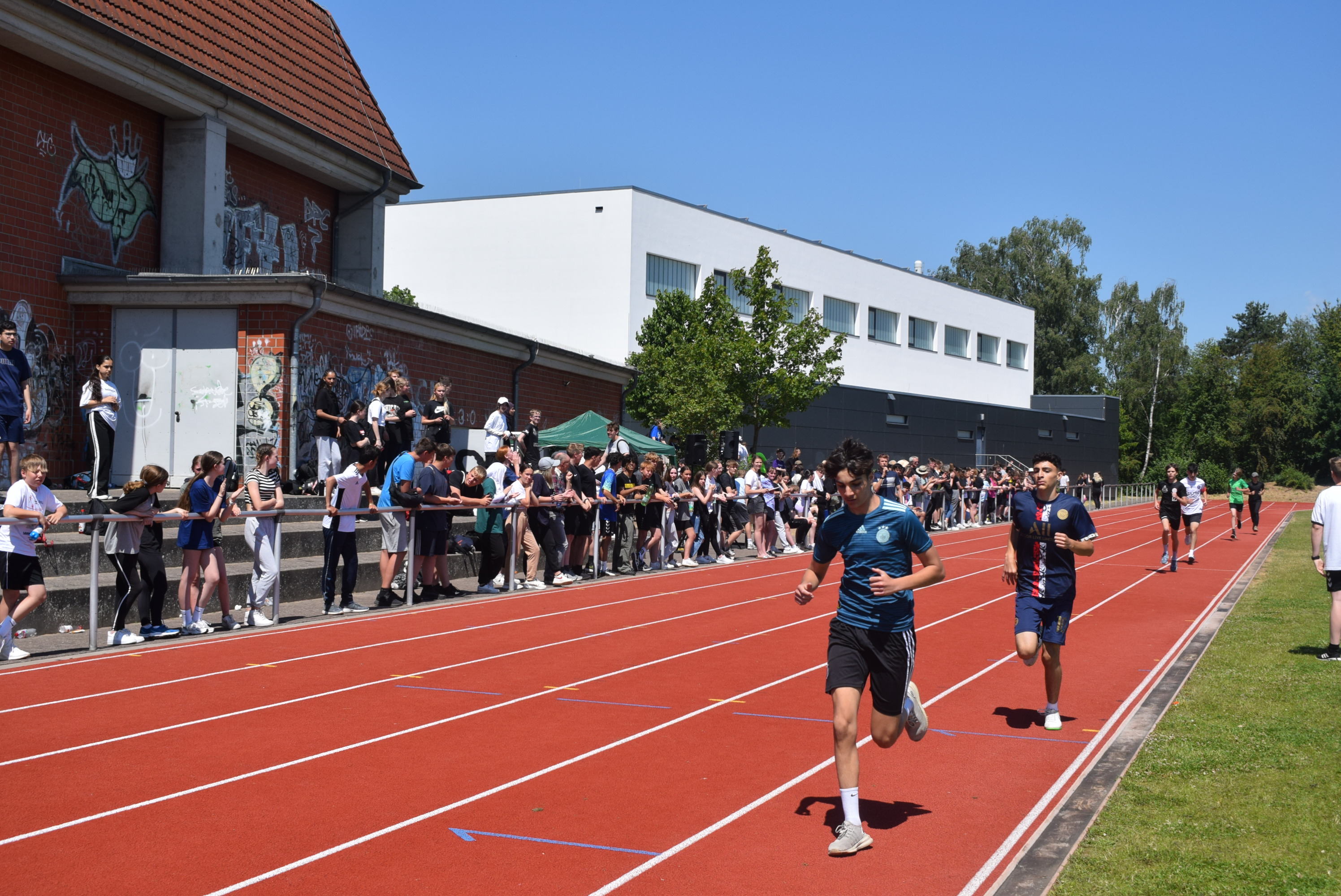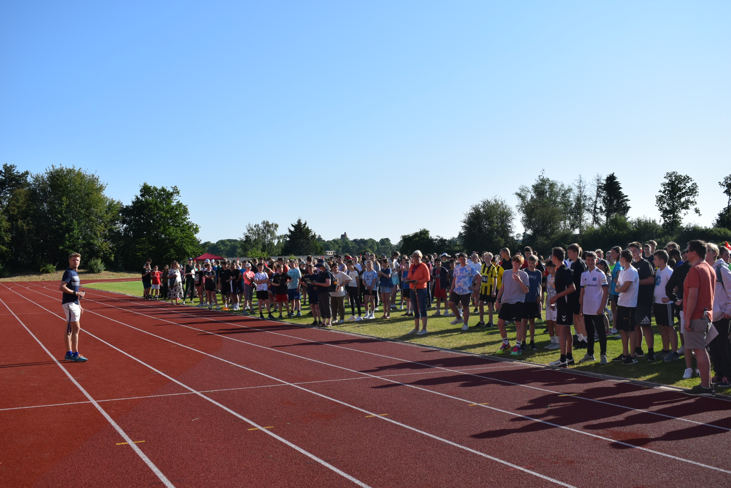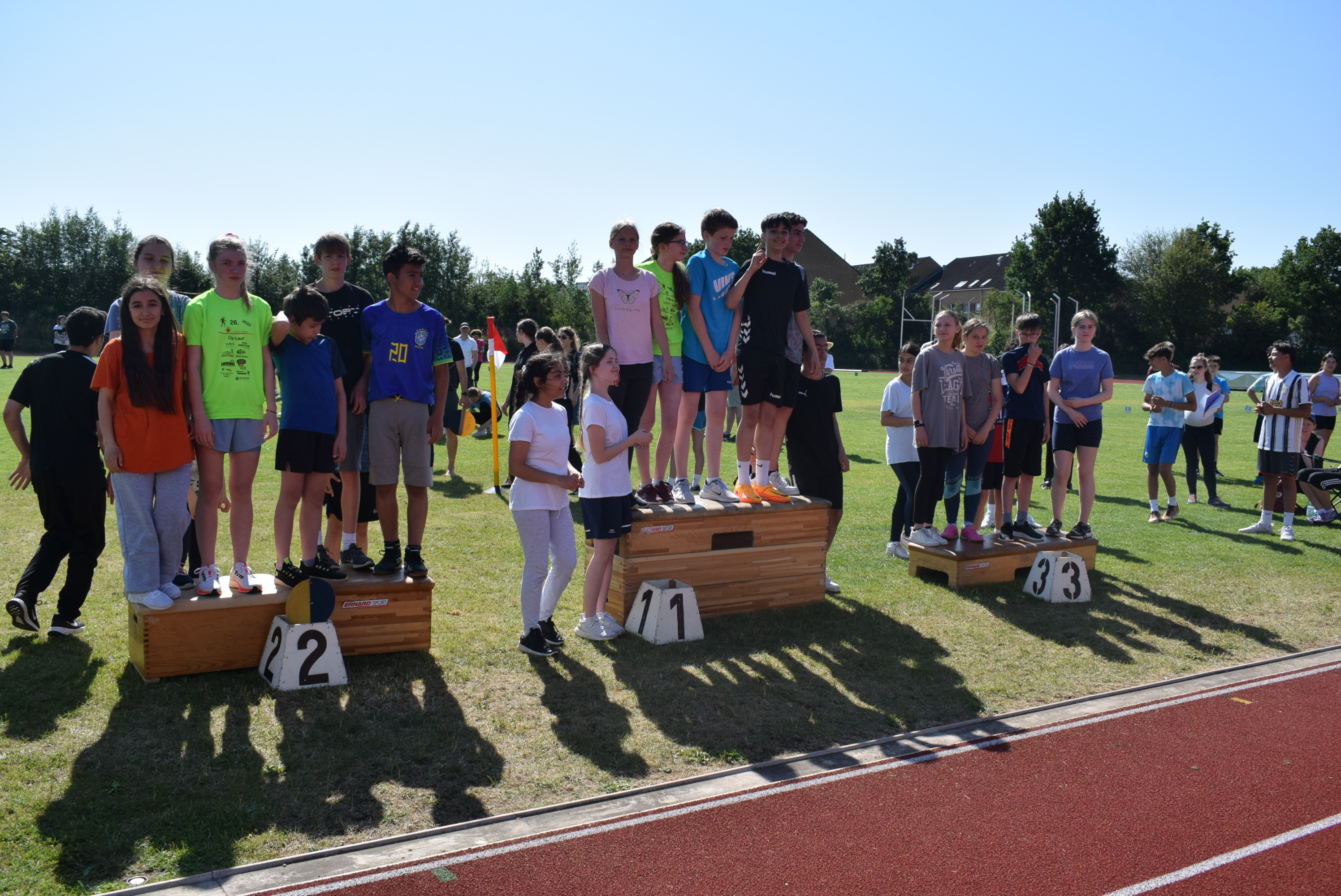 Ein großes Dankeschön geht an die ehrenamtlichen Helfer der 10b, die uns beim Auf- und Abbau und beim Messen unterstützt haben sowie Merlin Wunsch für seinen Einsatz als Schulsanitäter. Die Siegerukunden werden in den nächsten Wochen gedruckt und ausgeteilt. Ehrenurkunden werden feierlich im Rahmen einer Sportlerehrung im Forum in der 2. Stunde am letzten Schultag vor den Sommerferien übergeben.