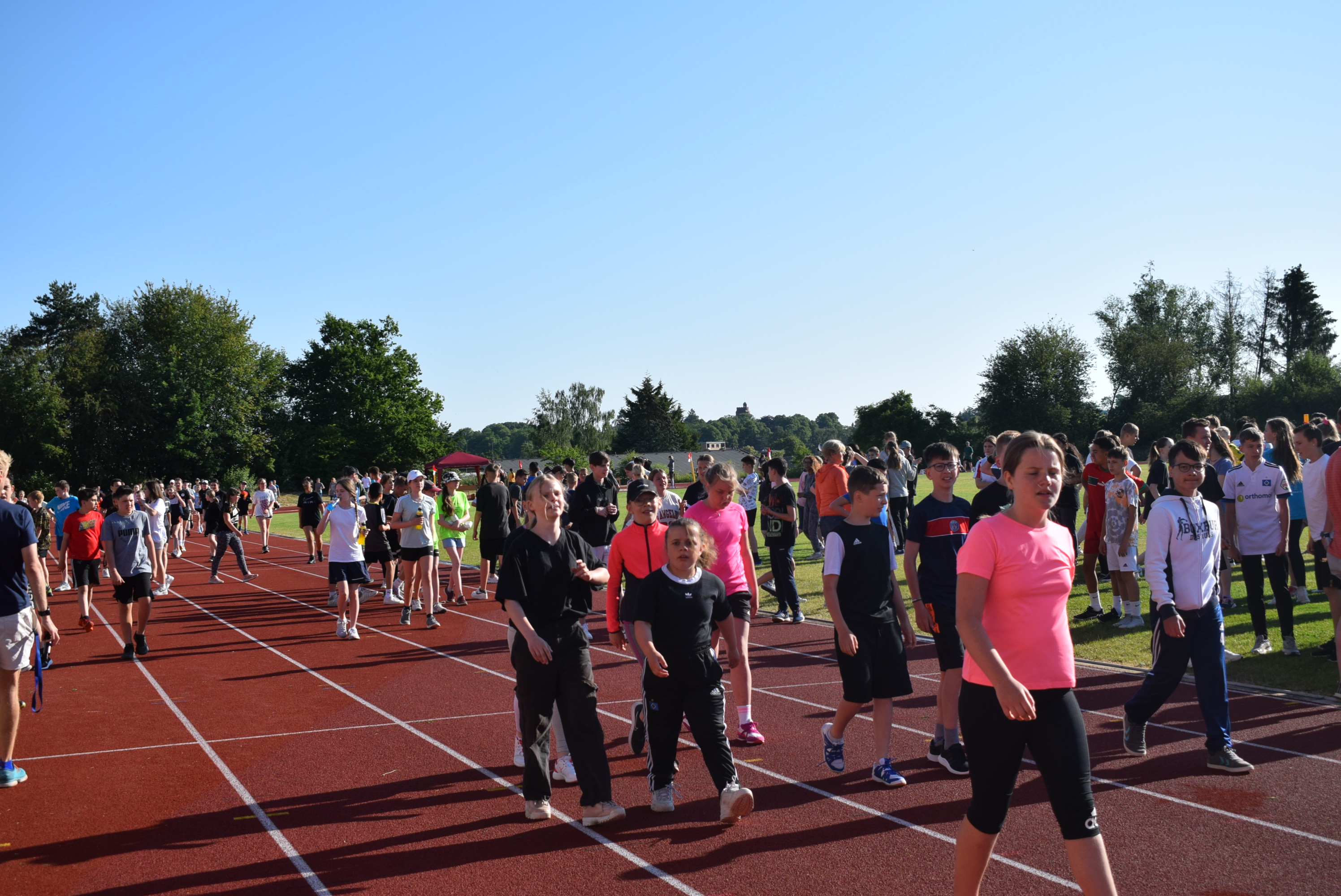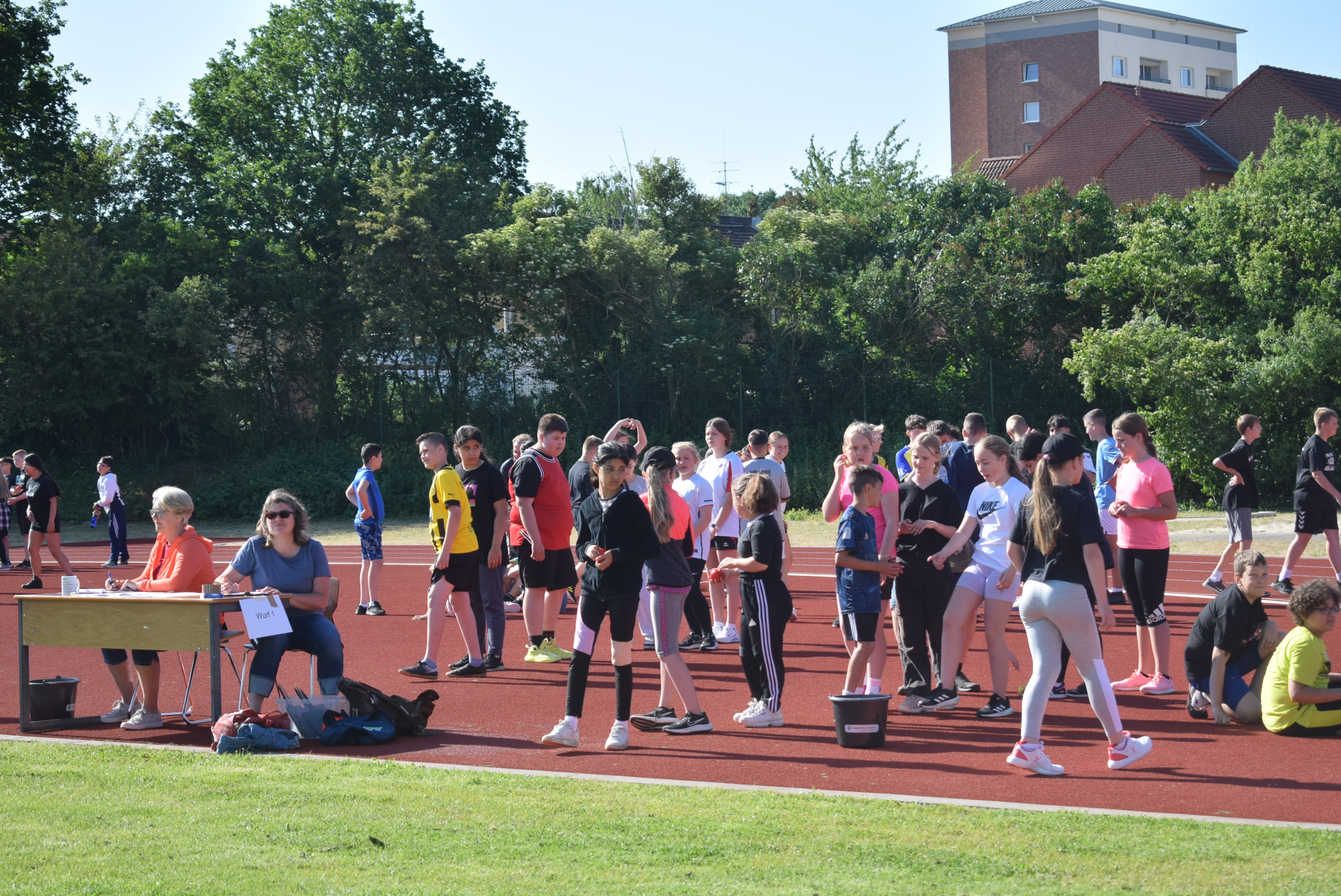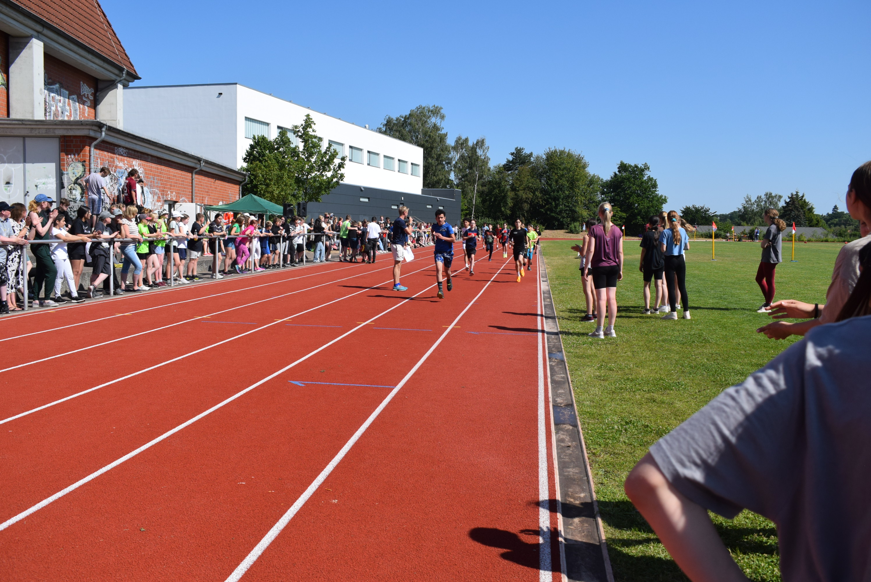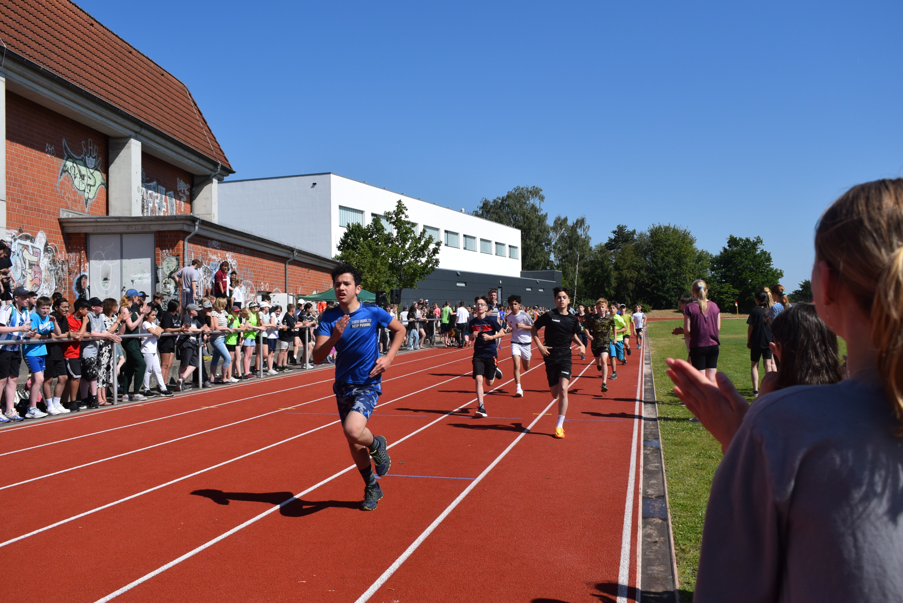 Ein großes Dankeschön geht an die ehrenamtlichen Helfer der 10b, die uns beim Auf- und Abbau und beim Messen unterstützt haben sowie Merlin Wunsch für seinen Einsatz als Schulsanitäter. Die Siegerukunden werden in den nächsten Wochen gedruckt und ausgeteilt. Ehrenurkunden werden feierlich im Rahmen einer Sportlerehrung im Forum in der 2. Stunde am letzten Schultag vor den Sommerferien übergeben.