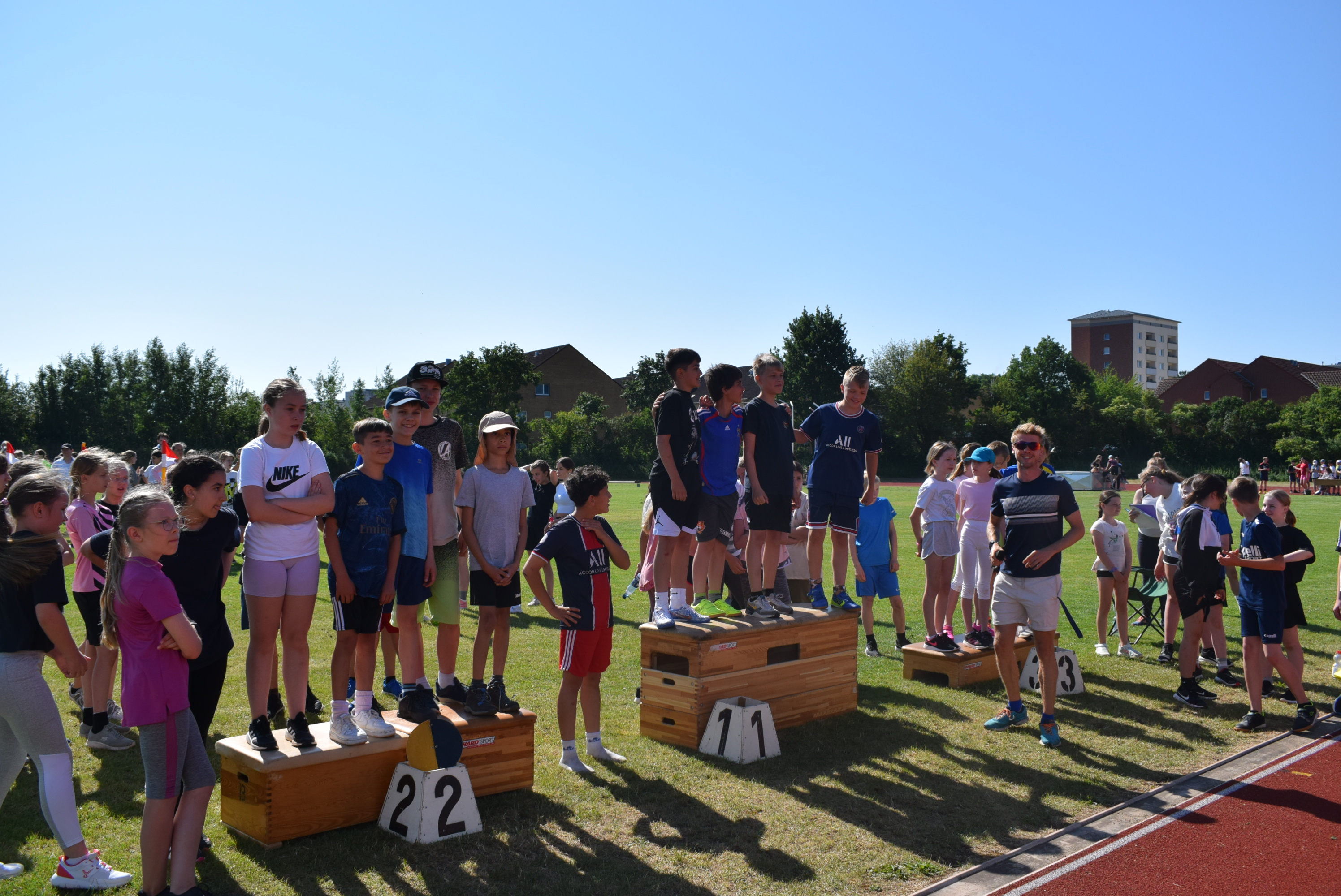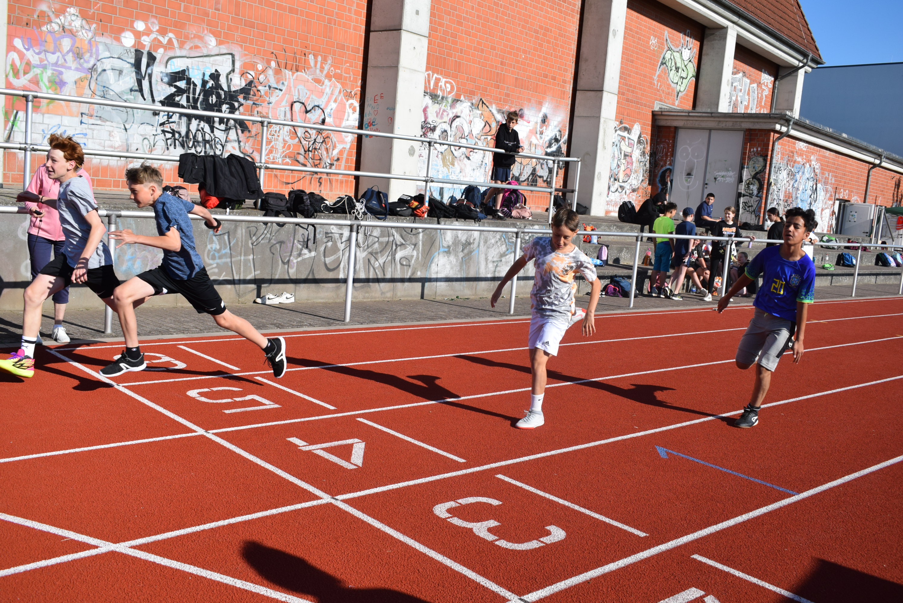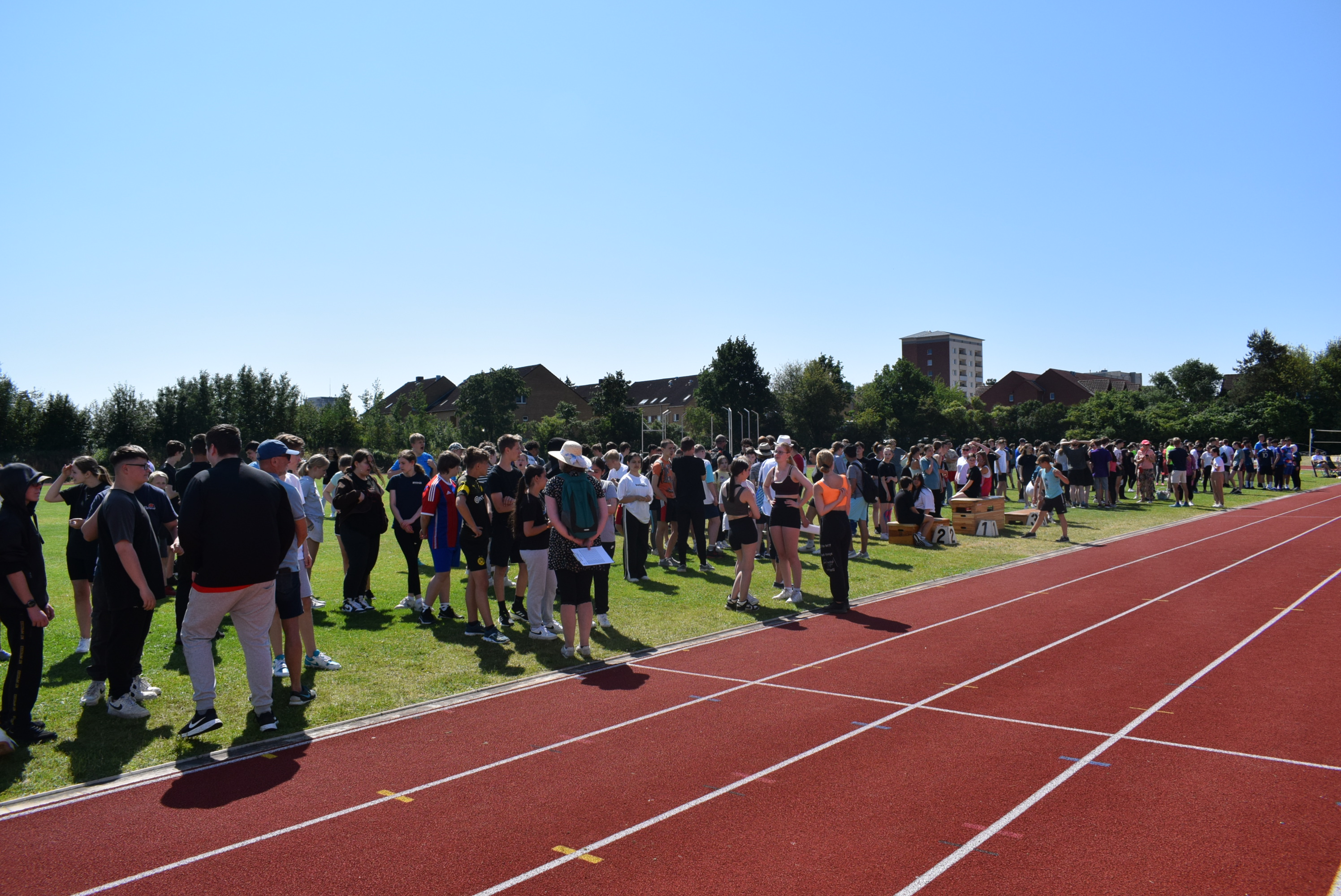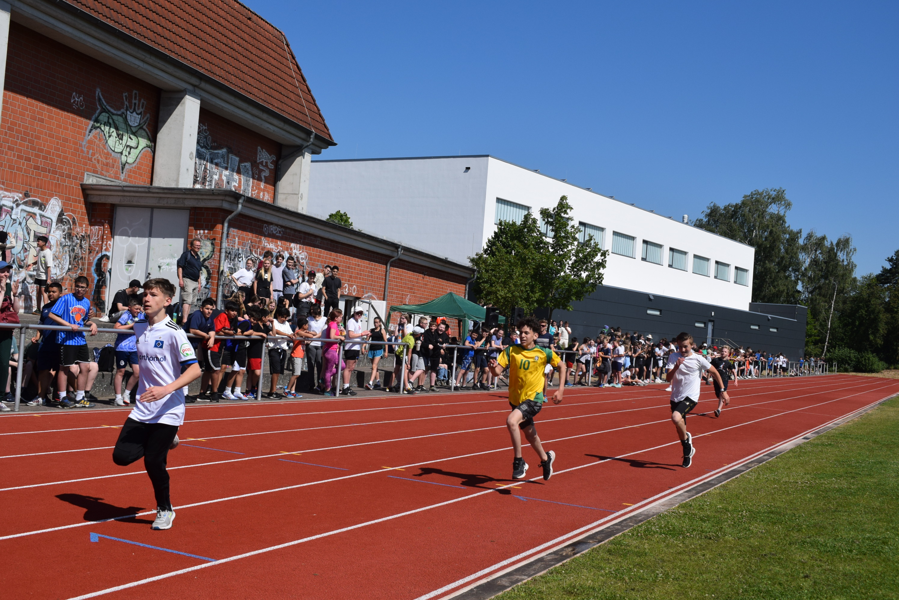 Ein großes Dankeschön geht an die ehrenamtlichen Helfer der 10b, die uns beim Auf- und Abbau und beim Messen unterstützt haben sowie Merlin Wunsch für seinen Einsatz als Schulsanitäter. Die Siegerukunden werden in den nächsten Wochen gedruckt und ausgeteilt. Ehrenurkunden werden feierlich im Rahmen einer Sportlerehrung im Forum in der 2. Stunde am letzten Schultag vor den Sommerferien übergeben.
