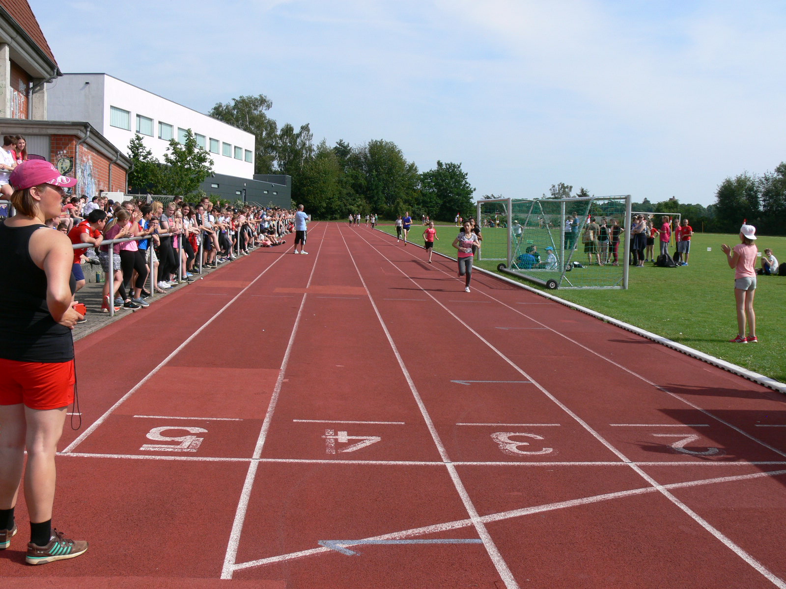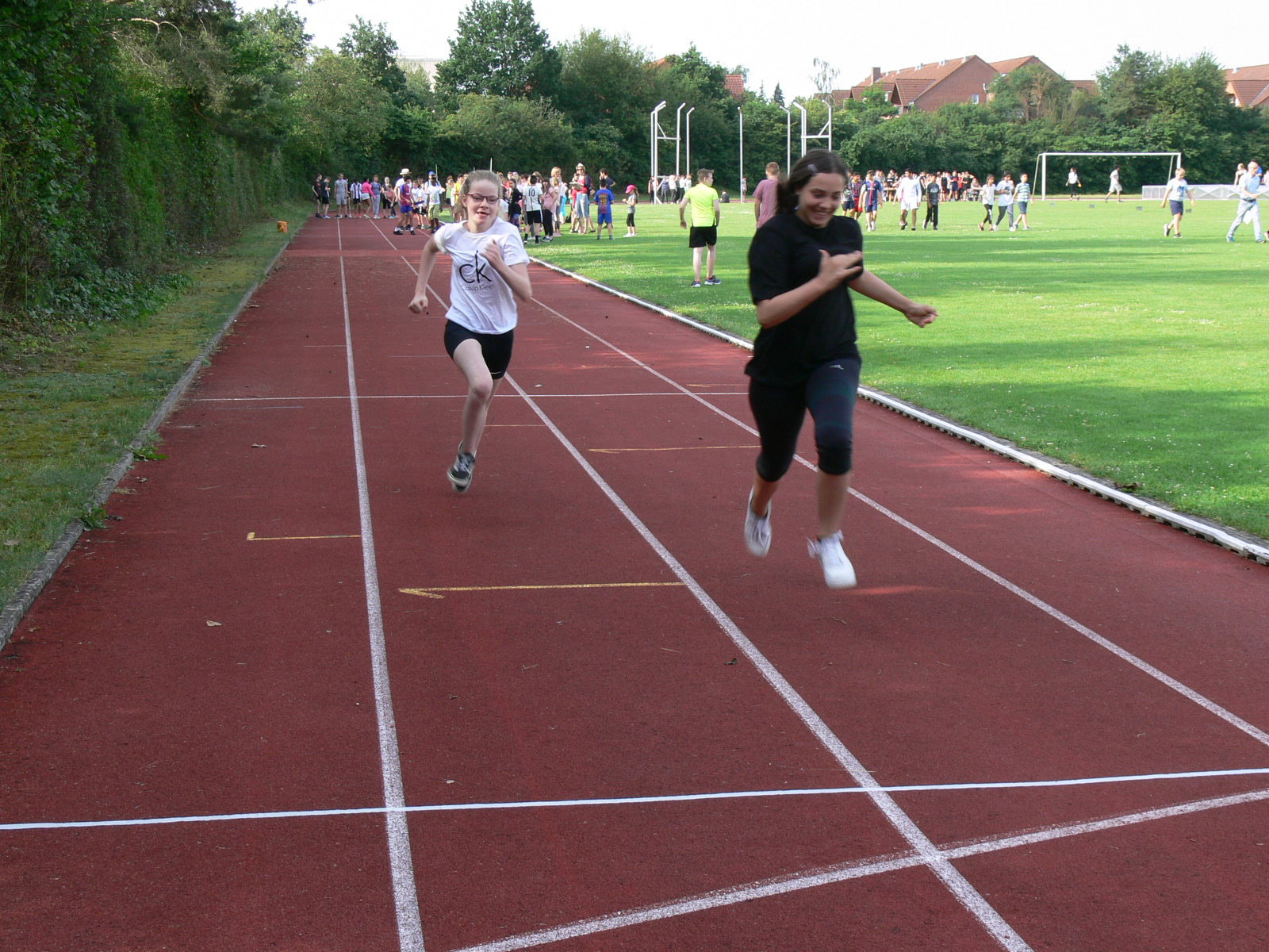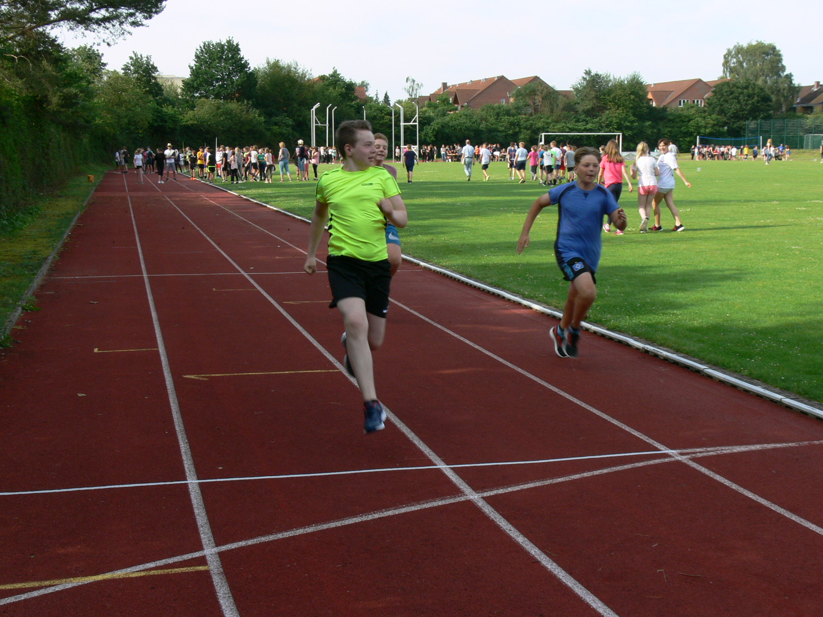 Zum Abschluss schickten sich die besten Läuferinnen und Läufer der einzelnen Jahrgänge an, die 800m (Mädchen) und 1000m (Jungen) Mittelstreckendistanzen zu absolvieren. An dieser Stelle gilt unser voller Respekt gegenüber jedem/ jeder Schüler/in, der/ die sich bei den zunehmenden Temperaturen über die zwei bzw. zweieinhalb Stadionrunden kämpfte.