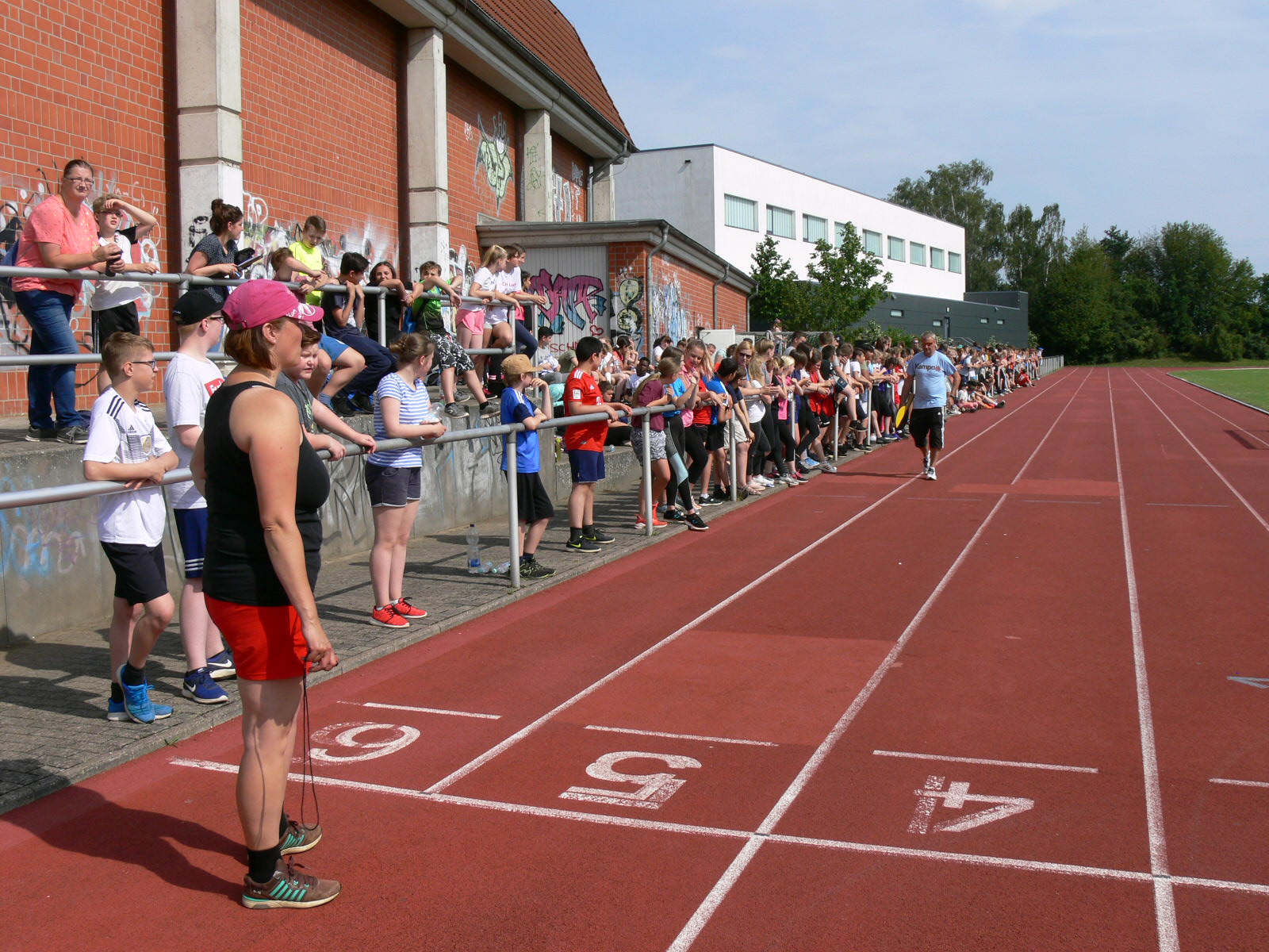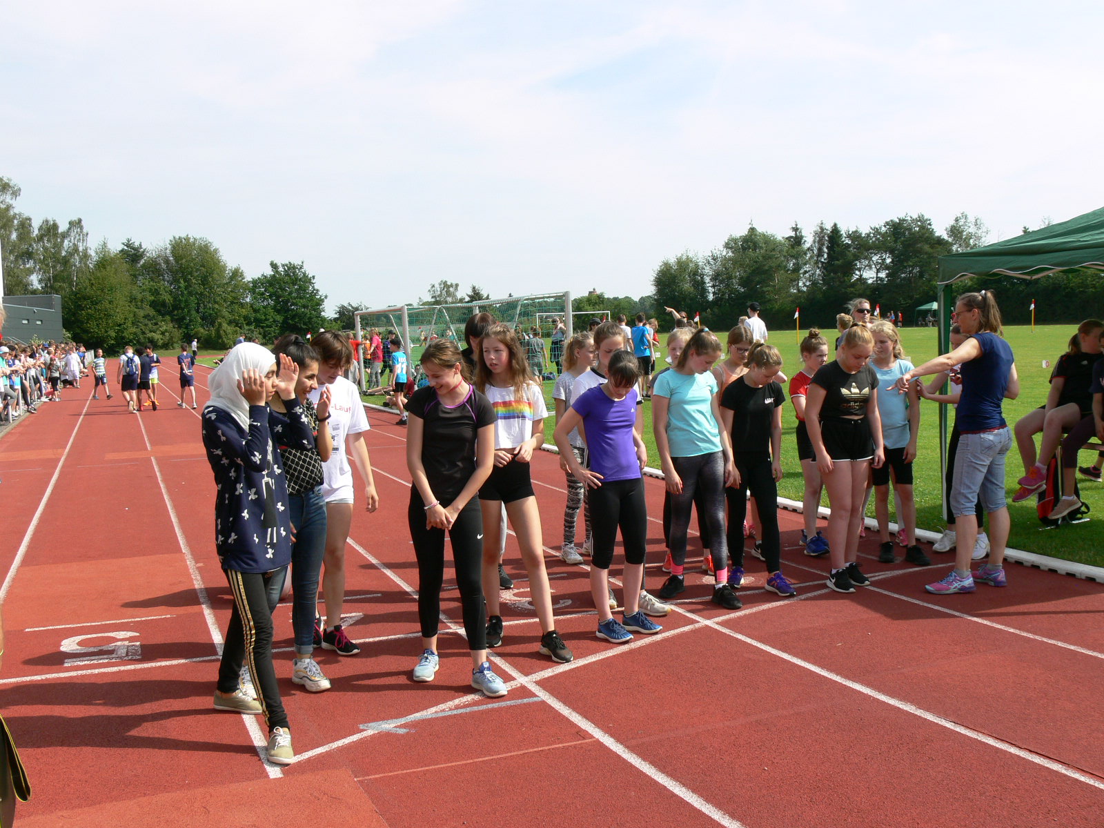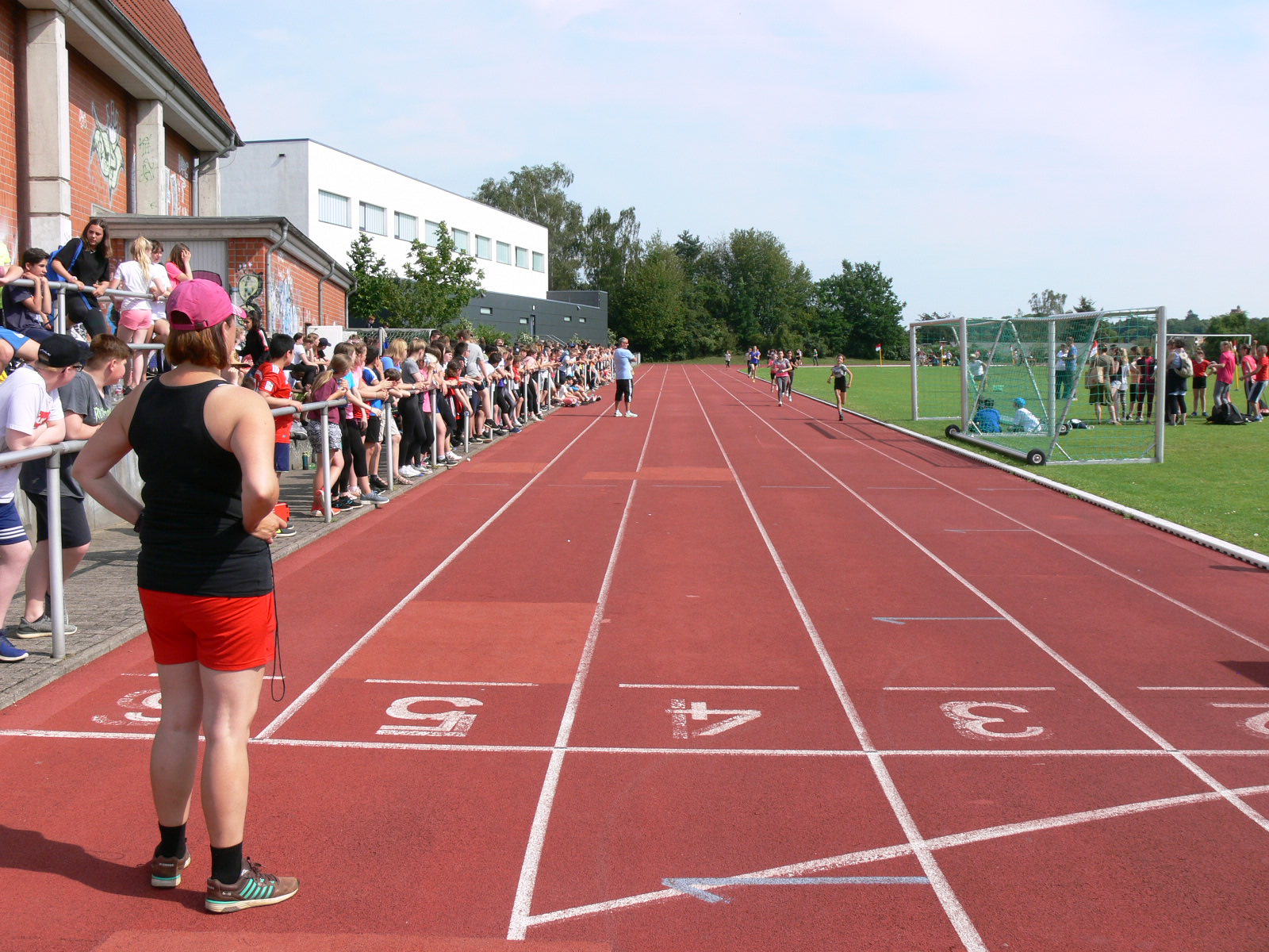 Zum Abschluss schickten sich die besten Läuferinnen und Läufer der einzelnen Jahrgänge an, die 800m (Mädchen) und 1000m (Jungen) Mittelstreckendistanzen zu absolvieren. An dieser Stelle gilt unser voller Respekt gegenüber jedem/ jeder Schüler/in, der/ die sich bei den zunehmenden Temperaturen über die zwei bzw. zweieinhalb Stadionrunden kämpfte.