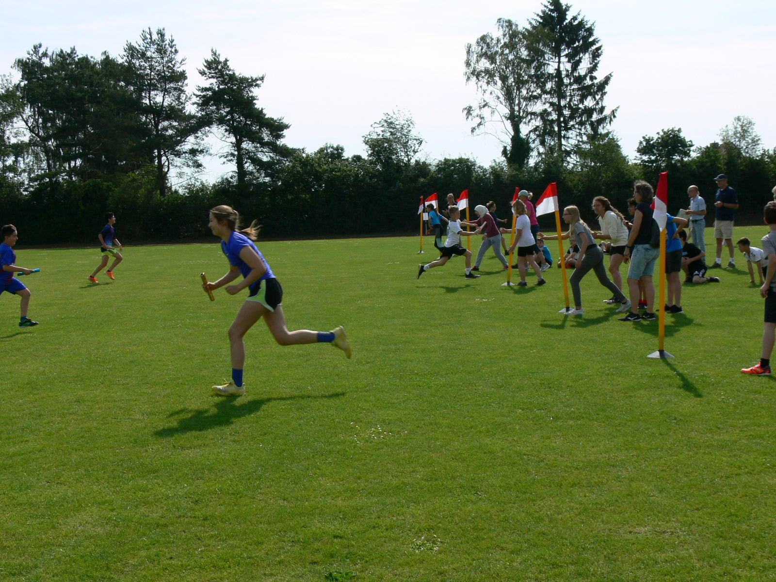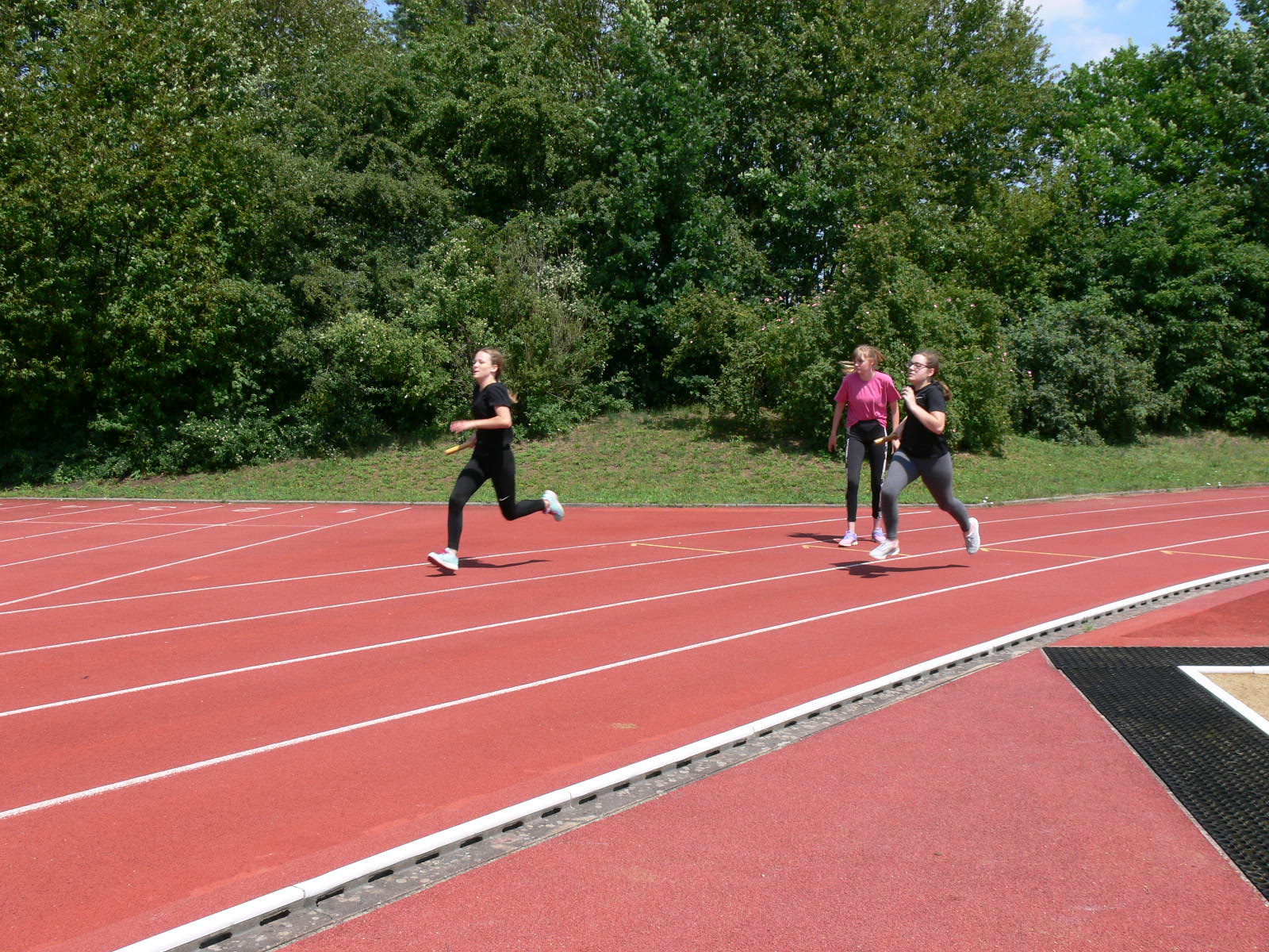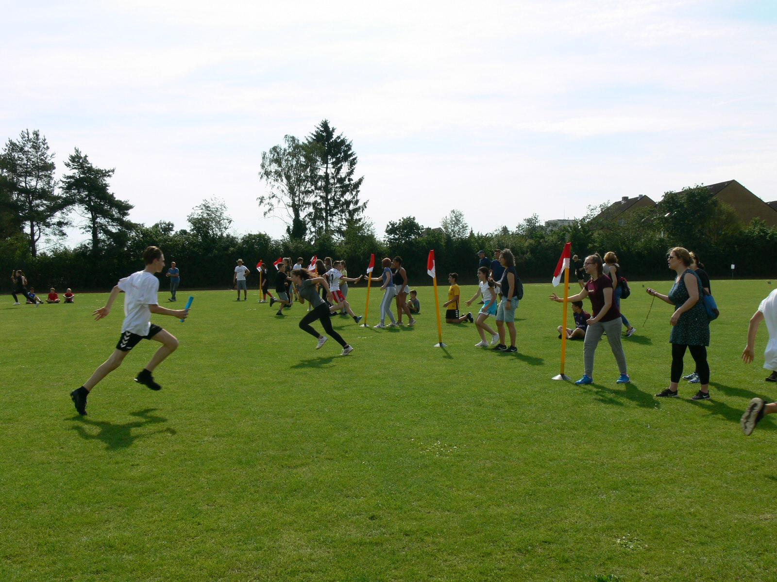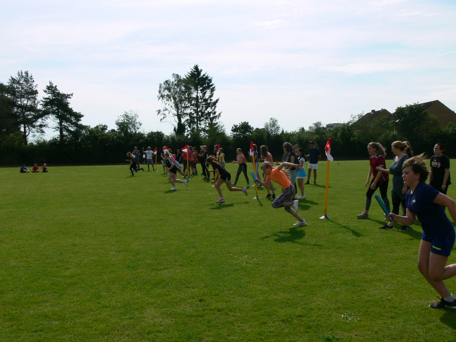 Im Anschluss an den Dreikampf wurden in den Jahrgängen 5-7 jeweils vier Mädchen und vier Jungen ausgewählt, um ihre Klasse bei den Pendelstaffeln zu vertreten. Jeder Staffelteilnehmer musste 50 m im sprinten, bevor der Staffelstab weitergegeben wurde.