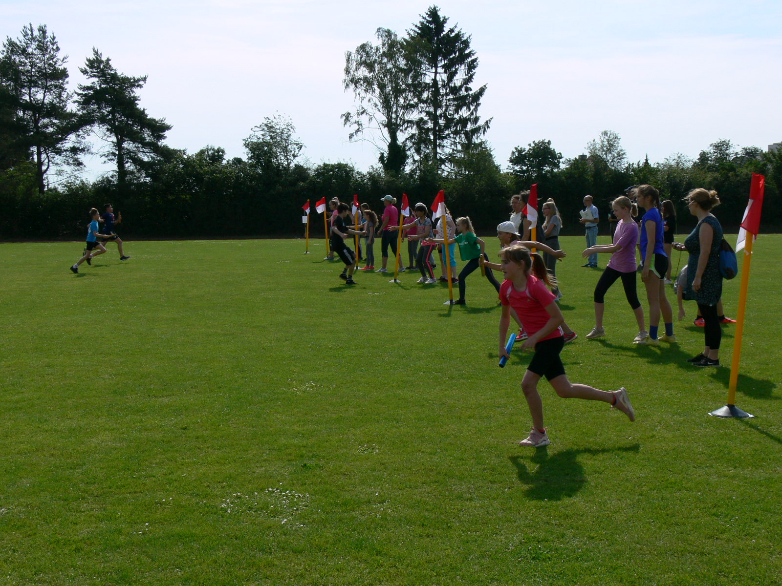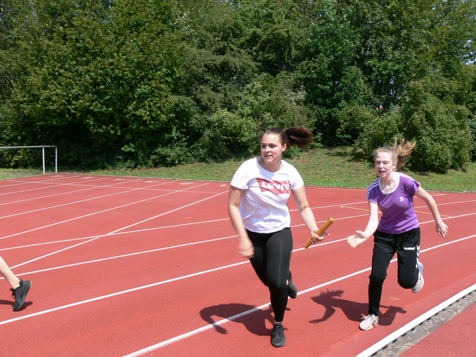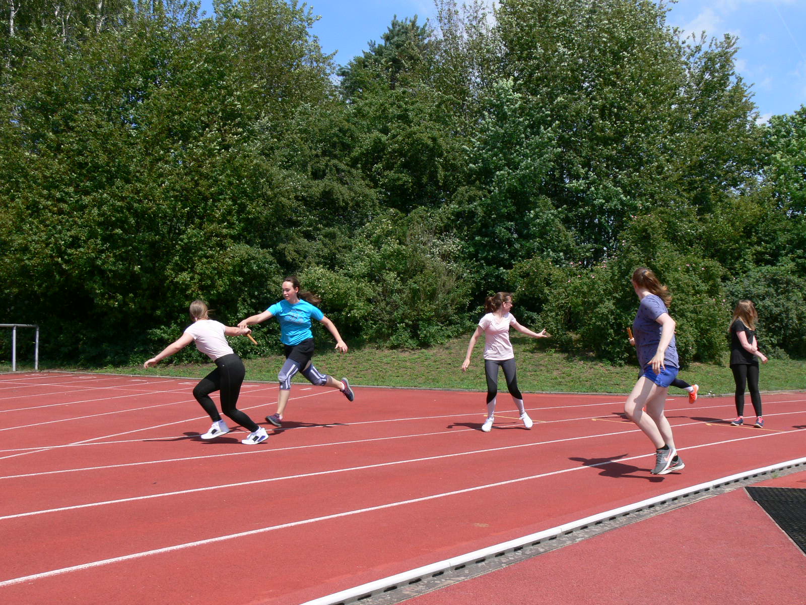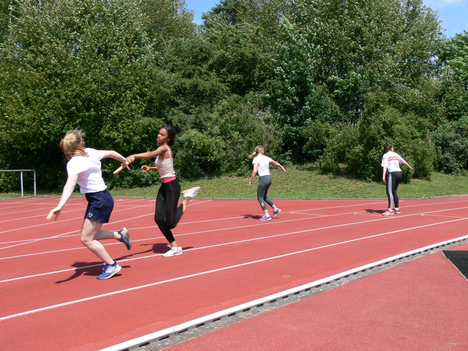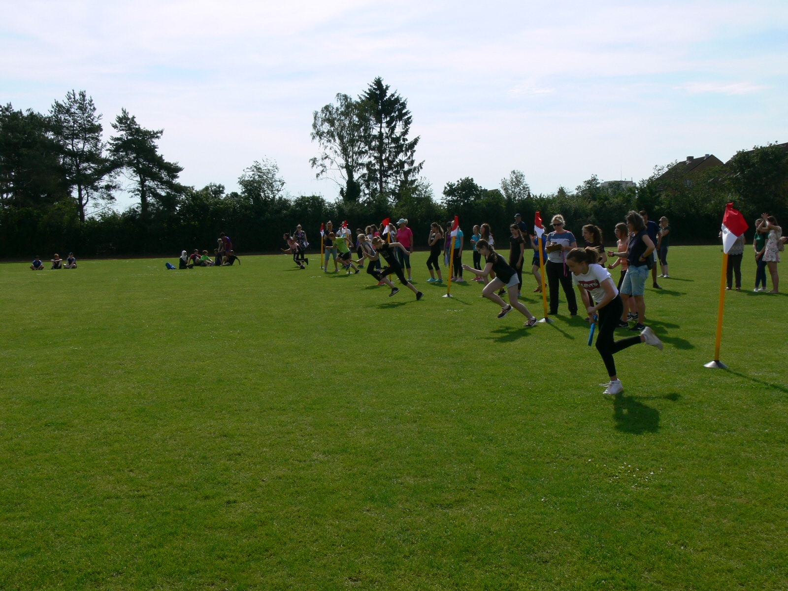 Im Anschluss an den Dreikampf wurden in den Jahrgängen 5-7 jeweils vier Mädchen und vier Jungen ausgewählt, um ihre Klasse bei den Pendelstaffeln zu vertreten. Jeder Staffelteilnehmer musste 50 m im sprinten, bevor der Staffelstab weitergegeben wurde.