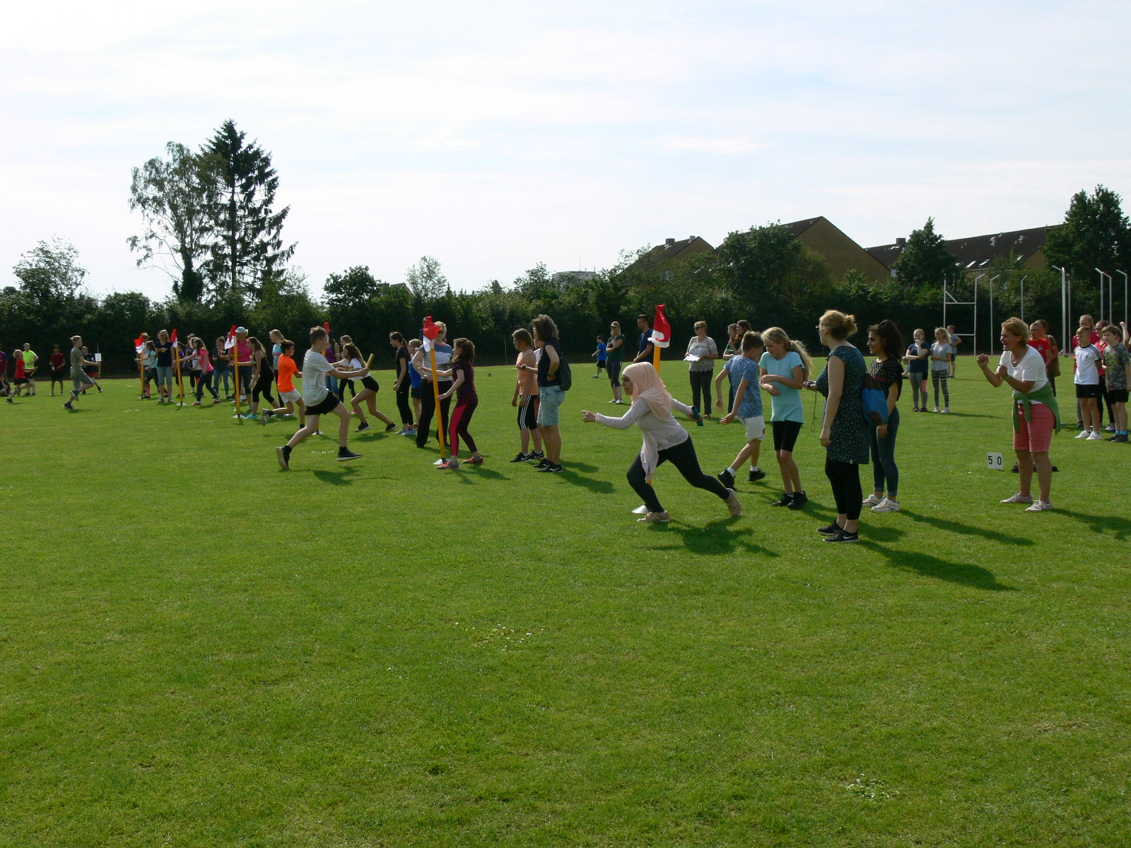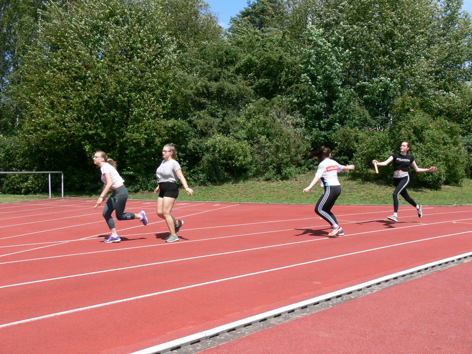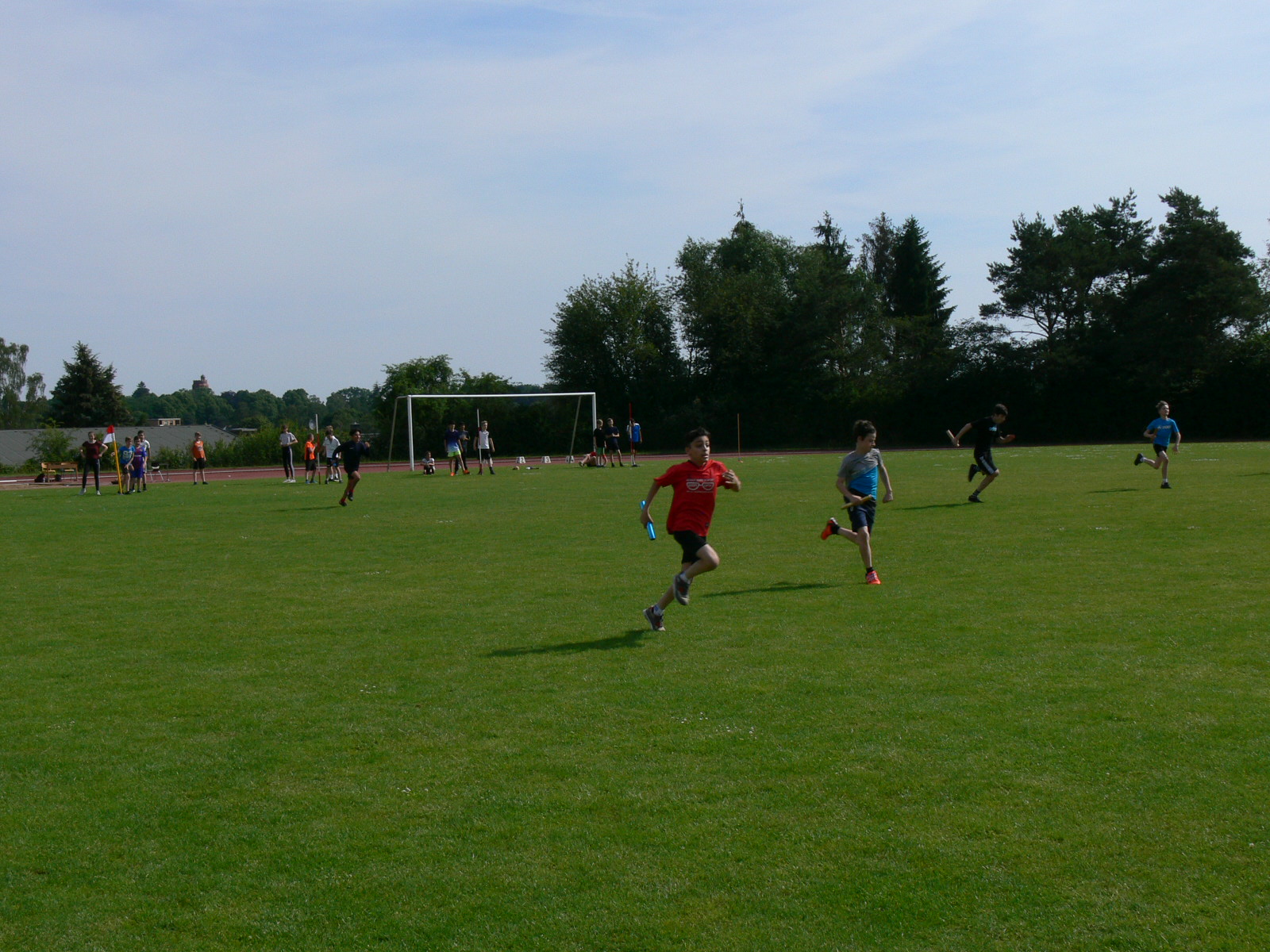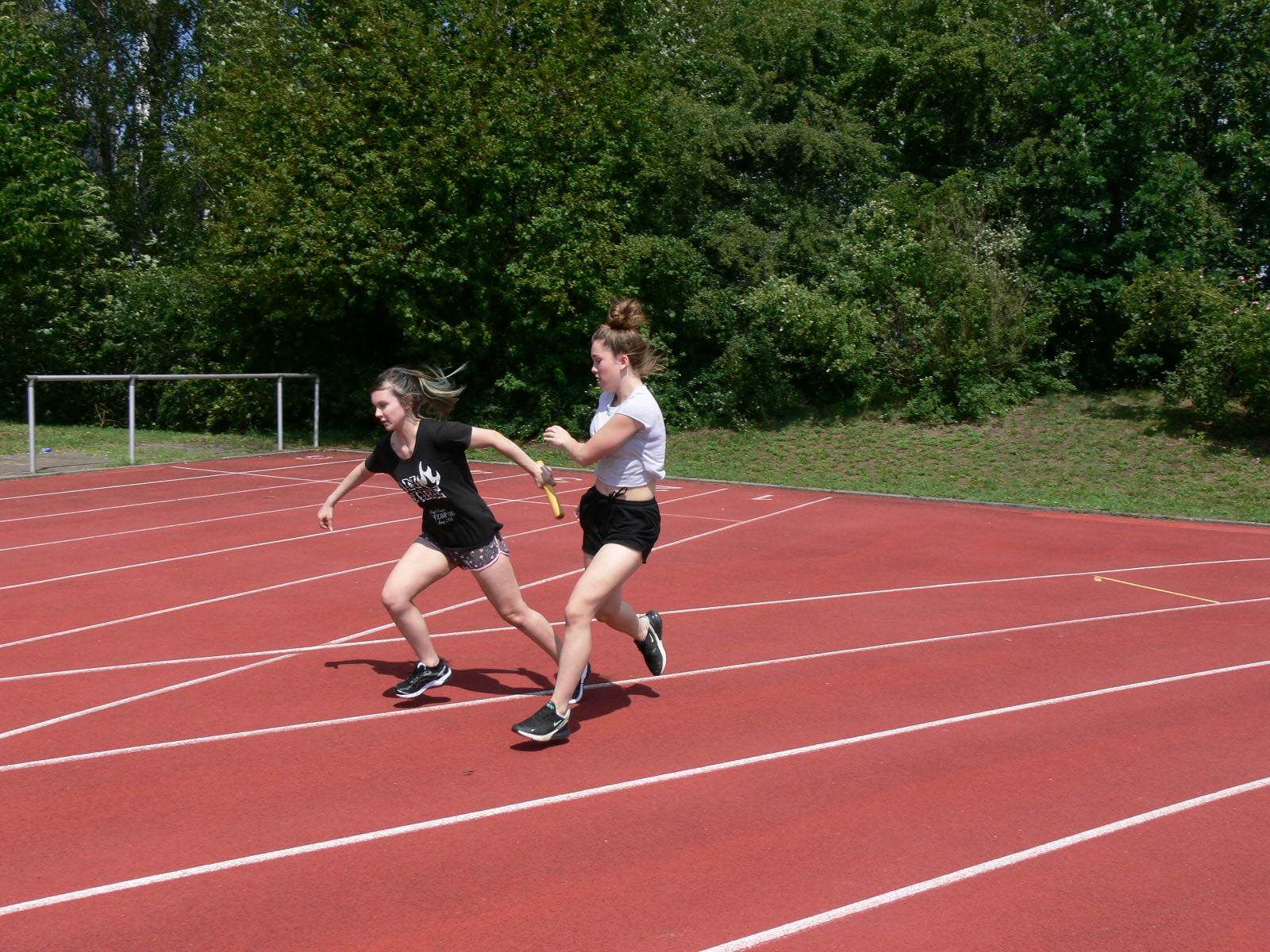 Im Anschluss an den Dreikampf wurden in den Jahrgängen 5-7 jeweils vier Mädchen und vier Jungen ausgewählt, um ihre Klasse bei den Pendelstaffeln zu vertreten. Jeder Staffelteilnehmer musste 50 m im sprinten, bevor der Staffelstab weitergegeben wurde.