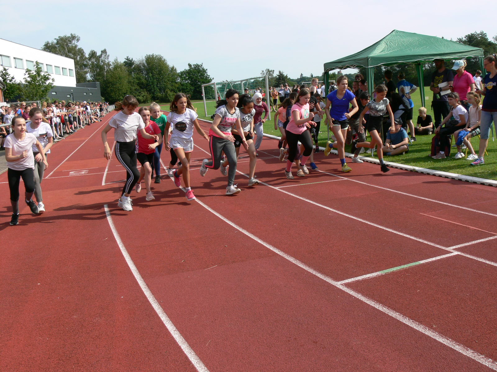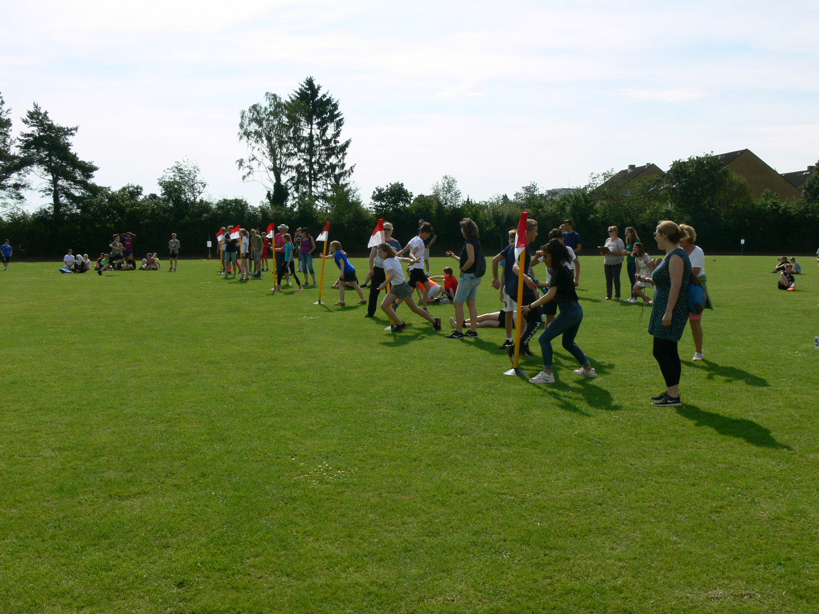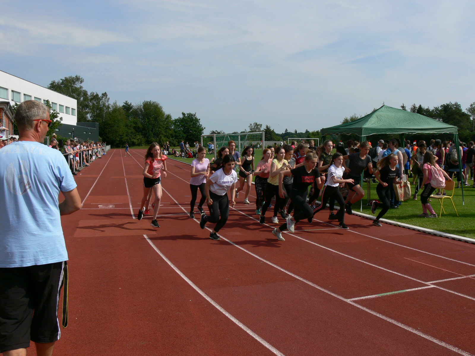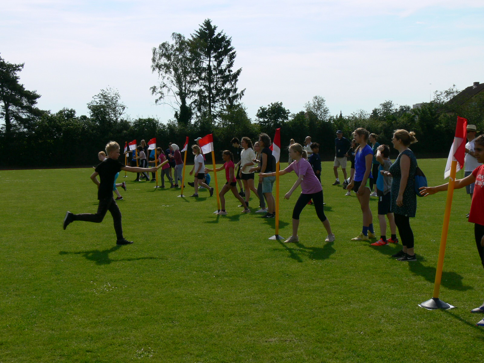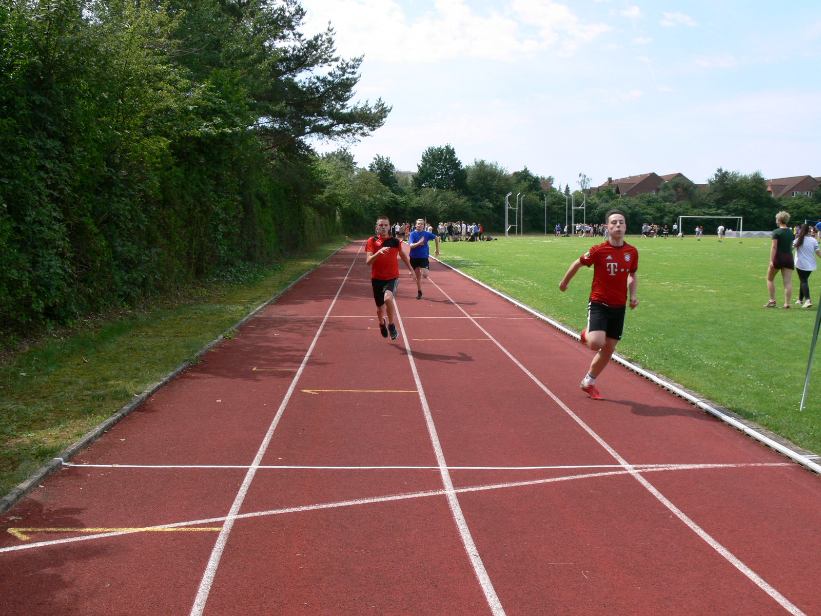 Im Anschluss an den Dreikampf wurden in den Jahrgängen 5-7 jeweils vier Mädchen und vier Jungen ausgewählt, um ihre Klasse bei den Pendelstaffeln zu vertreten. Jeder Staffelteilnehmer musste 50 m im sprinten, bevor der Staffelstab weitergegeben wurde.