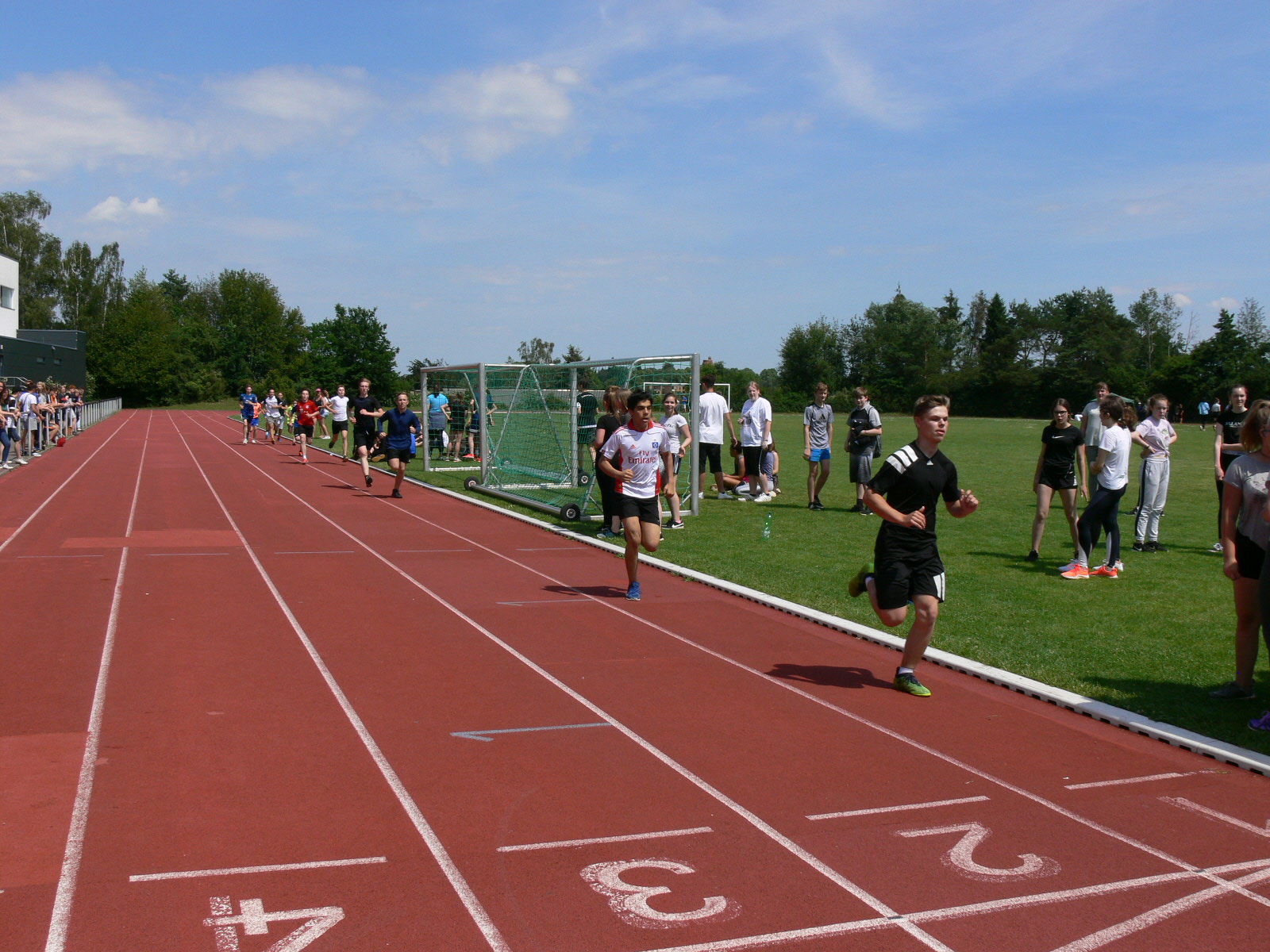 In den Jahrgängen 8-9 wurden die Staffelplatzierungen in den 4x100m Wettkämpfen vergeben, bei dem die zwei schnellsten Jungen und Mädchen der Klasse die Stadionrunde gemeinsam bewältigten.