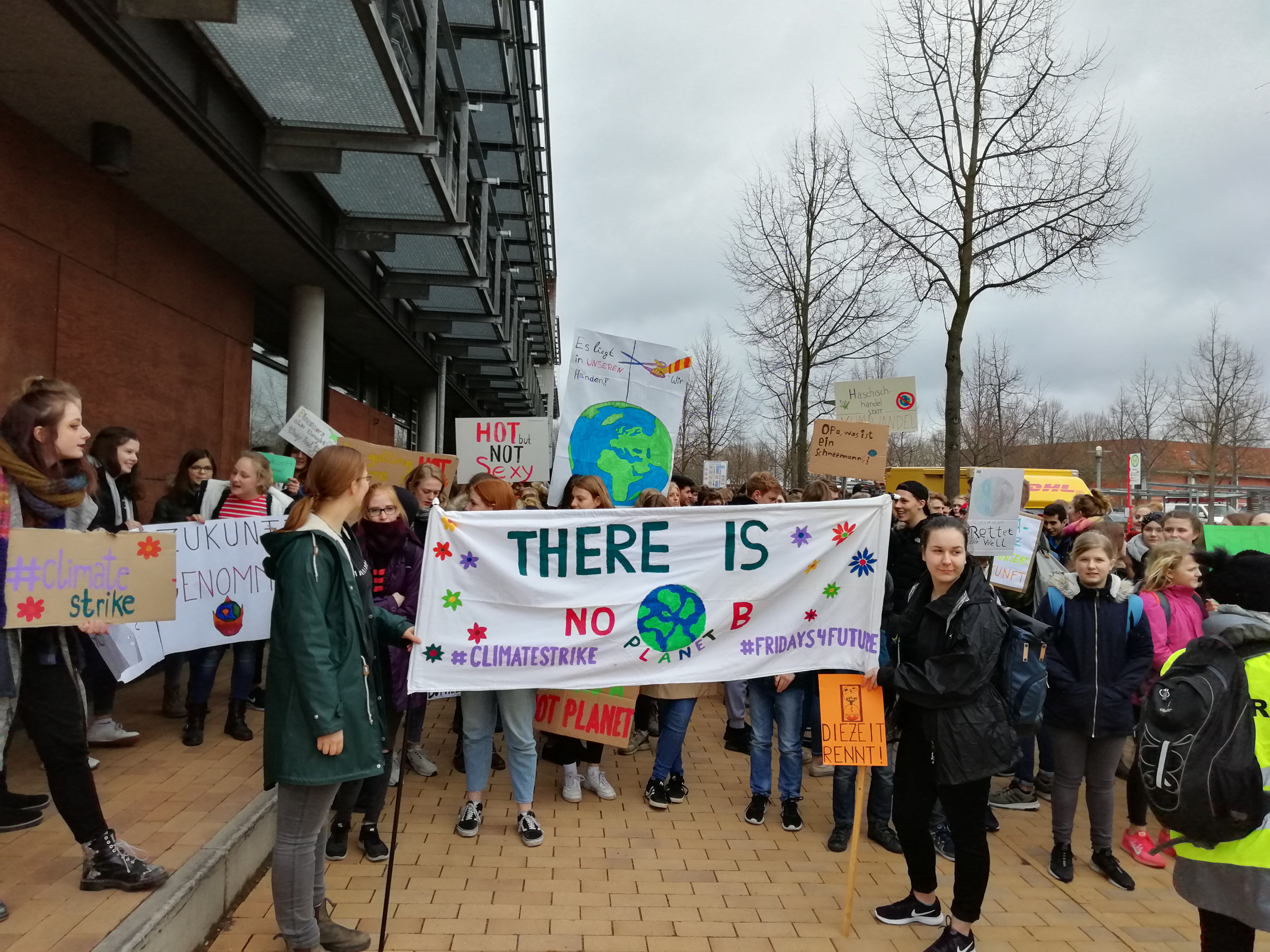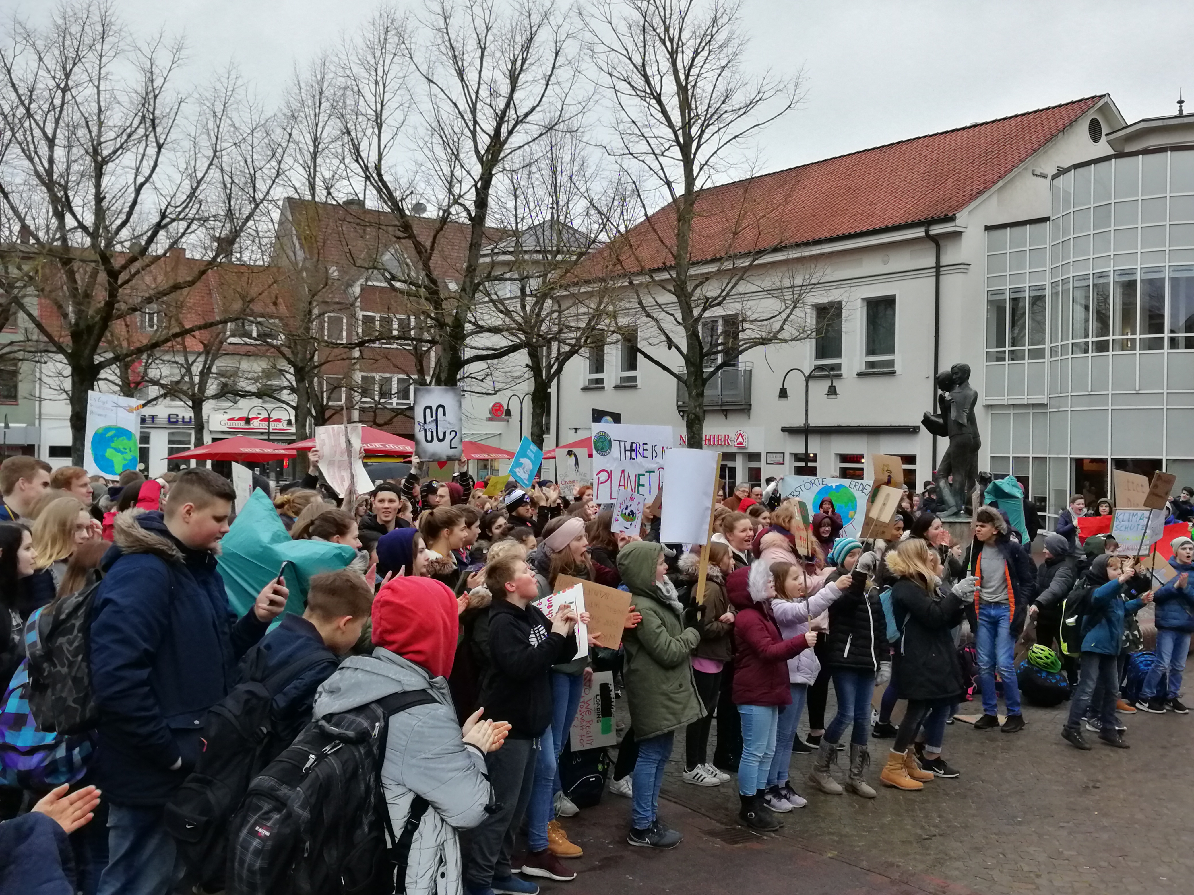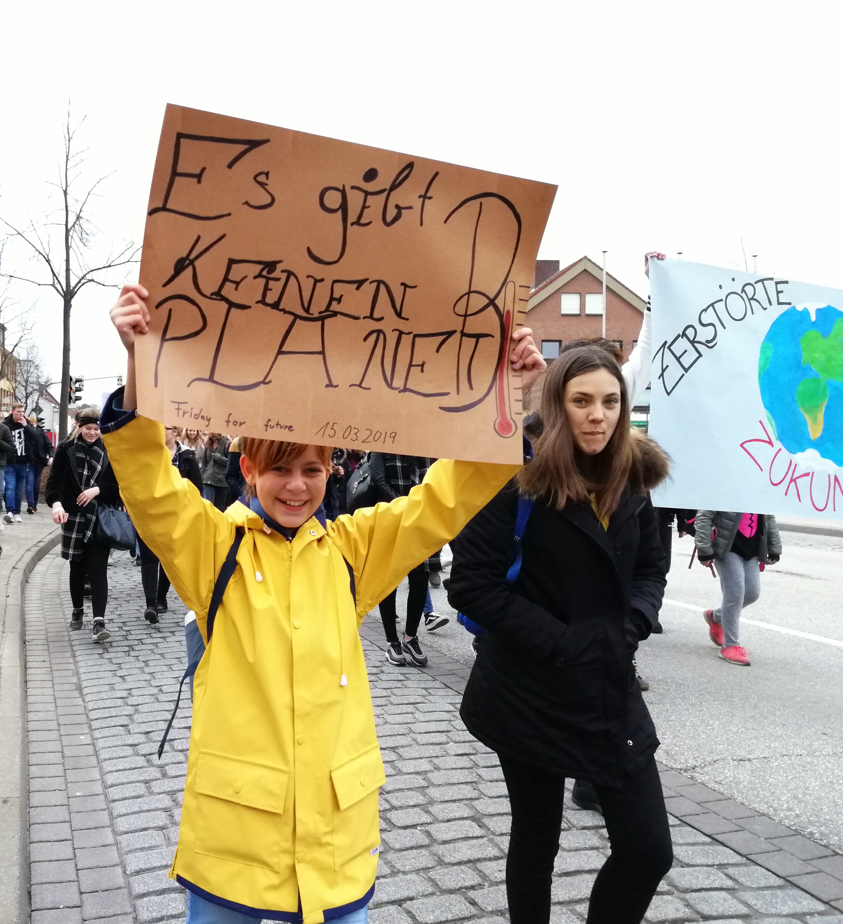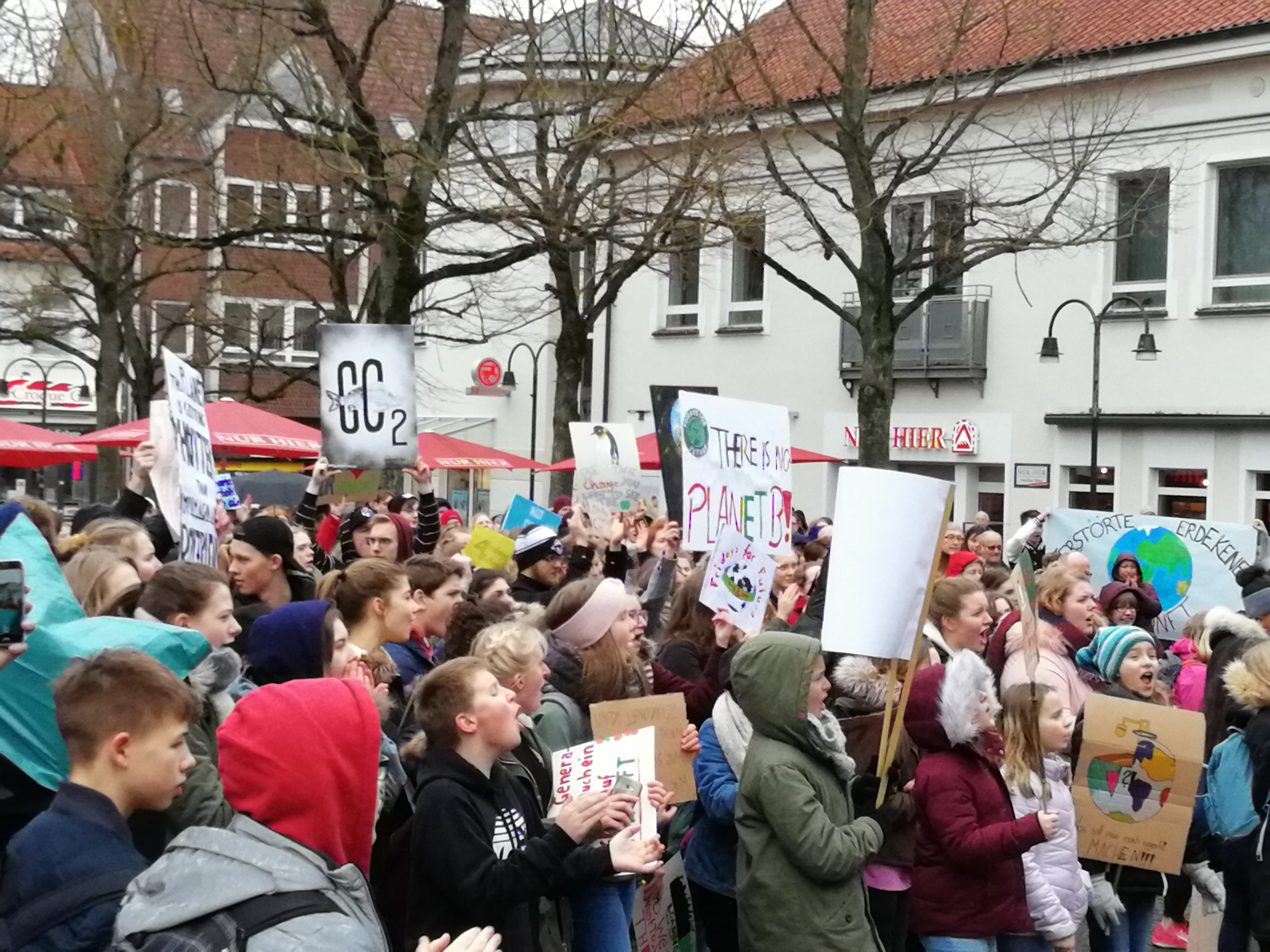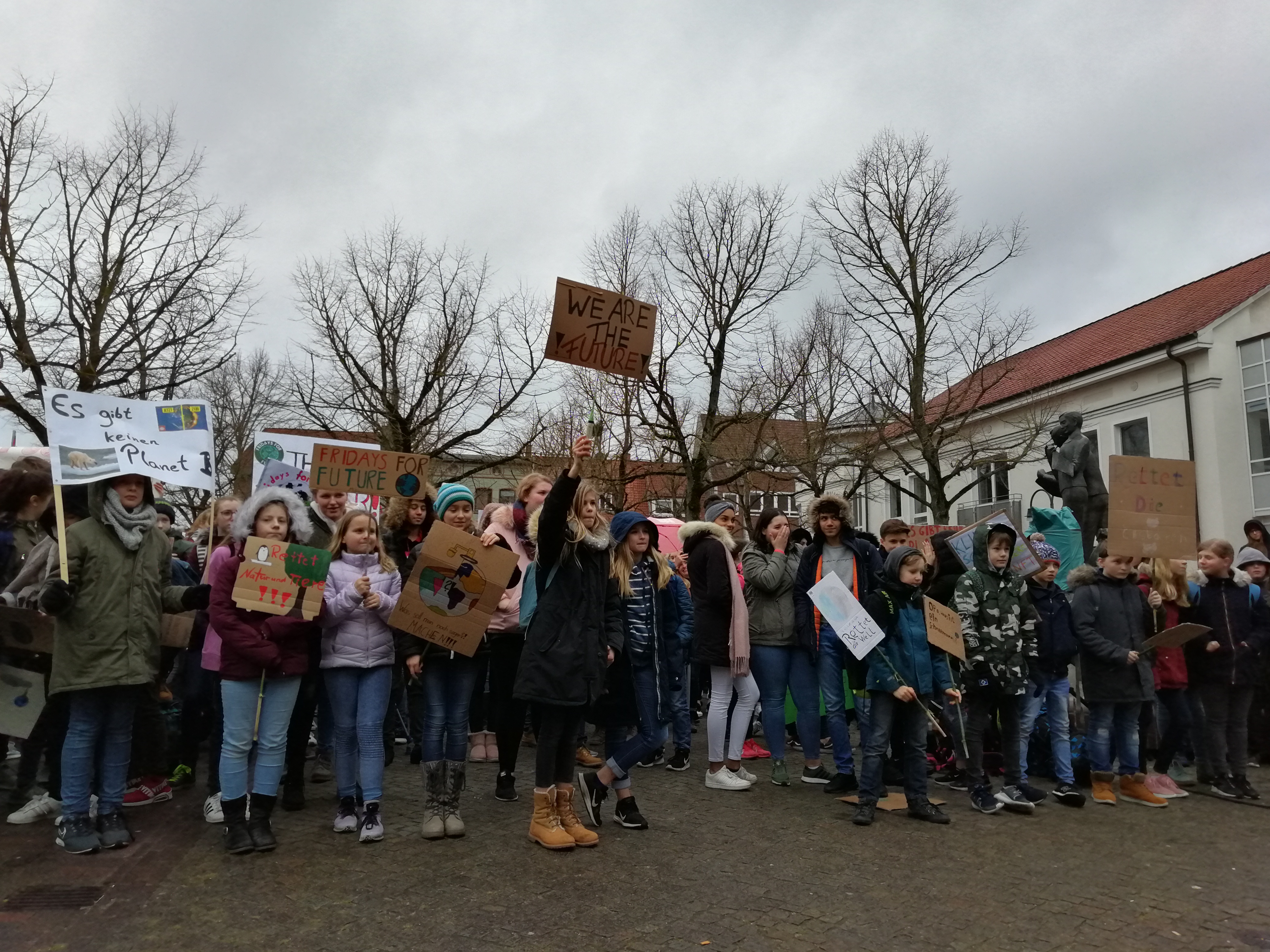 Am diesem weltweiten Aktionstag gingen Jugendliche zeitgleich in Schleswig-Holstein, Deutschland und der Welt auf die Straße, um für den Klimaschutz und somit für ihre Zukunft zu demonstrieren. Um 11 Uhr trafen sich schätzungsweise einige hundert Schülerinnen und Schüler mit liebevoll gestalteten Schildern auf dem Schulberg. Der angemeldete Demonstrationszug durch Mölln wurde von der Polizei und der Presse begleitet und von zahlreichen Anwohnern, Passanten und Autofahrern positiv angefeuert. Sprechchöre wie „Wir sind hier, wir sind laut, weil ihr unsere Zukunft klaut!“ oder „Es gibt keinen Planet B!“ waren zu hören. Es herrschte eine freundliche, mitreißende Stimmung und ein Gefühl der Zusammengehörigkeit. Bei der anschließenden Kundgebung auf dem Bauhof kamen die Vertreter der Schulen und der Politik zu Wort und wurden auch von Passanten, Eltern, Großeltern und anderen Unterstützern bejubelt. Da die Schülerinnen und Schüler trotz einsetzenden Regens bis zum Ende konzentriert mit vollem Einsatz dabei waren, lässt erahnen, dass sie bereit sind, sich für ihre Zukunft einzusetzen.