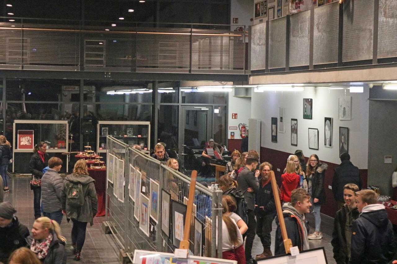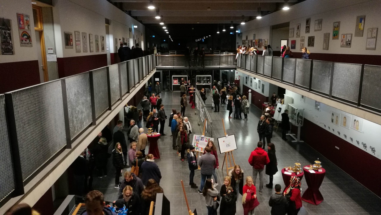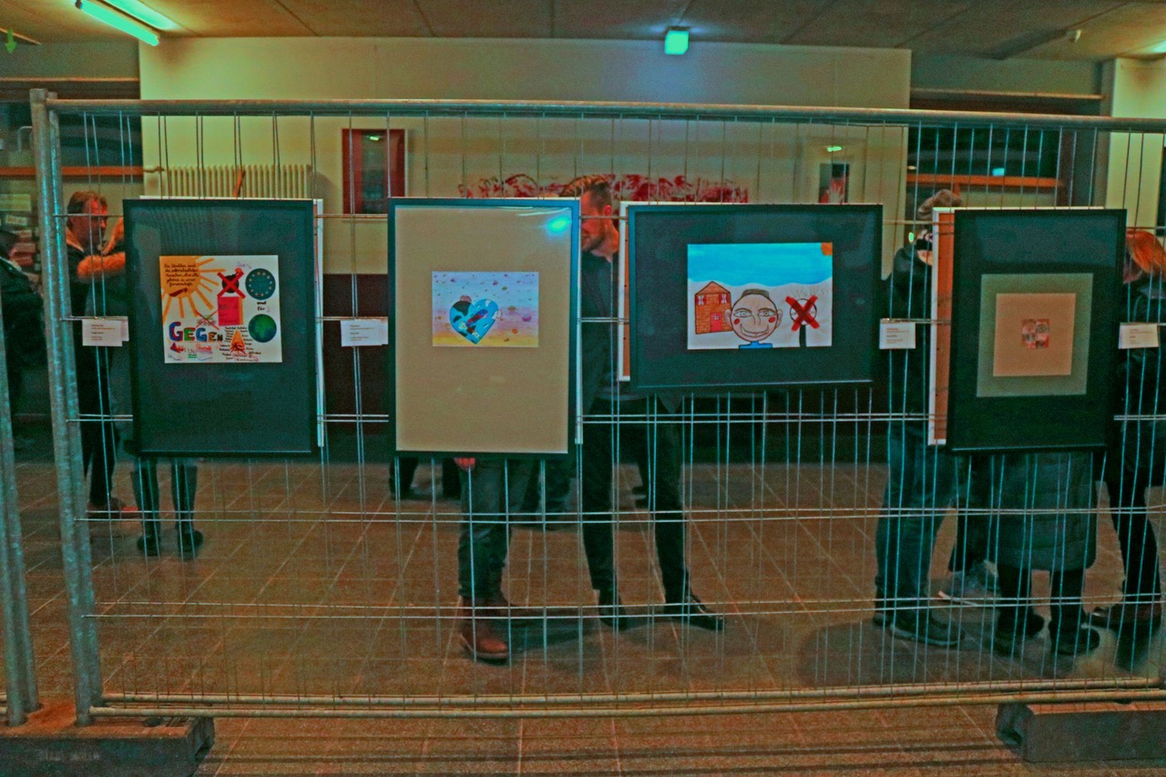 Jugendliche singen John-Lennon „Imagine“ im großzügigen Atrium der Gemeinschaftsschule in Mölln, dazu gibt es Getränke und Knabberzeug, zahlreiche Schülerinnen und Schüler, Eltern, dazu Möllner Stadtvertreter, Vertreter der Möllner Schulen und einige Gäste betrachten die zahlreichen Bilder, in denen Schülerinnen und Schüler aller Möllner Schulen von Klassenstufe 1 bis 10 ihre ganz persönliche Sicht auf Hass, Gewalt und Rassismus zeigen.