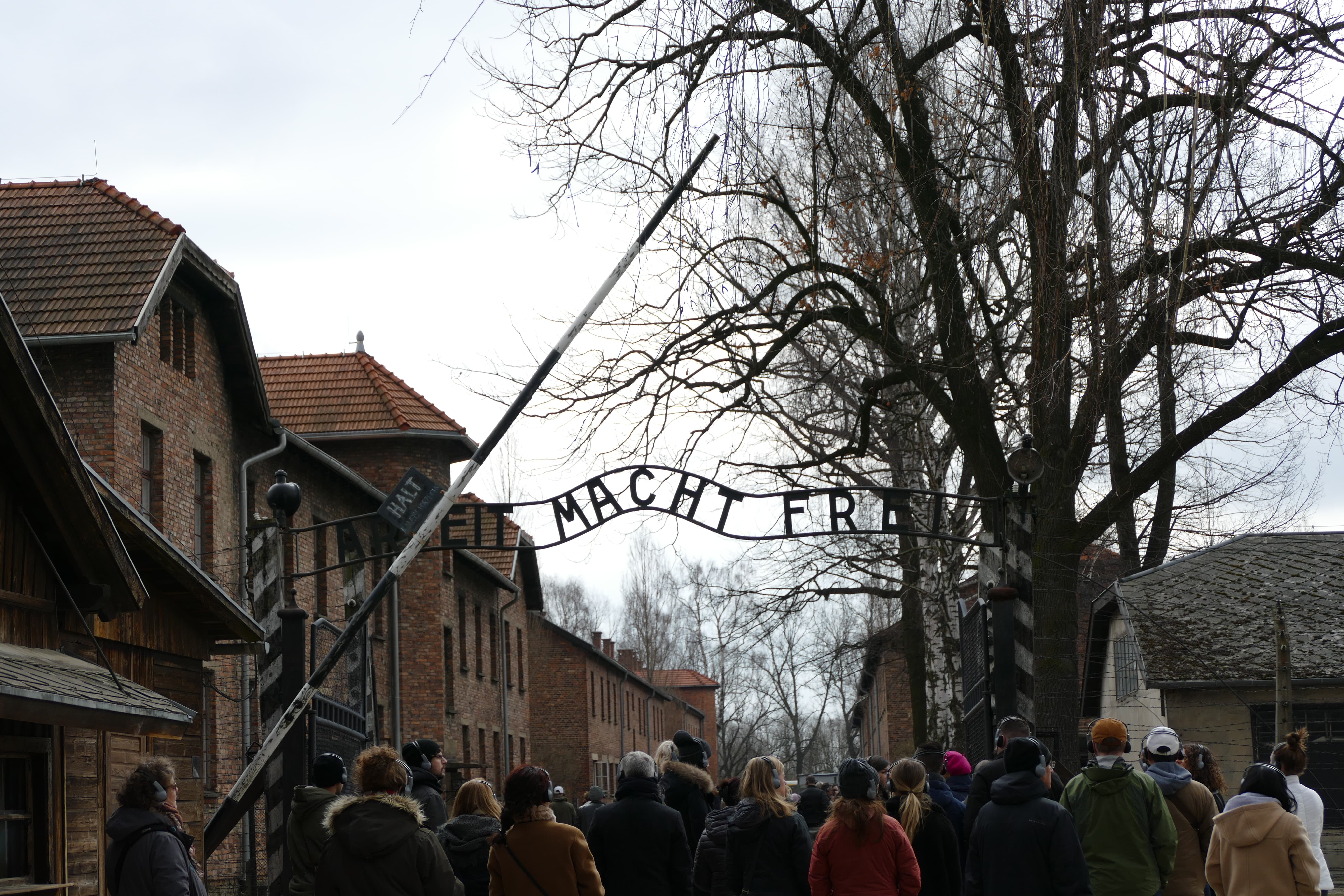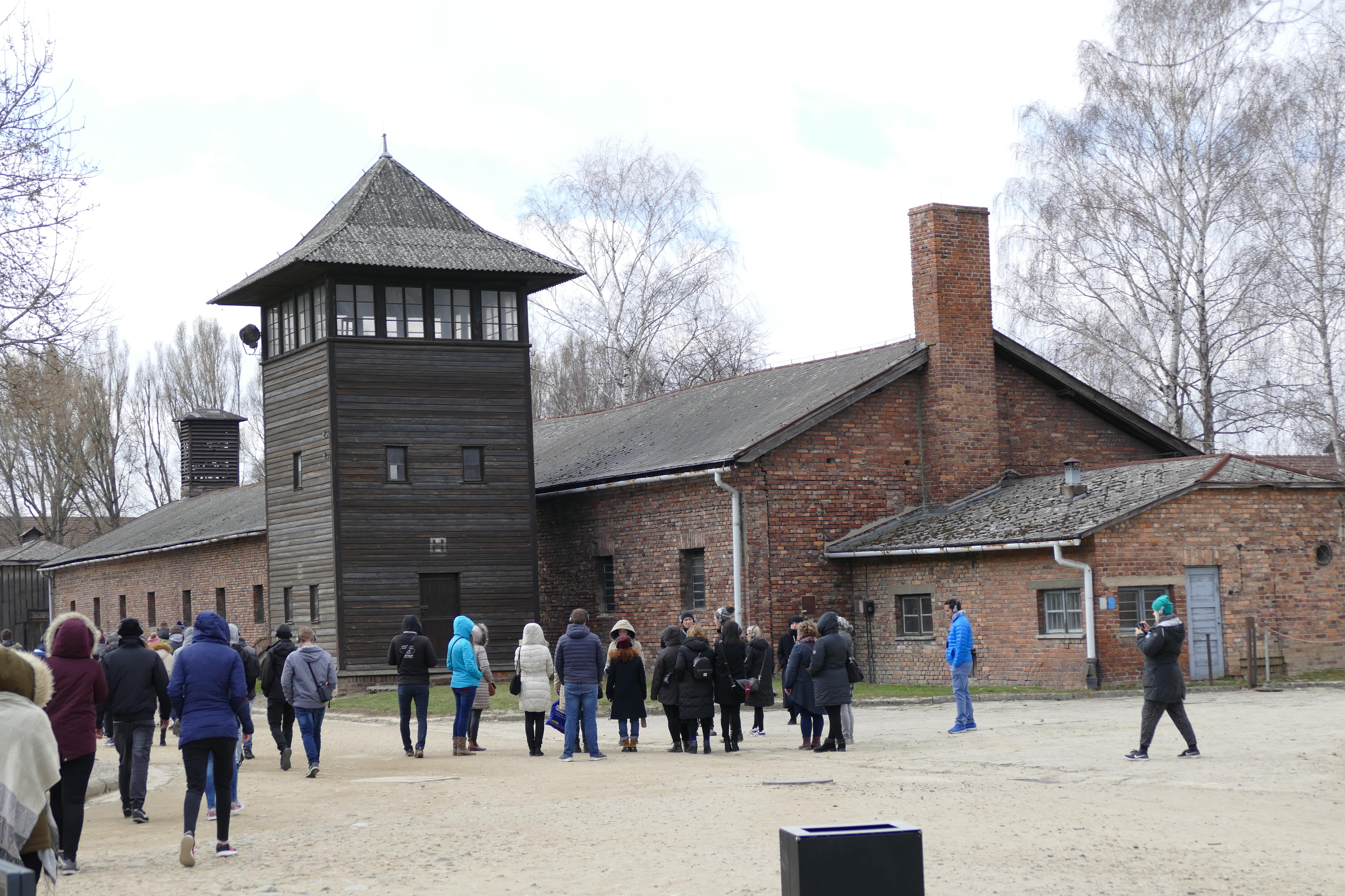 Am zweiten Tag haben wir uns um 09:00 Uhr vor dem Hotel getroffen und fuhren mit dem Bus in das ca. 60 km entfernte Auschwitz gefahren. Dort hatten wir um 10:30 Uhr einen Termin zu einer Führung über die Gedenkstätte des Konzentrationslagers Auschwitz. Wir haben mit unserem Guide, eine nette Frau zuerst mit dem Stammlager begonnen. In diesem hat sie uns erstmal einige Hauptinformationen erzählt, z.B. das dort zwischen 1,2 und 1,4 Millionen Menschen gestorben sind, vor allem Juden. Als wir durch den Eingang mit der Aufschrift ,,Arbeit macht frei´´ gelaufen sind überkam uns erstmal ein kleines frösteln, dass einen die ganze Zeit begleitete. Wir haben uns verschiedene Blöcke angeschaut, darunter den Block mit ausgestellten Haaren, Schuhen und Prothesen. Außerdem haben wir etwas mehr über den Alltag der Häftlinge erfahren. Im Stammlager haben wir noch den Block 11 oder auch die Baracke 11 besichtigt, welche auch bekannt ist dafür, dass dort die Strafen vollzogen worden: Zellen, wie die Dunkelzelle oder die Hungerzelle konnten wir dort sehen. Neben der 11. Baracke ist auch die Todesmauer, diese ist von Besuchern mit Blumengestecken geschmückt. Als letztes haben im Stammlager noch die Gaskammer Nr.1 gesehen, dort hatten wir Blick auf die Löcher, durch die das tödliche Zyklon B geschüttet wurde. Neben der Gaskammer war auch direkt das Krematorium mit den bekannten Öfen. In diesem Teil verspürt man ein sehr kaltes Gefühl.
