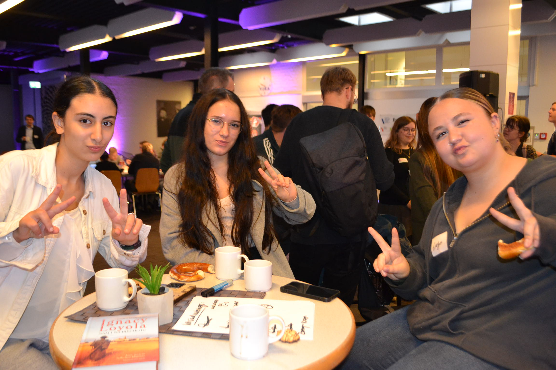 Nach dem Spiel wurde uns Essen und Getränke angeboten, um eine Pause einzulegen. Während dieser Pause konnten wir mehrere kleine Stände besuchen, an denen wir Bilder und Musik generieren konnten. Zudem gab es Mini-Games, Plakate und ein Pinnboard, auf dem wir Zettel anbringen sollten, die unsere persönliche Grenze in der Welt der KI markierten. Dies regte uns zum Nachdenken an, und wir kamen zu dem Schluss, dass für uns der Schlussstrich erreicht ist, wenn eine KI „Gefühle“ zeigt oder ausdrückt.