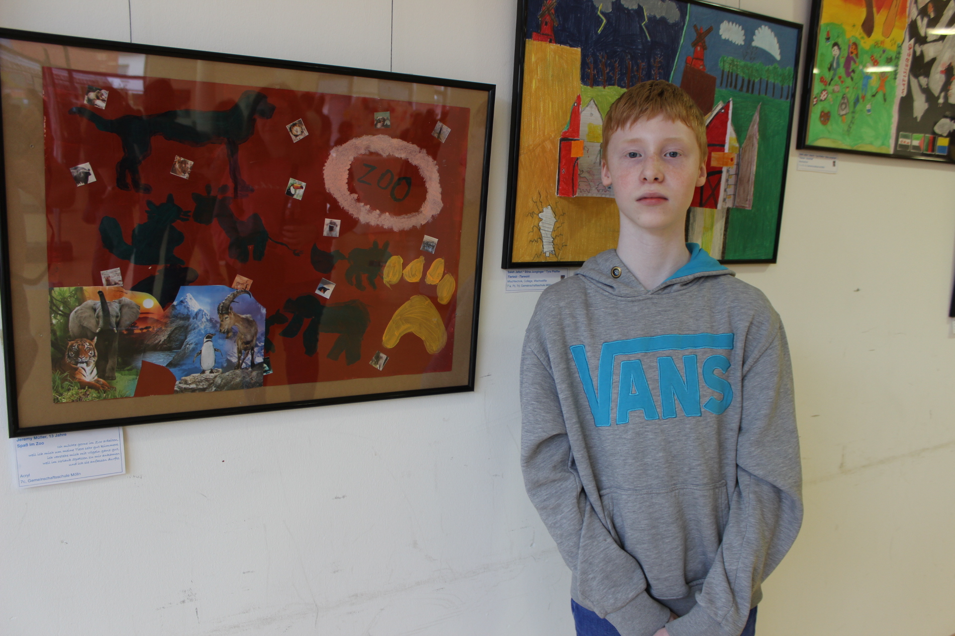Anschließend gab es ein Grußwort von Almuth Grätsch, Sprecherin des Kooperationspartners Forum Kultur&Umwelt und zusammen mit Ulrich Keller Mitglied der Jury des Wettbewerbs. Die Jury, der weiterhin Antje Ladiges-Specht, Kunstkuratorin und Jörg-R. Geschke, Kreisfachberater, angehörten, wählte einige Bilder für eine besondere Würdigung und Preise aus, kam aber bei Sichtung der Exponate zu dem Schluss, dass alle eingereichten Bilder ausgestellt werden müssten. „Eine großartiger Einblick in die Denk- und Lebenswelt heutiger Kinder und Jugendlicher“, so beurteilte Almuth Grätsch in ihrer Begrüßung die Ausstellung.