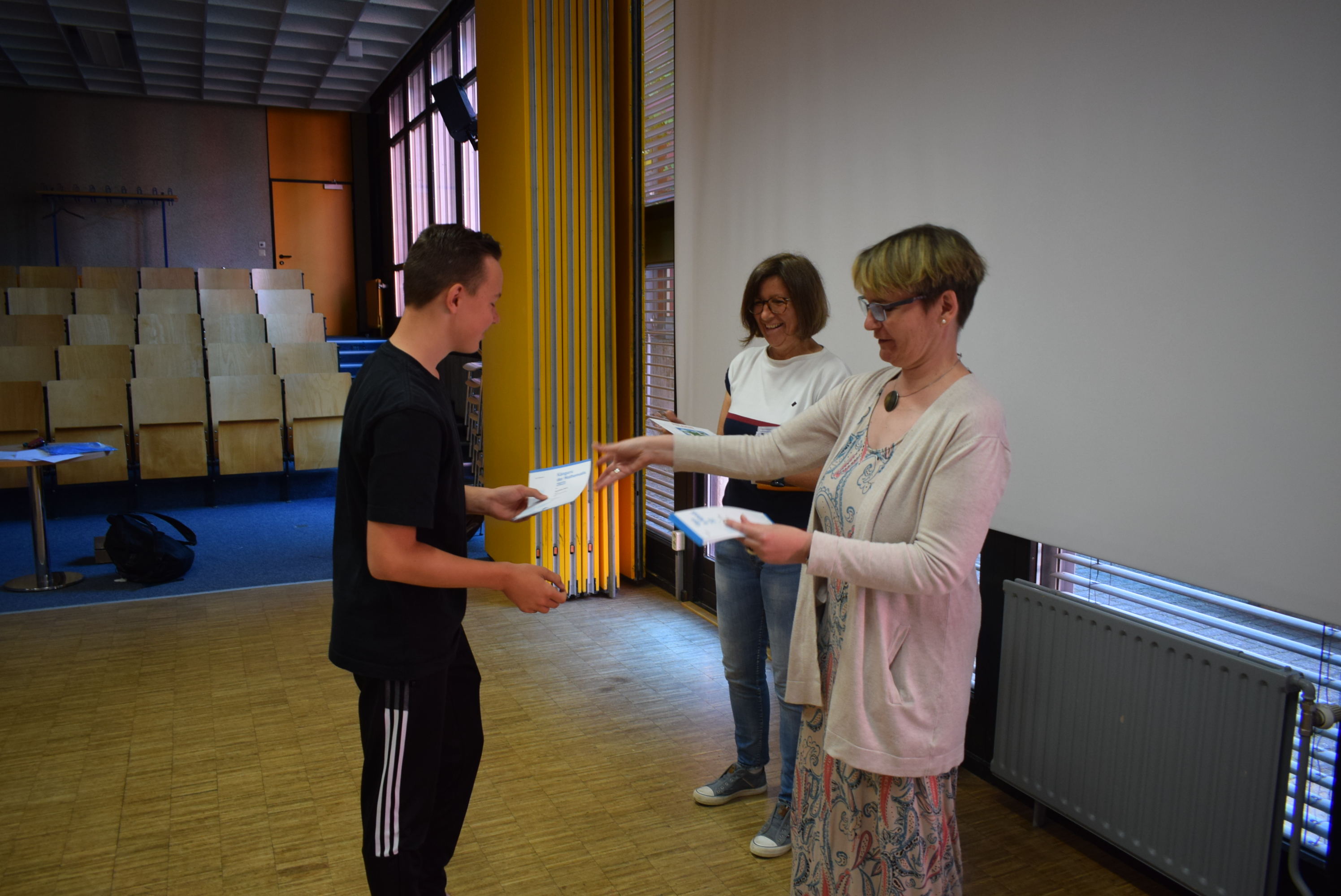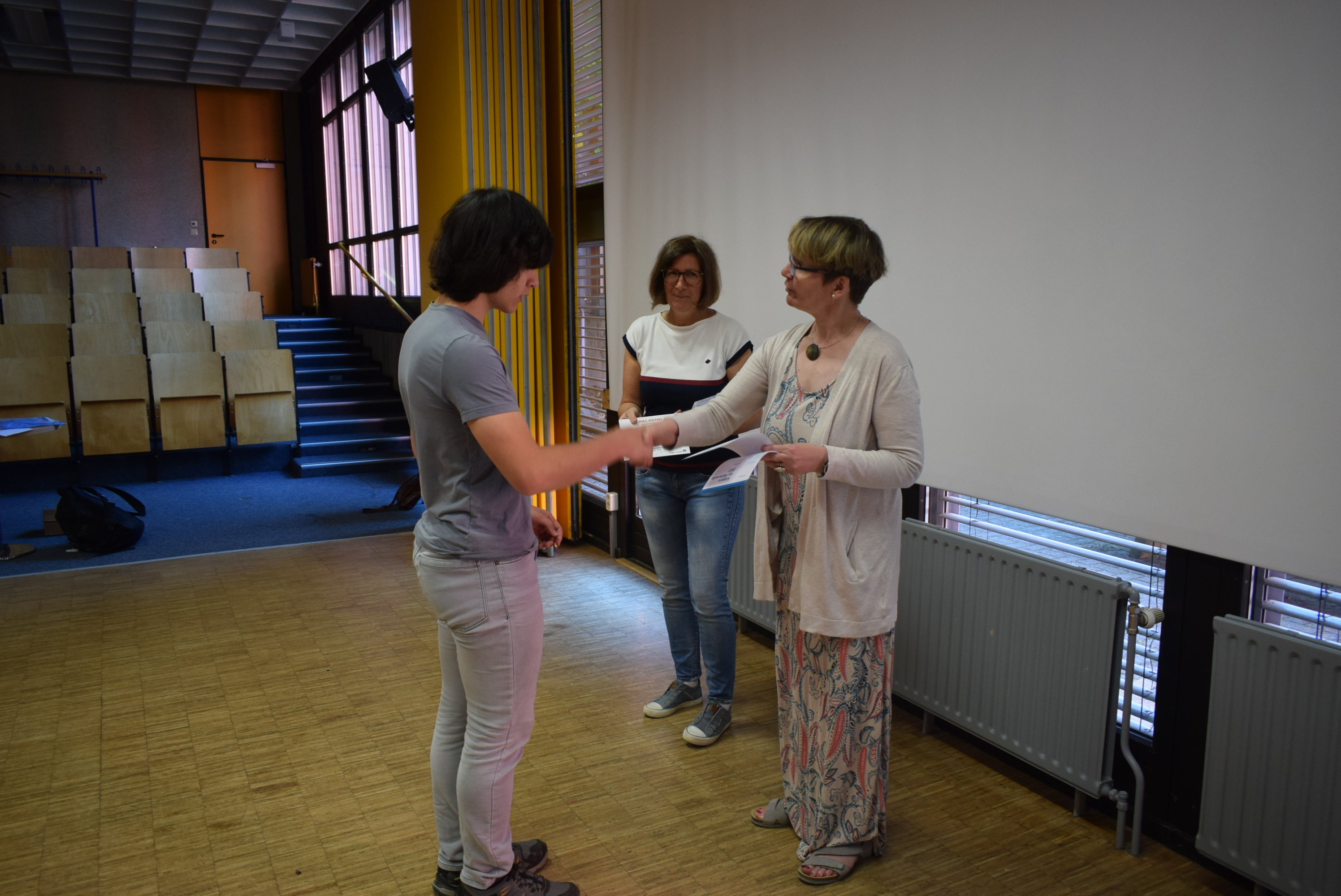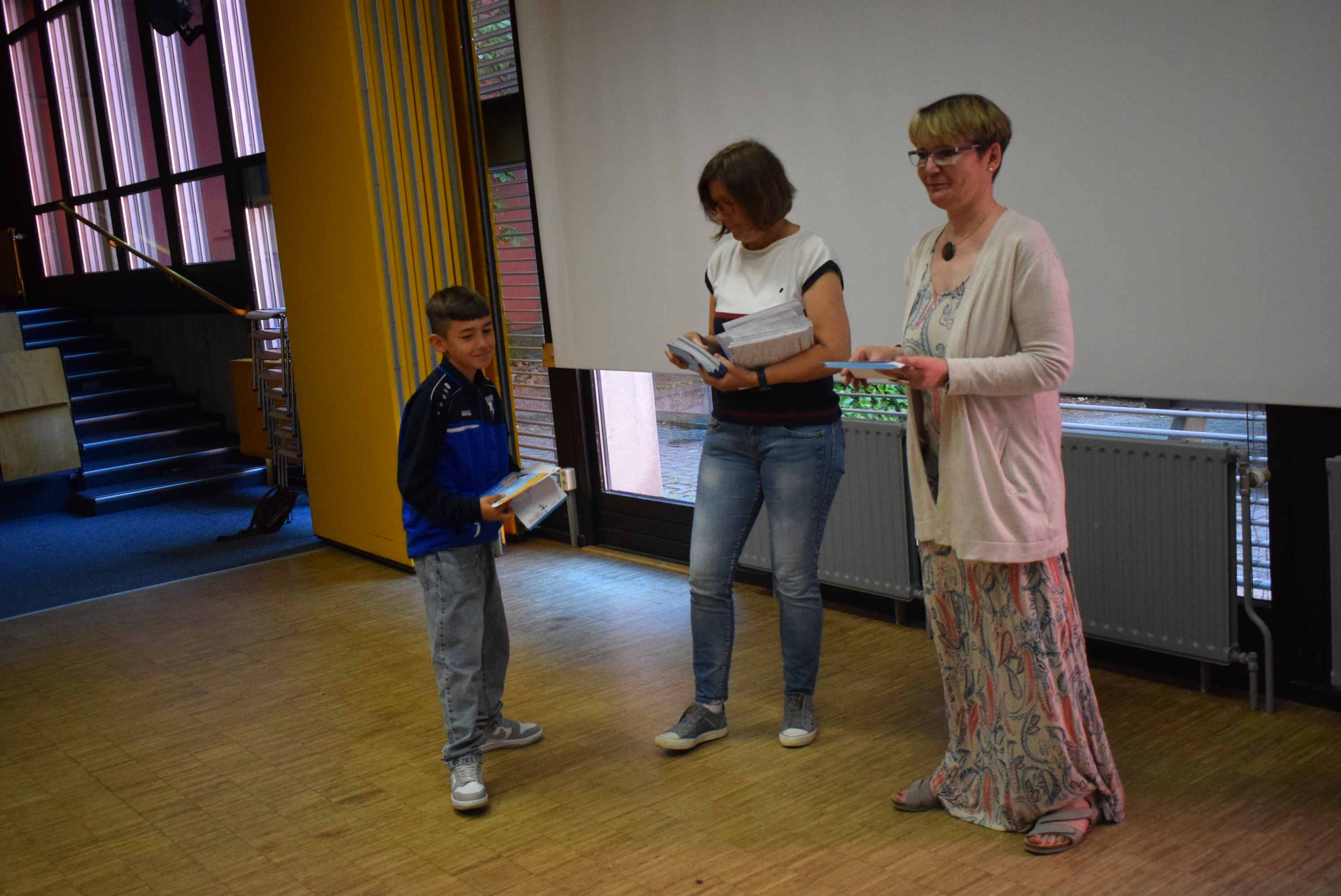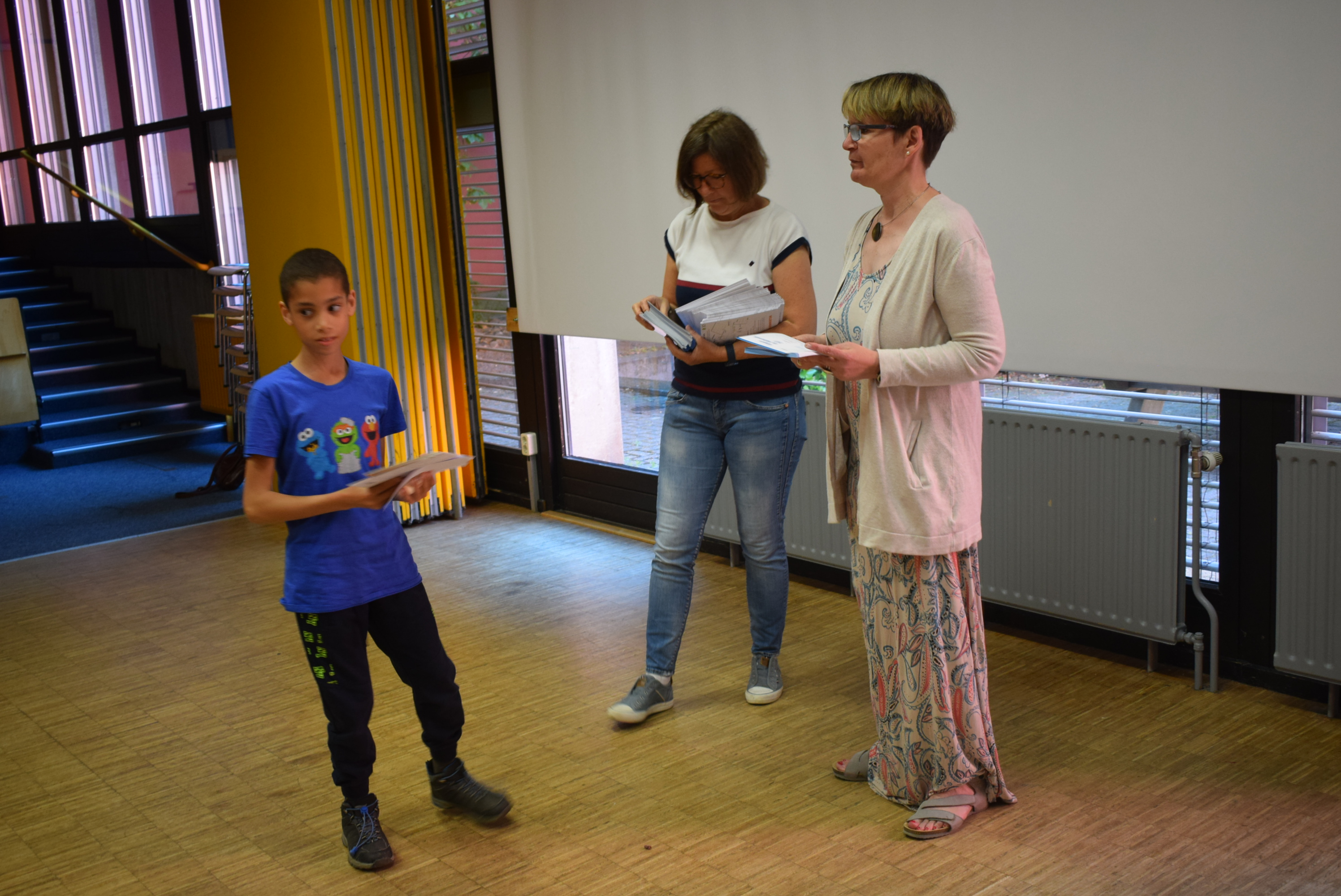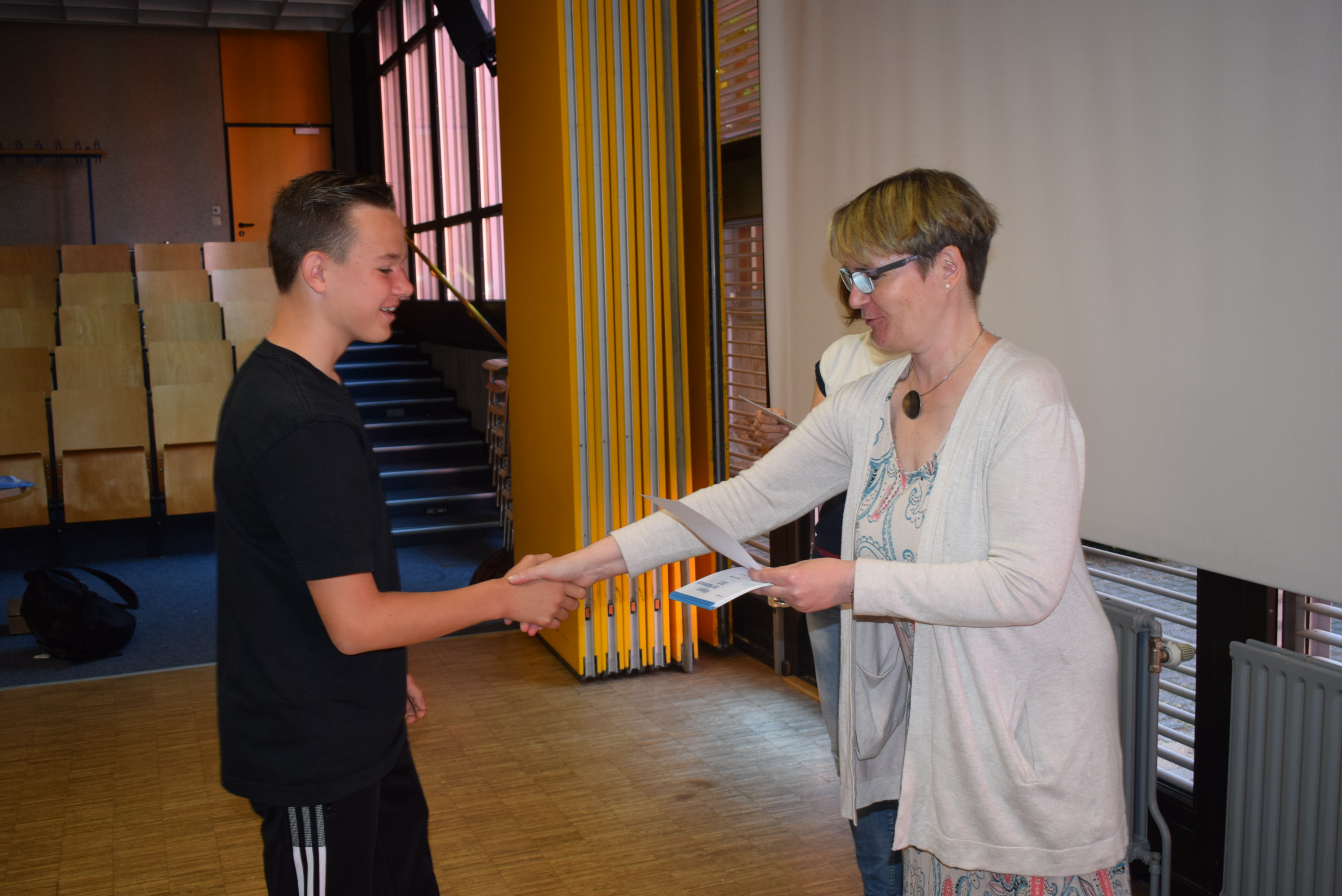 Luisa V. erhielt zusätzlich ein T- Shirt, da sie von der Schule den weitesten „Kängurusprung” (d.h. der größten Anzahl von aufeinanderfolgenden richtigen Antworten) gemacht hatte.
