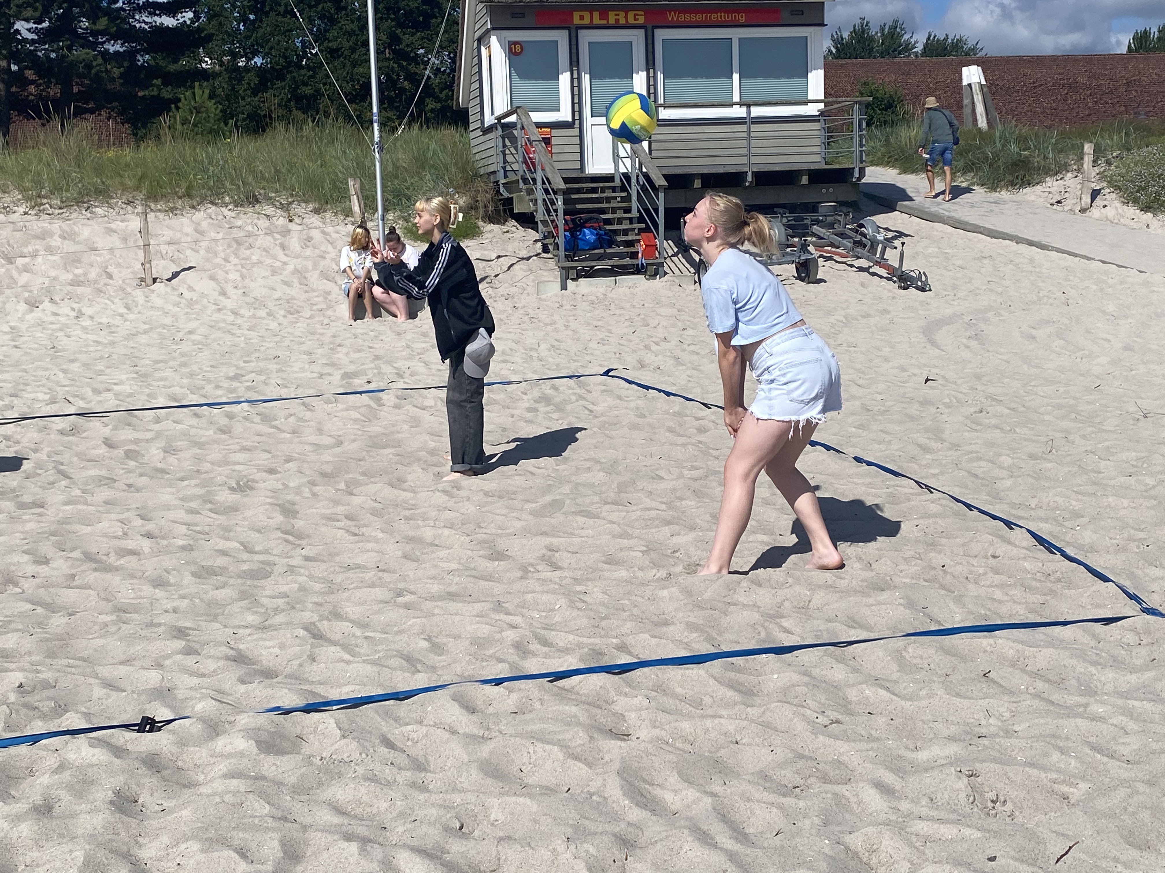 Vor der Abfahrt am Sonntagmittag konnten wir bei bestem Wetter am Strand einfach die Sonne genießen oder Volleyball spielen. Für die Rückfahrt zum Bahnhof haben wir dann zum Glück den Bus genommen!