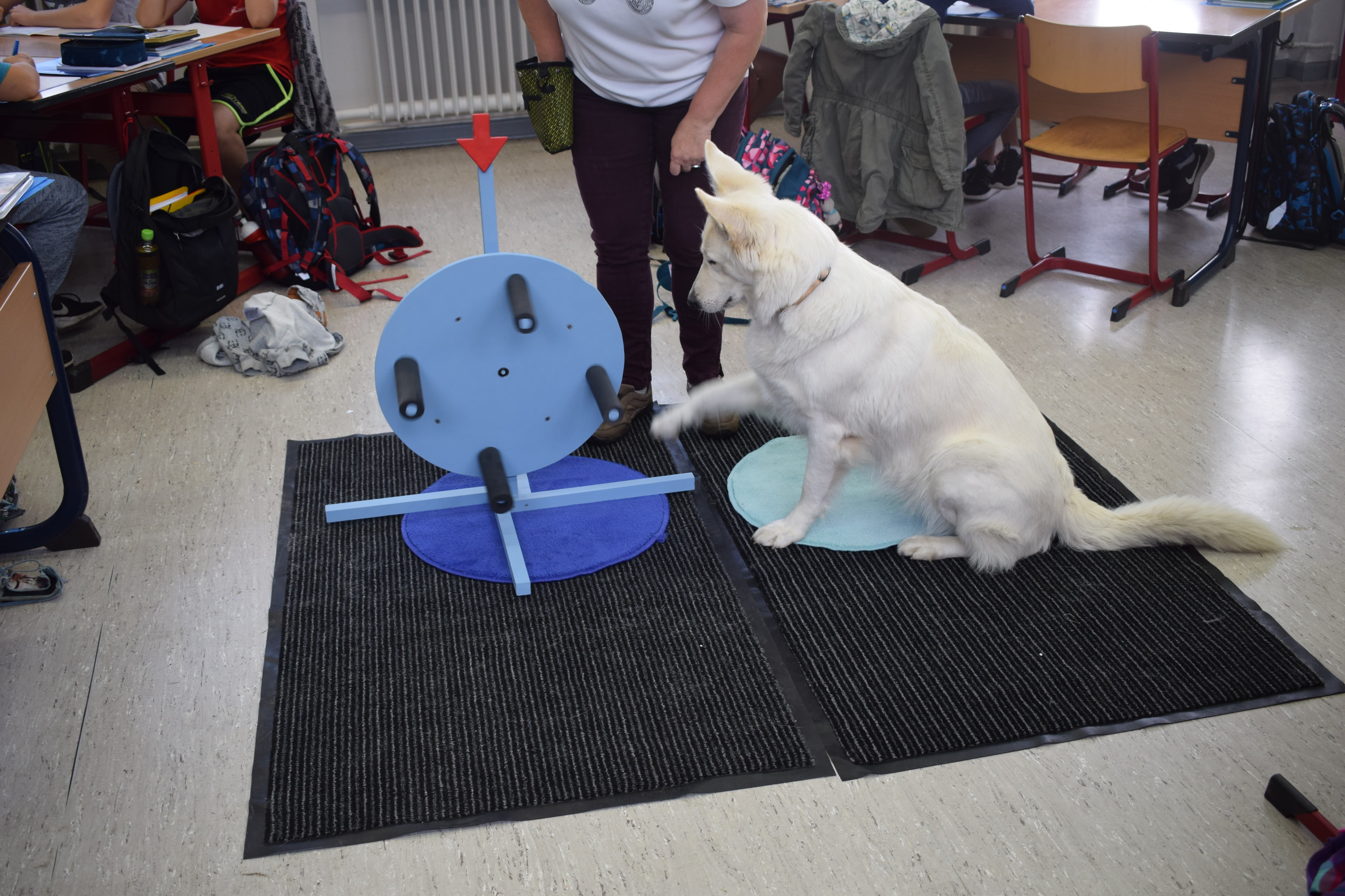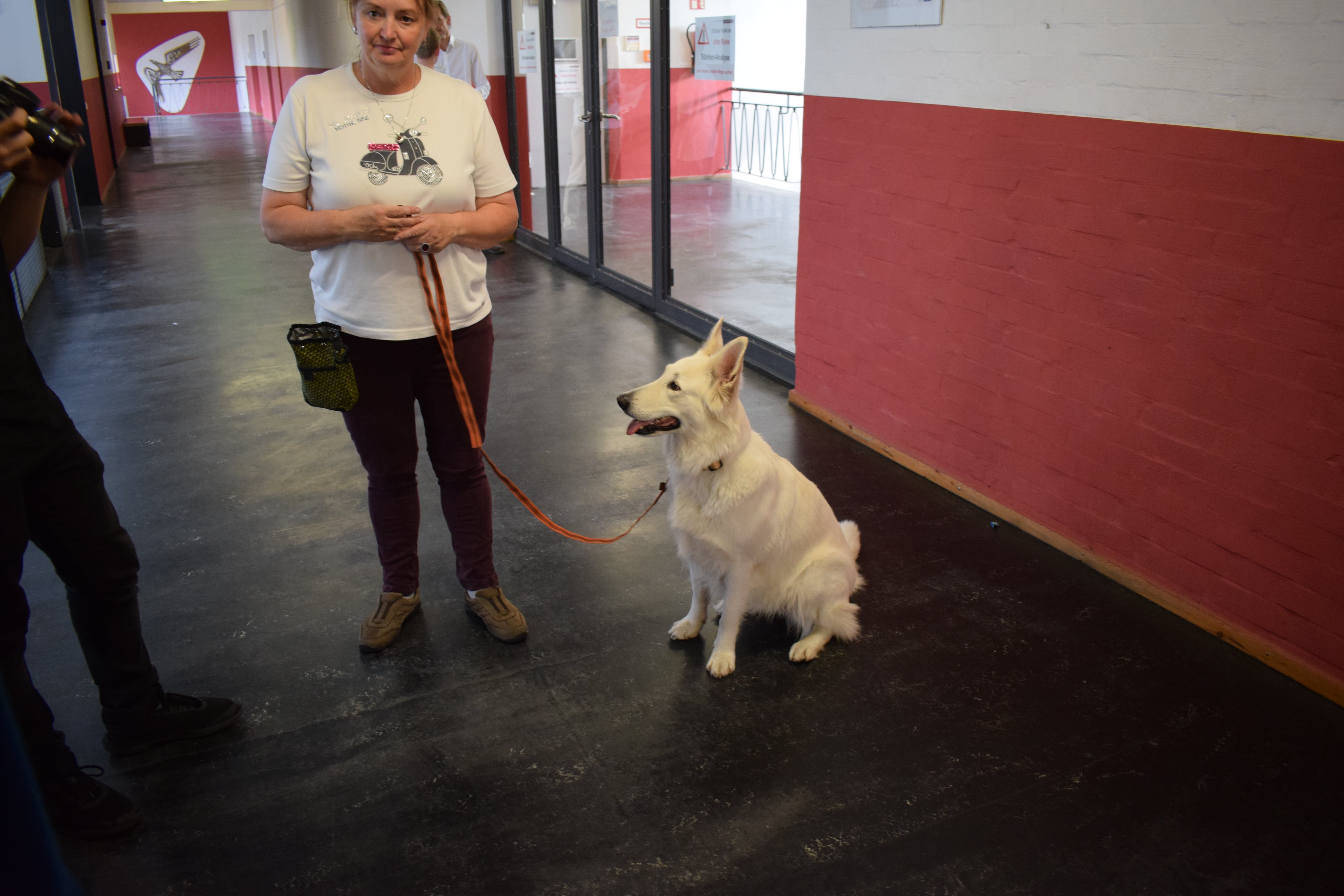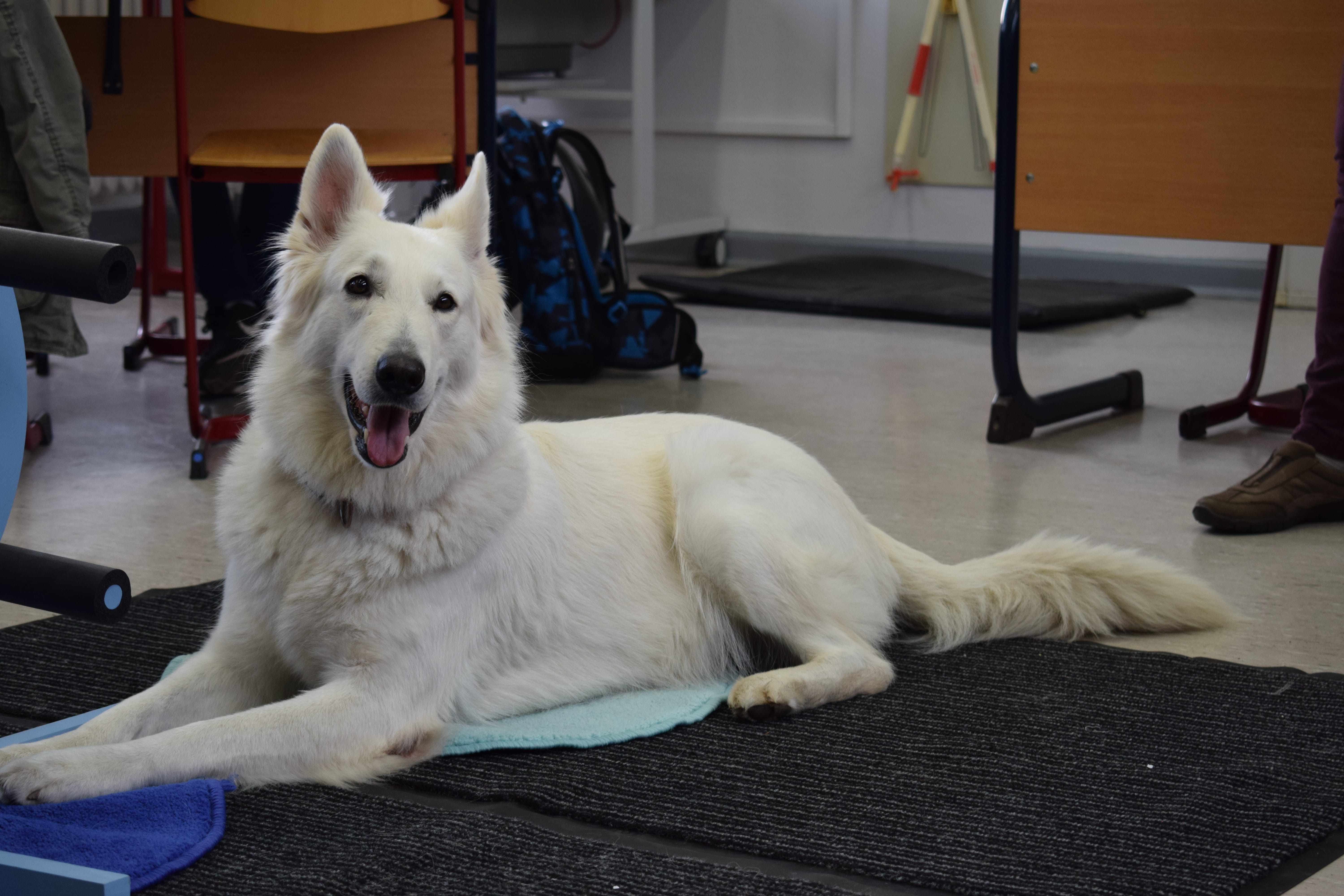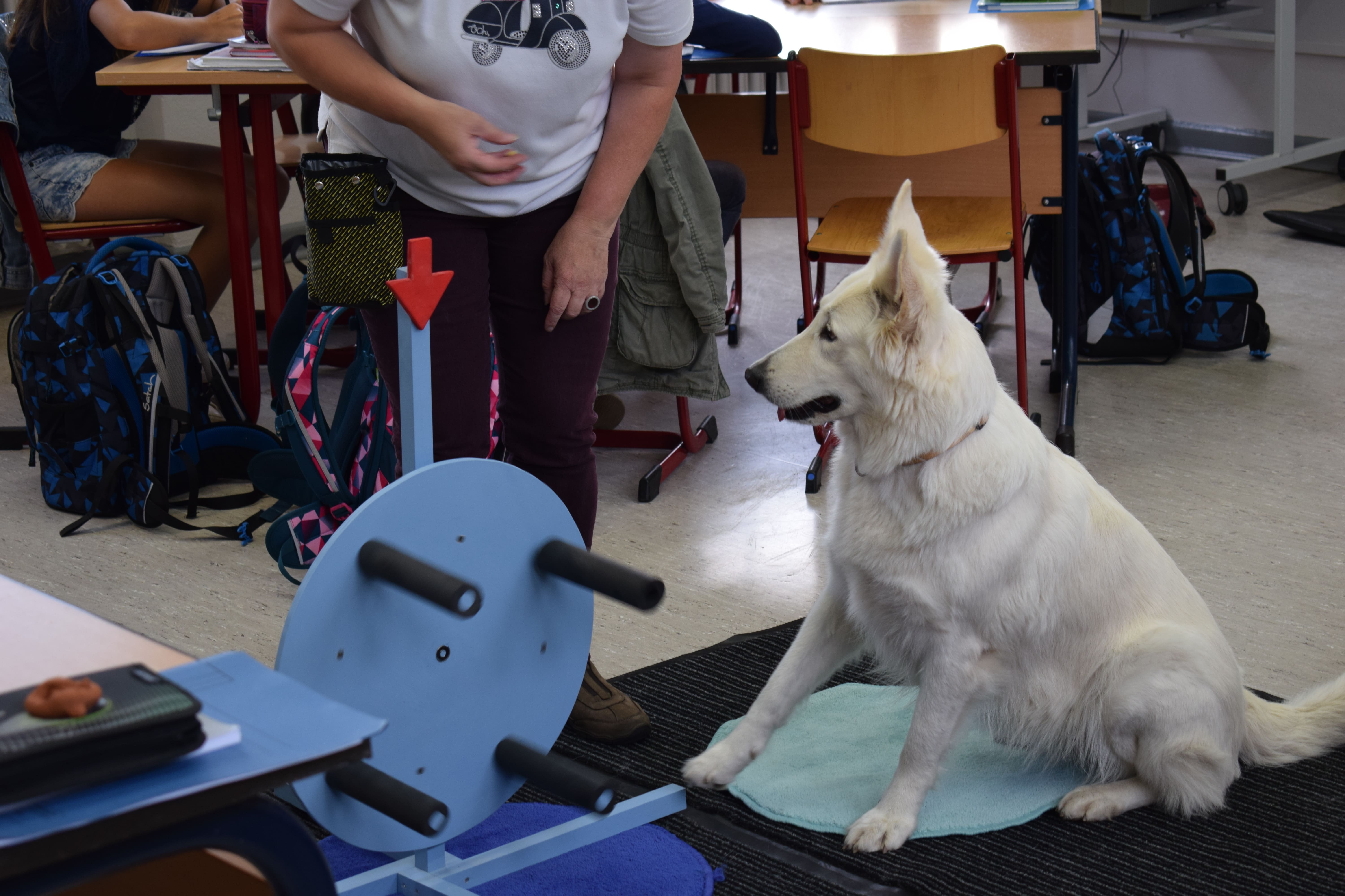Ich heiße Paula, bin 5 Jahre alt und ein Schweizer Schäferhund. Mein Frauchen und ich haben eine Ausbildung zum Schul- und Therapiehund absolviert. Seit einem Jahr kenne ich meine Klasse und unterstütze sie in NaWi und Mathematik. Englisch haben wir auch schon mal gemacht. Besonders im sozialen Bereich konnte die Klasse 5d (jetzt 6d) viel lernen.