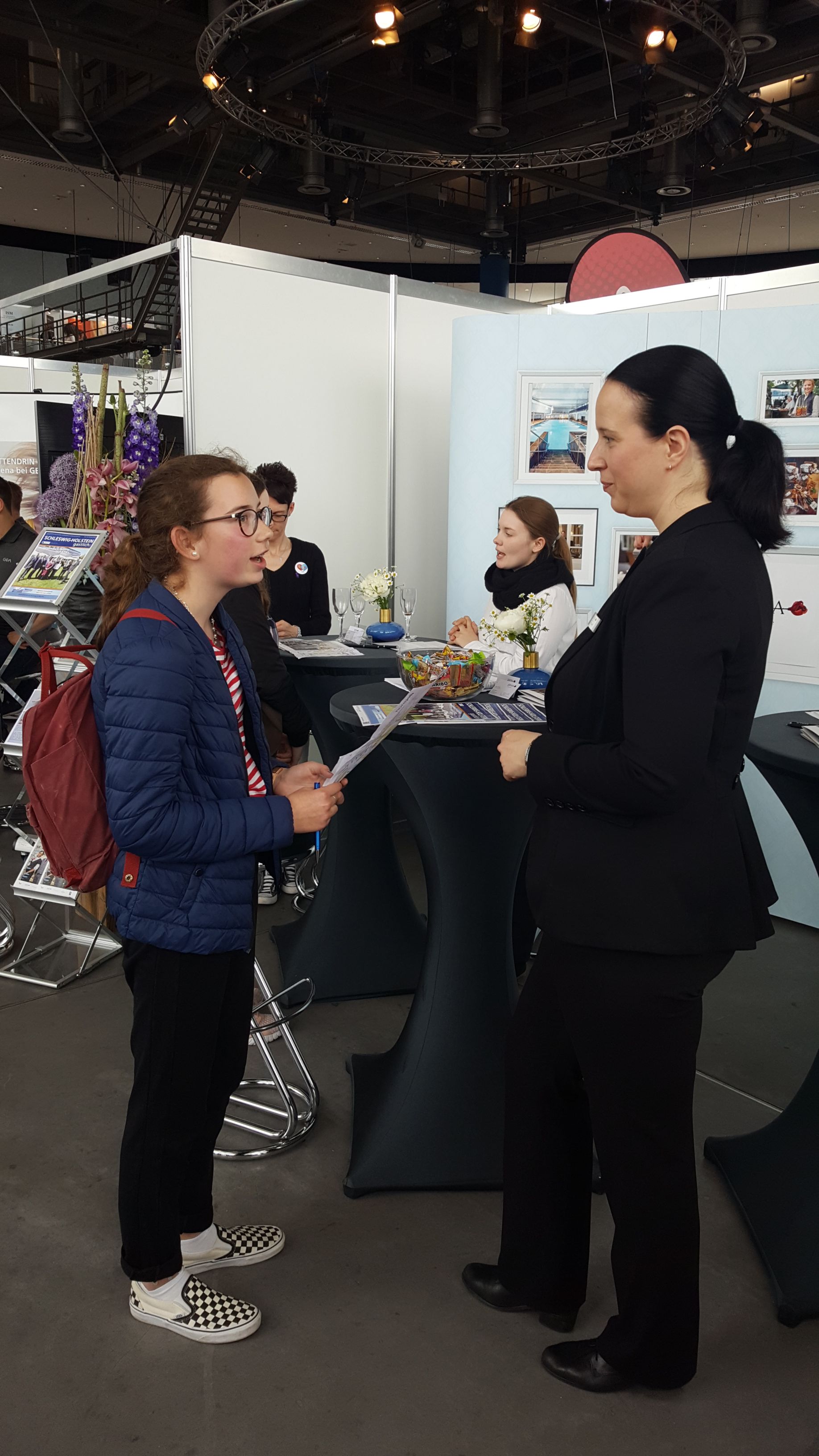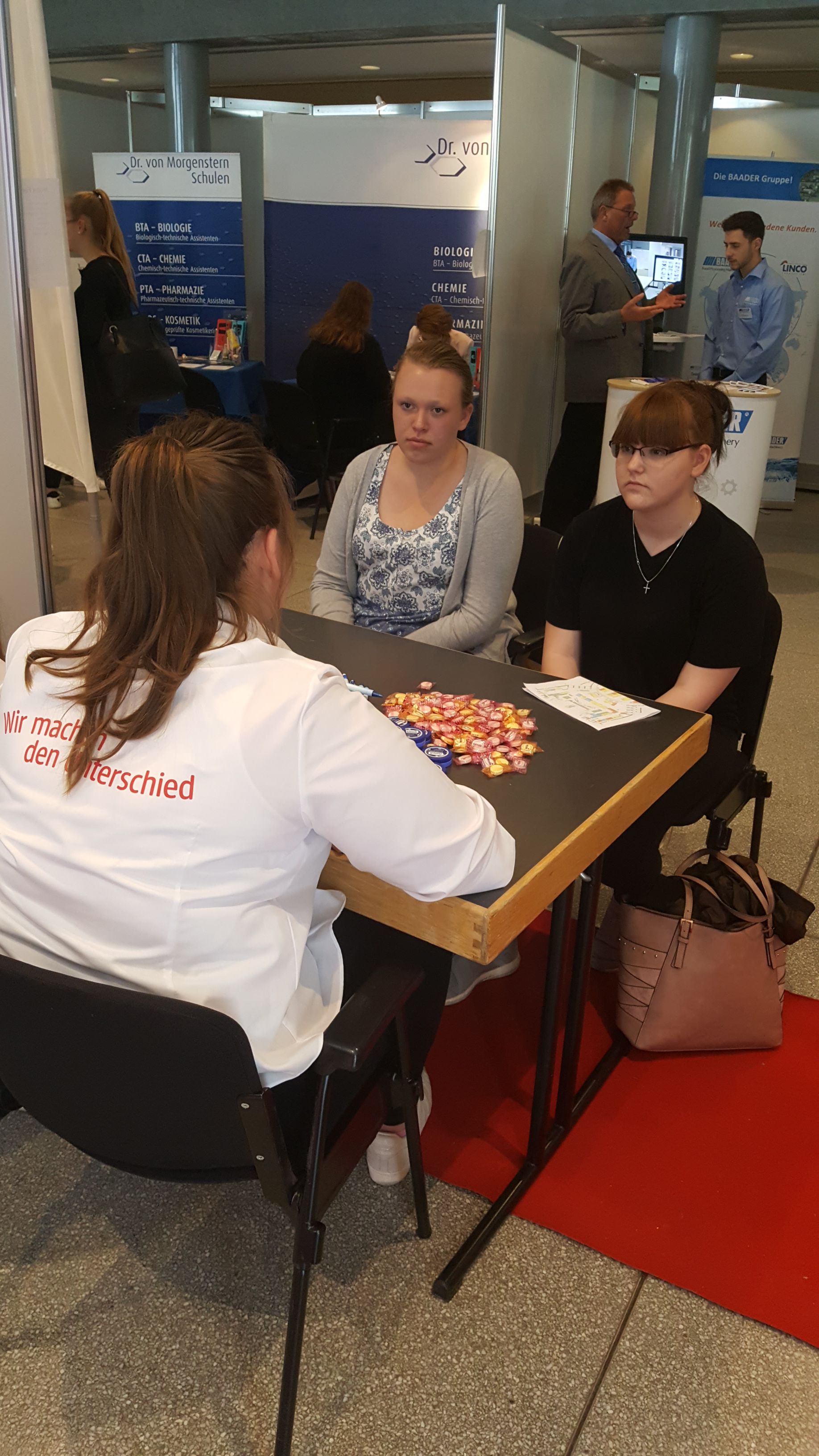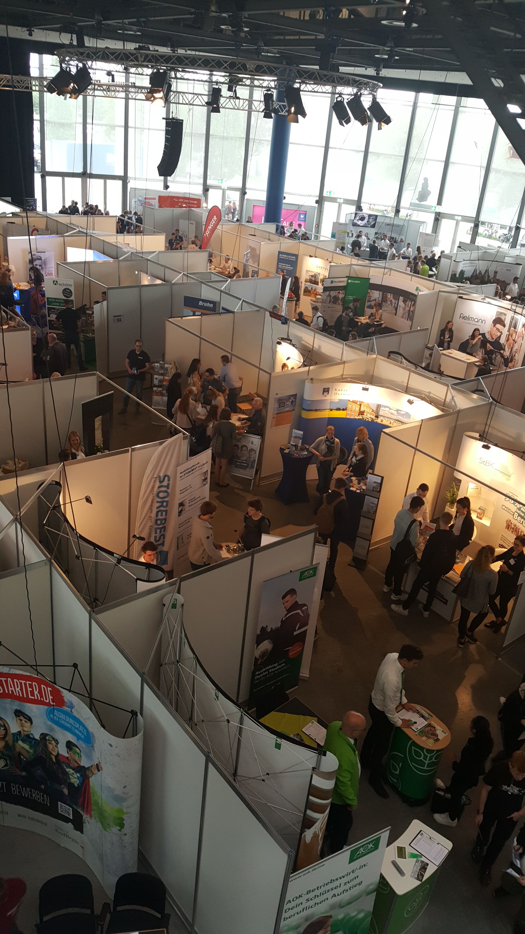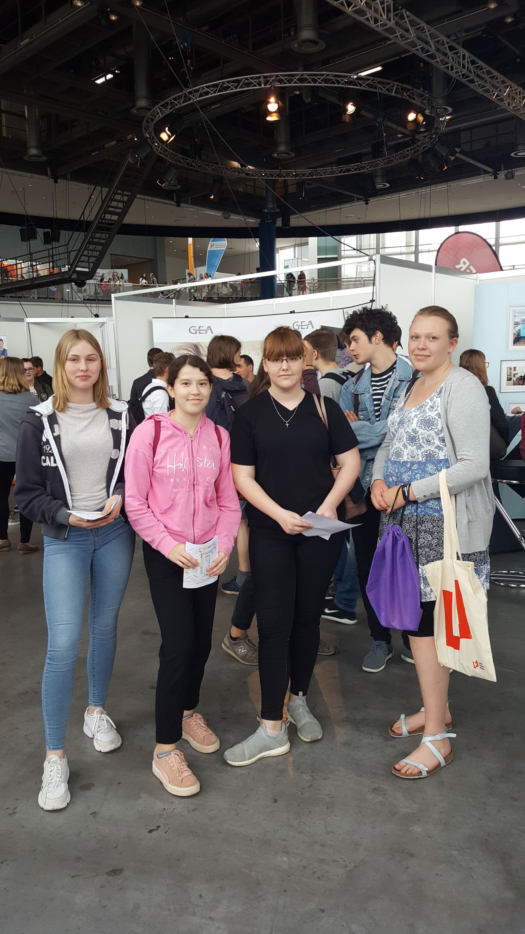 Bei aller Aufregung, die vorher zu spüren war, waren sich nachher alle einig, dass diese Messe eine gute Möglichkeit bietet, bereits in der 9. Klasse in persönlichen Gesprächen Kontakt mit potentiellen zukünftigen Arbeitgebern und Kollegen aufzunehmen. Ein bisschen haben diese Gespräche auch die Angst vor einem Vorstellungsgespräch genommen, denn es war spürbar, dass die Betriebe sich auf die jungen Leute freuen!