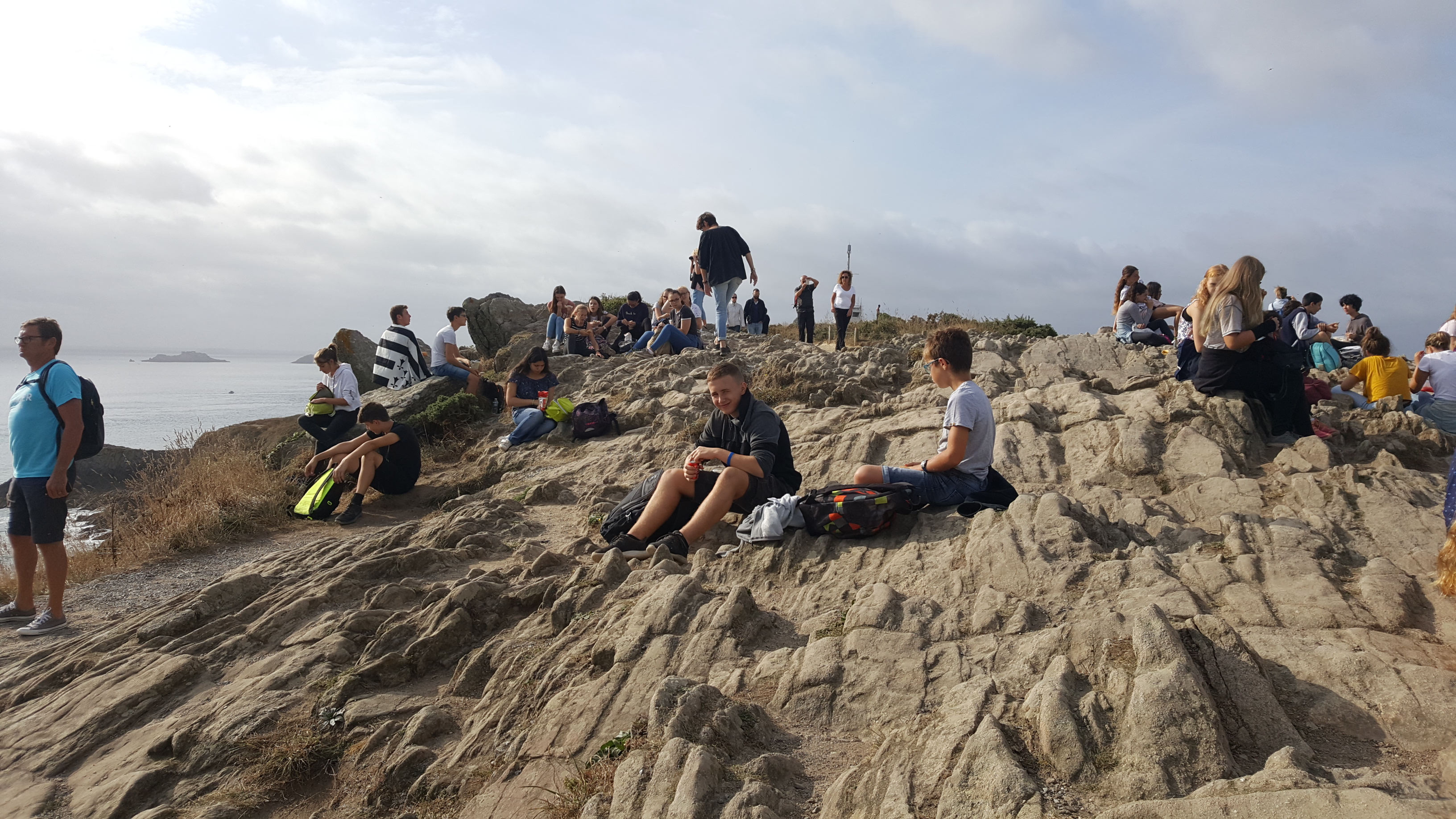 Als uns am Dienstag der Bus kurz vor der Pointe du Grouin rausgelassen hat und wir den Rest des Weges zu Fuß laufen mussten, waren wir zunächst wenig begeistert, aber die Aussicht auf den Ärmelkanal war atemberaubend! An der Pointe du Grouin angekommen, sind wir auf den Felsen herumgeklettert und haben viel Spaß gehabt. Anschließend haben wir die Innenstadt von Saint Malo besichtigt, die man auf einer alten Stadtmauer komplett zu Fuß umrunden konnte.
