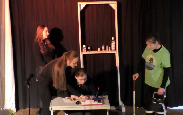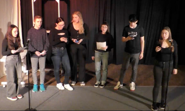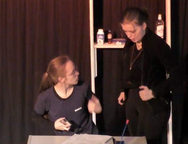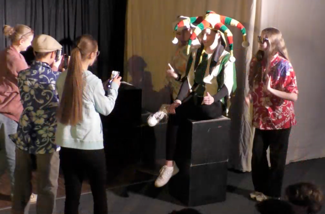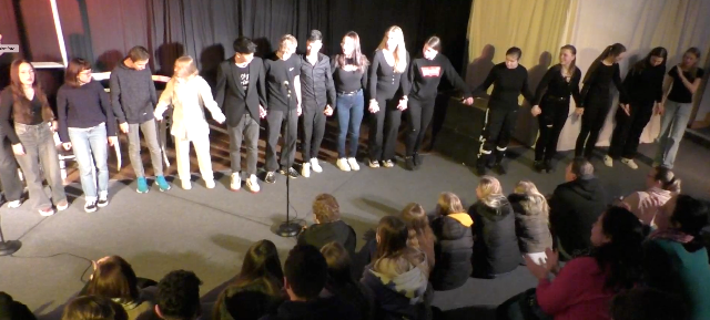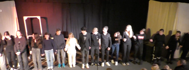 Am Vormittag hatten die Schauspielerinnen und Schauspieler ihr Stück in zwei Schüleraufführungen vor insgesamt 11 Schulklassen gespielt.