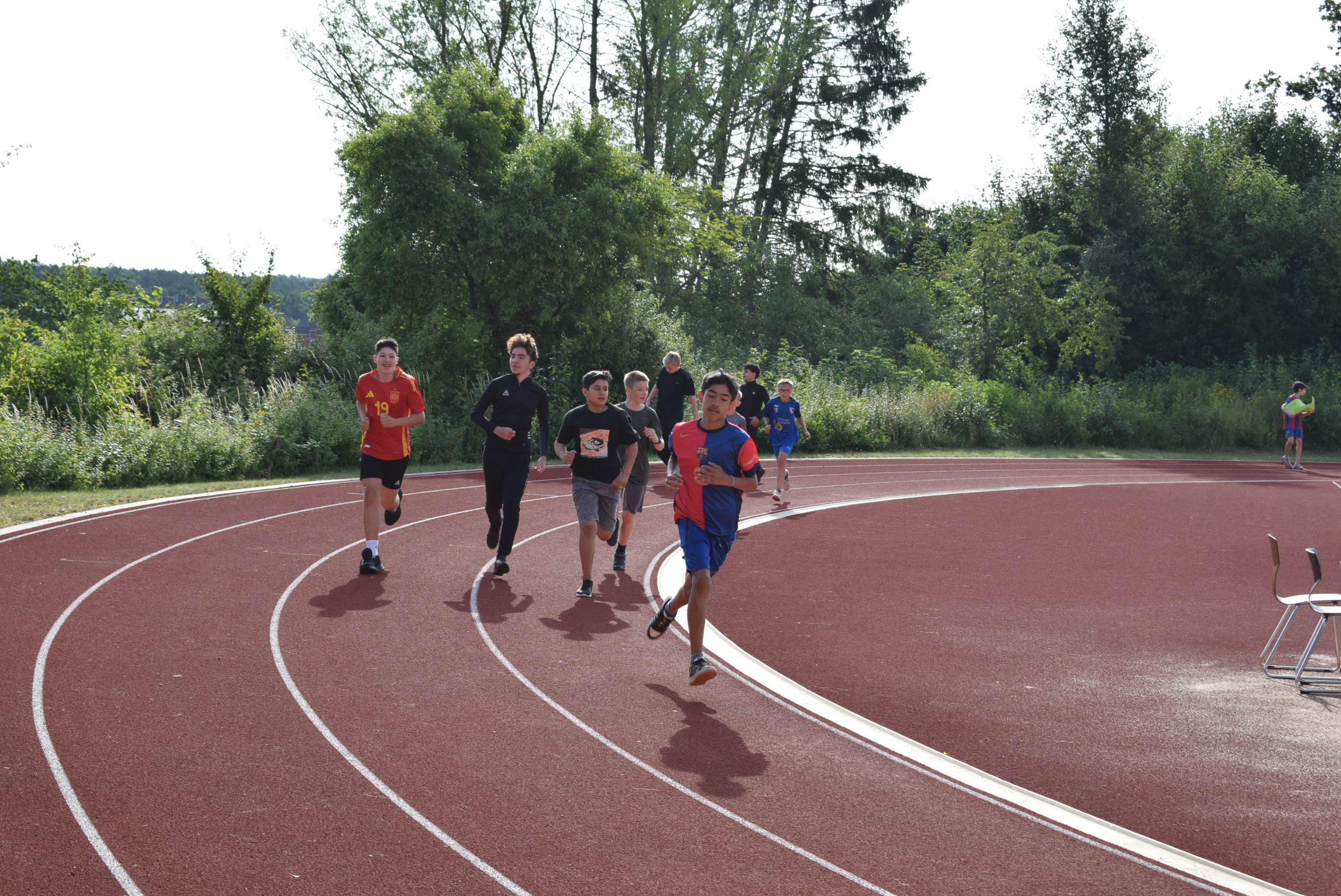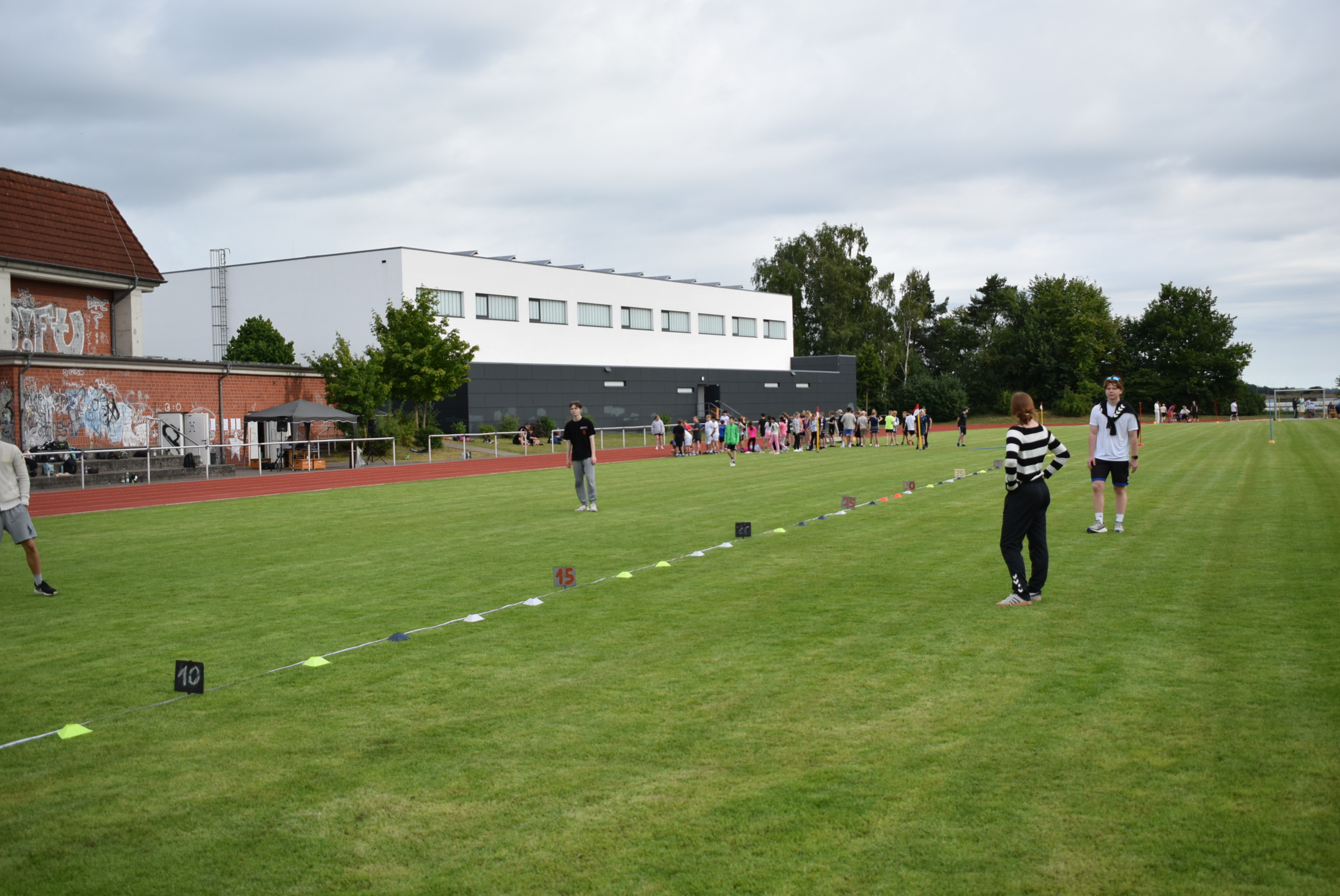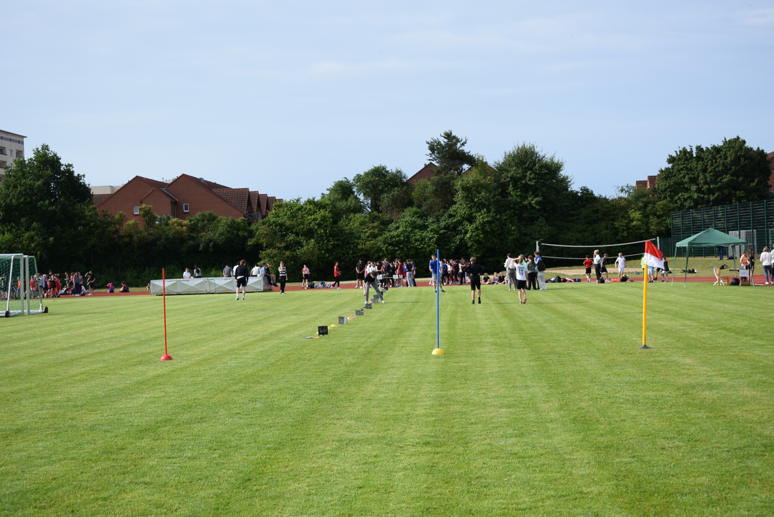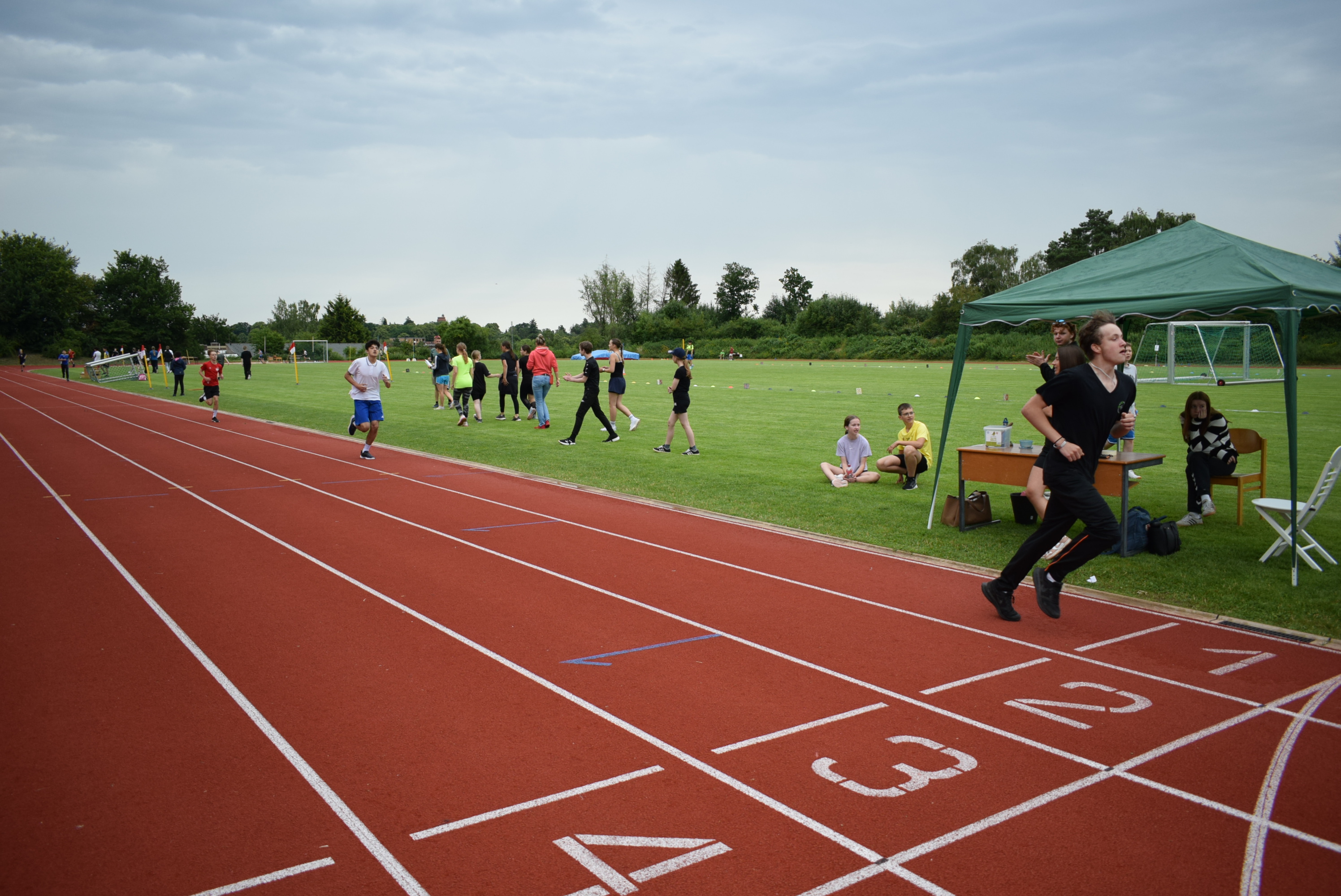 Leider stand das Wetter dieses Jahr nicht auf unserer Seite. Gegen Mittag waren starke Regenschauer angesagt, sodass im Jahrgang 8-9 die Staffeln und Ausdauerwettkämpfe vorgezogen wurden. So konnten zumindest die beliebten Klassenwettkämpfe stattfinden und die hart umkämpften Titel verteilt werden.