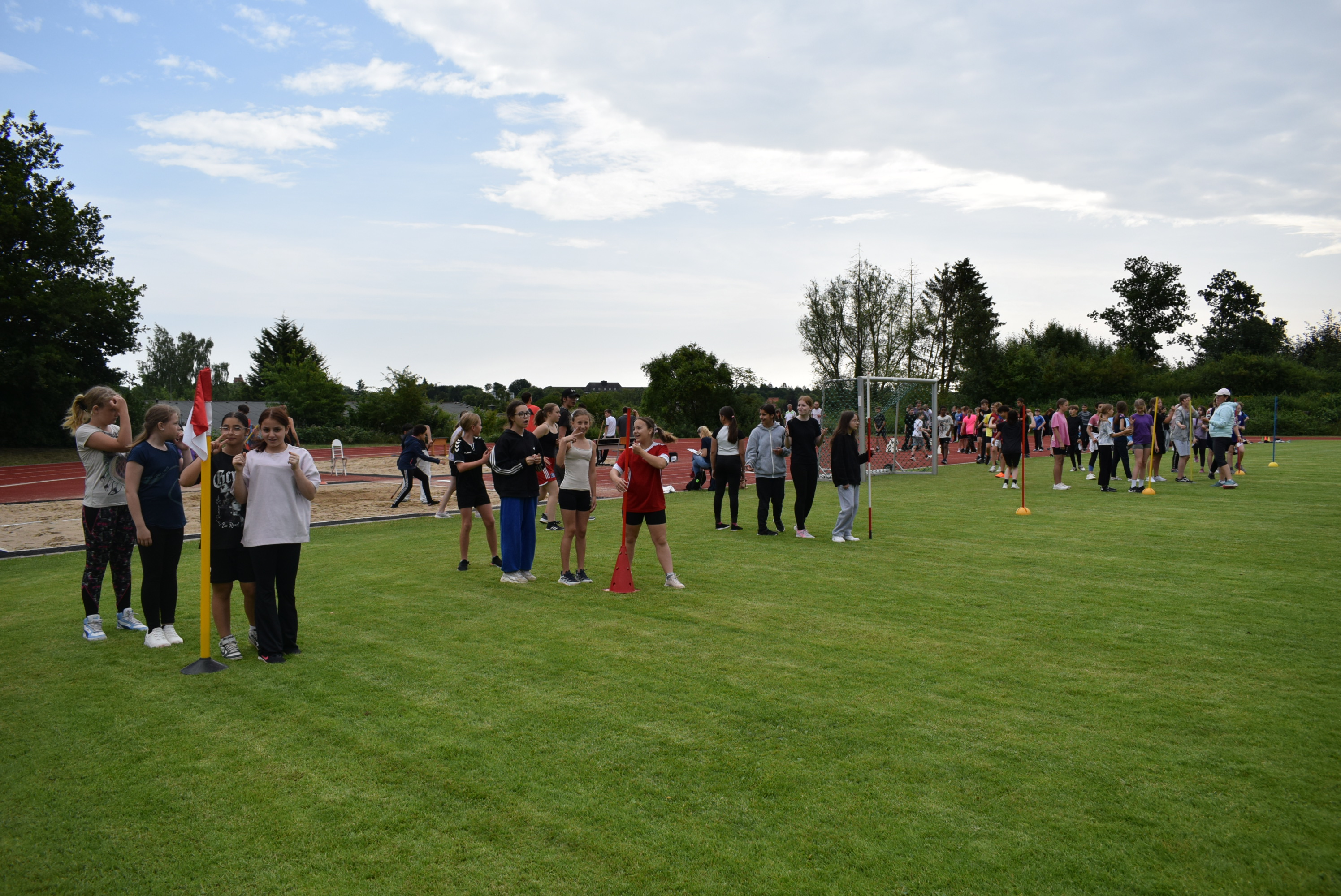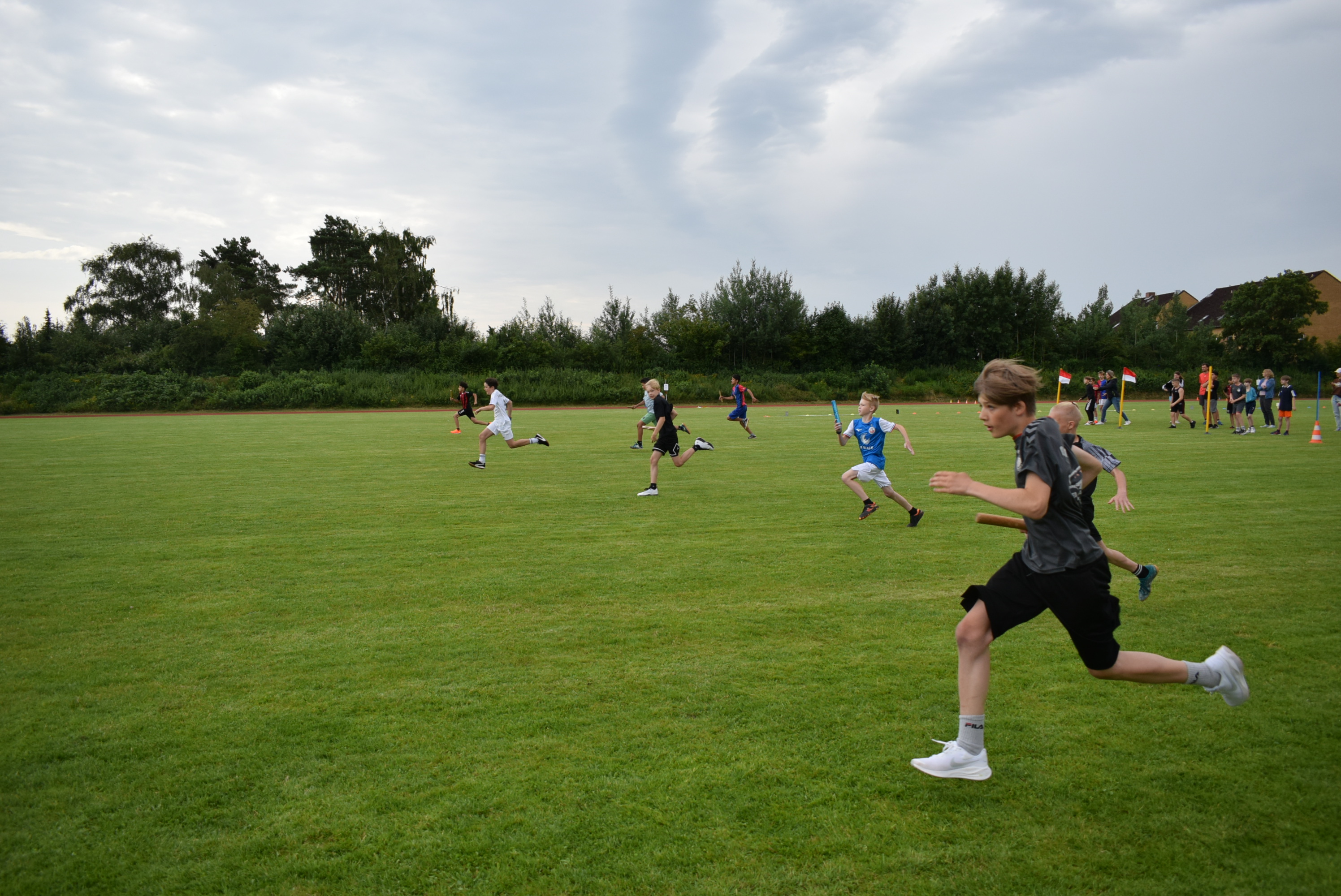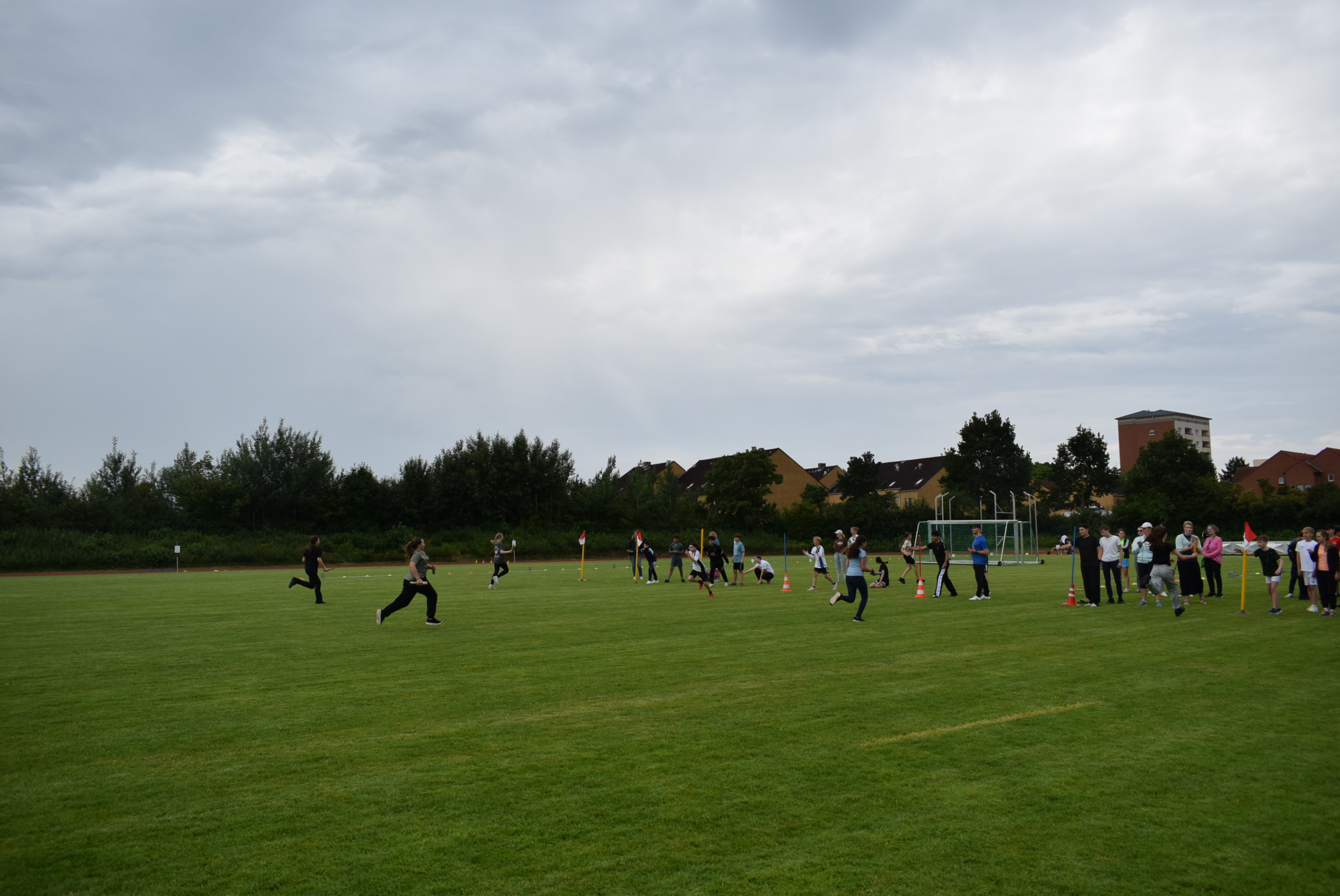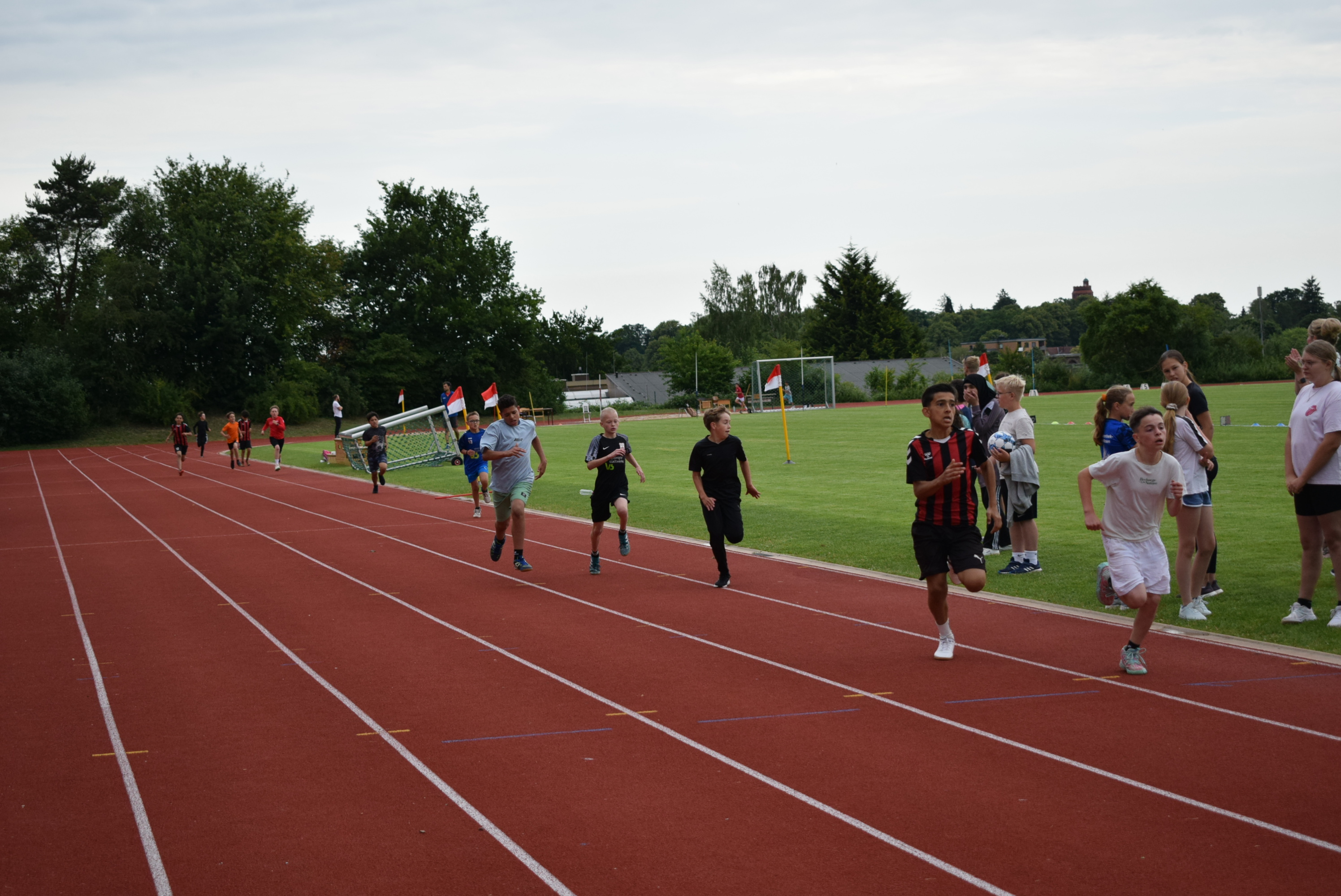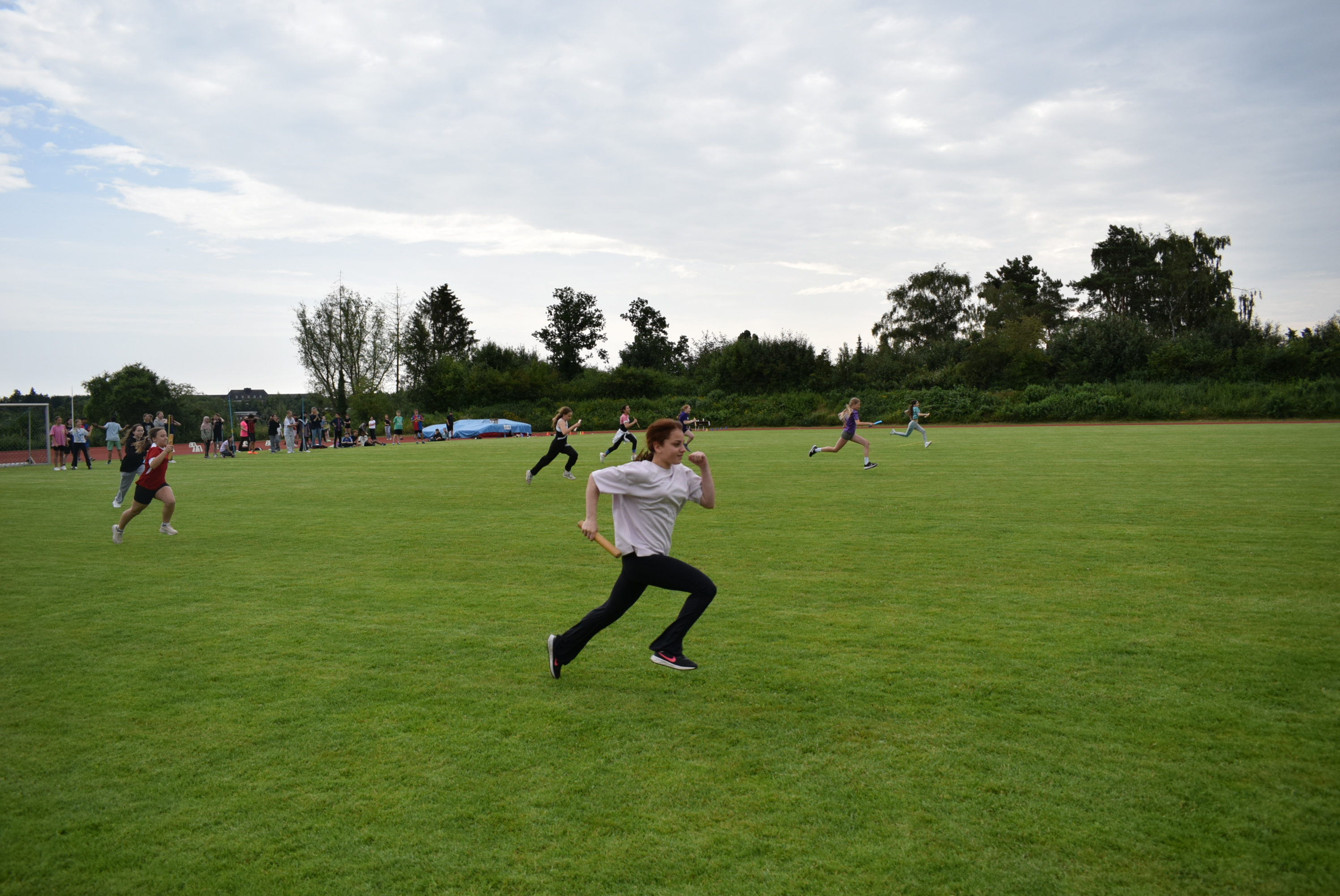 Dabei wurden die Klassen von ihrem/ihrer Klassenlehrer/in durch die Disziplinen begleitet und unterstützt. Im Anschluss an den Dreikampf wurden in den Jahrgängen 5-7 jeweils vier Mädchen und vier Jungen ausgewählt, um ihre Klasse bei den Pendelstaffeln zu vertreten. Jeder Staffelteilnehmer musste 50 m im sprinten, bevor der Staffelstab weitergegeben wurde.
