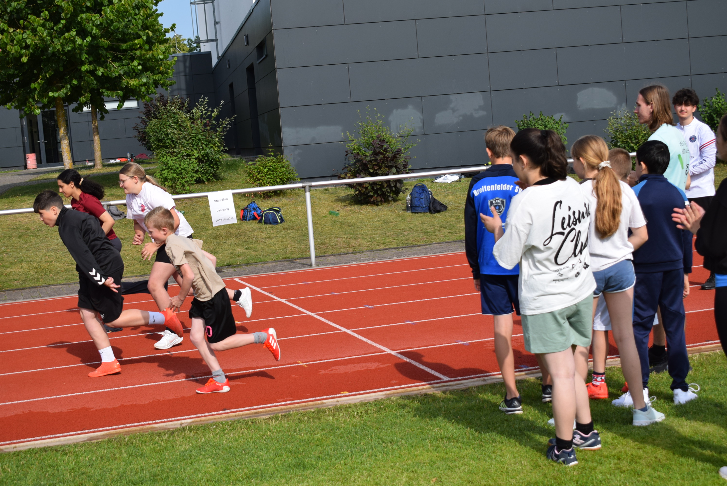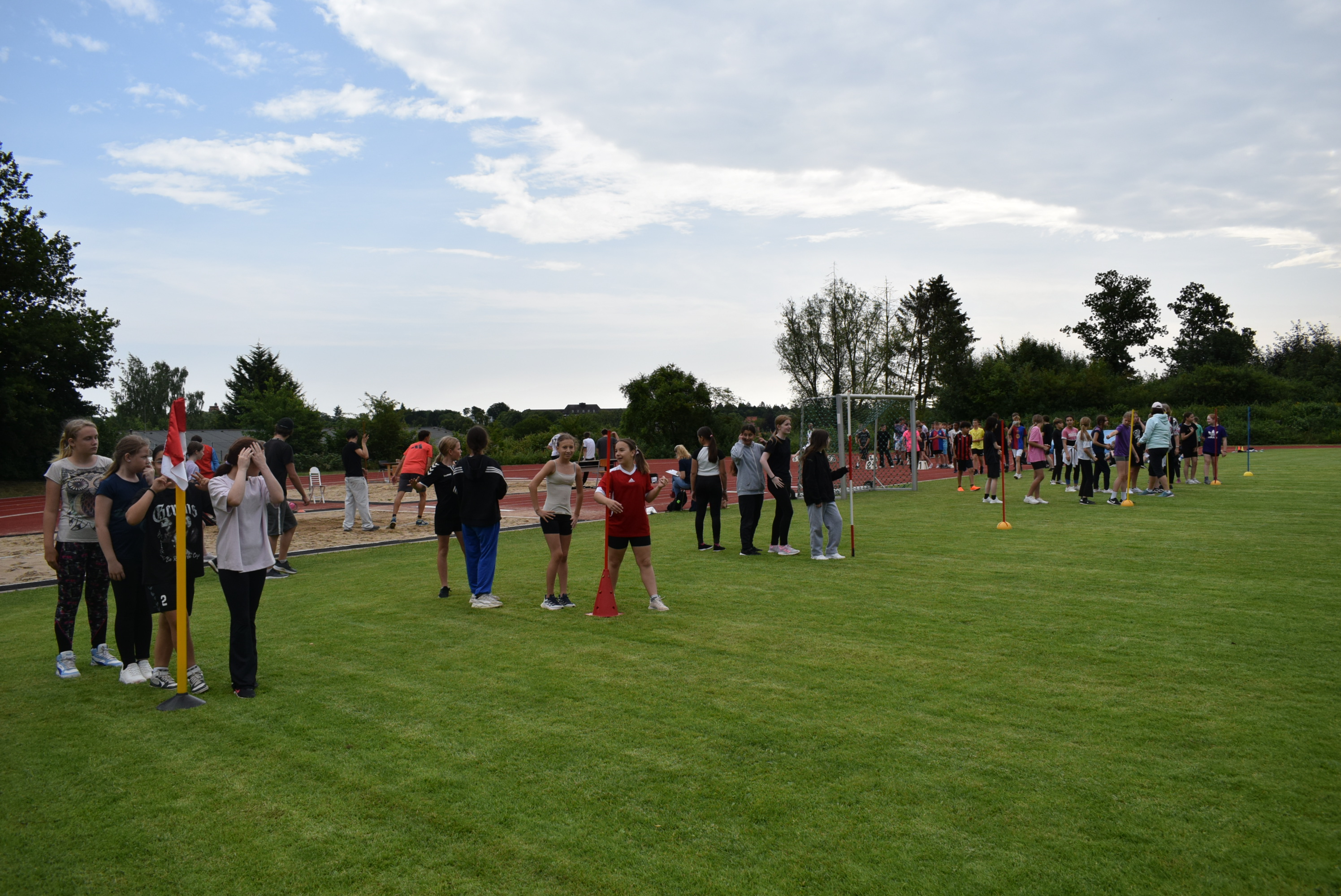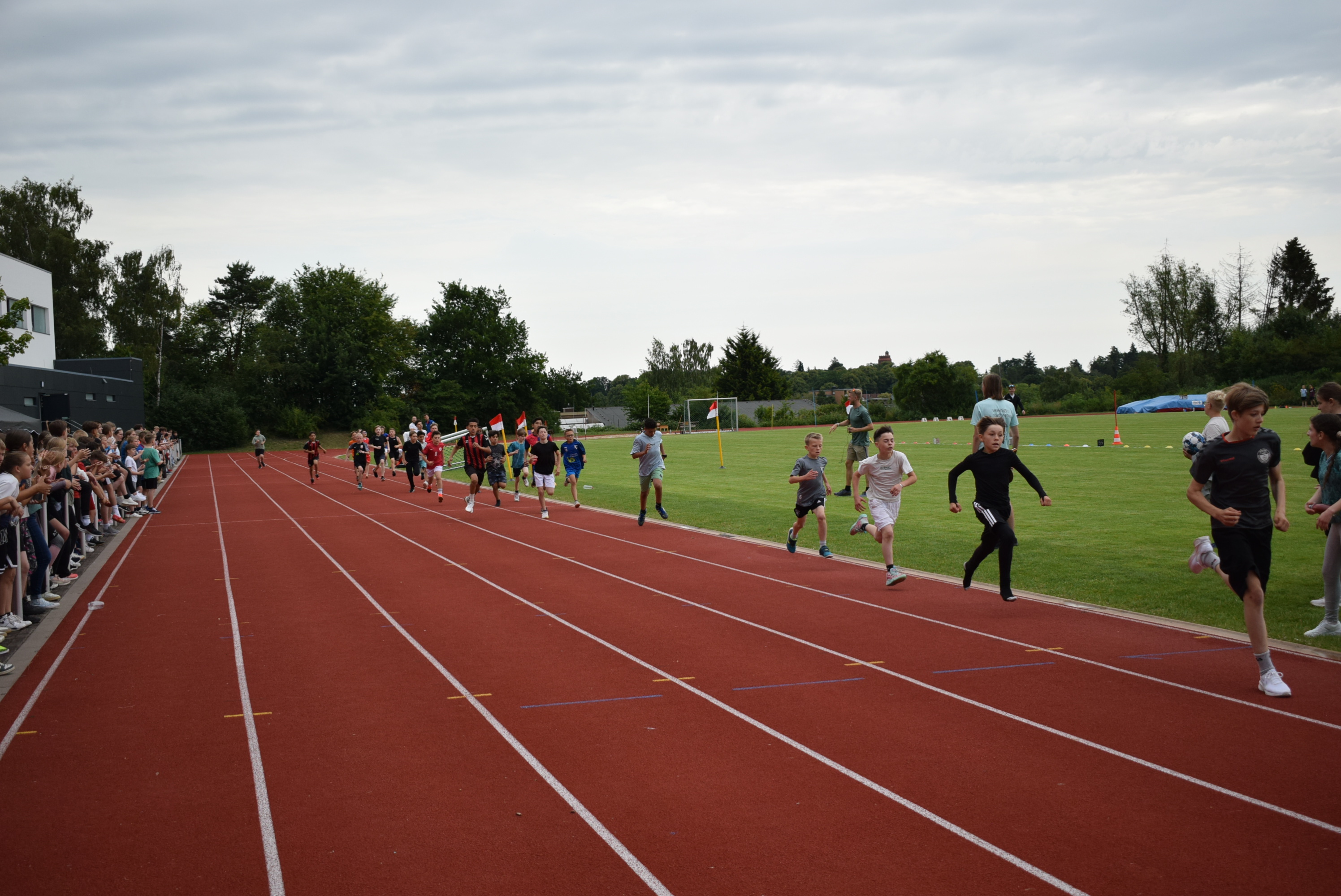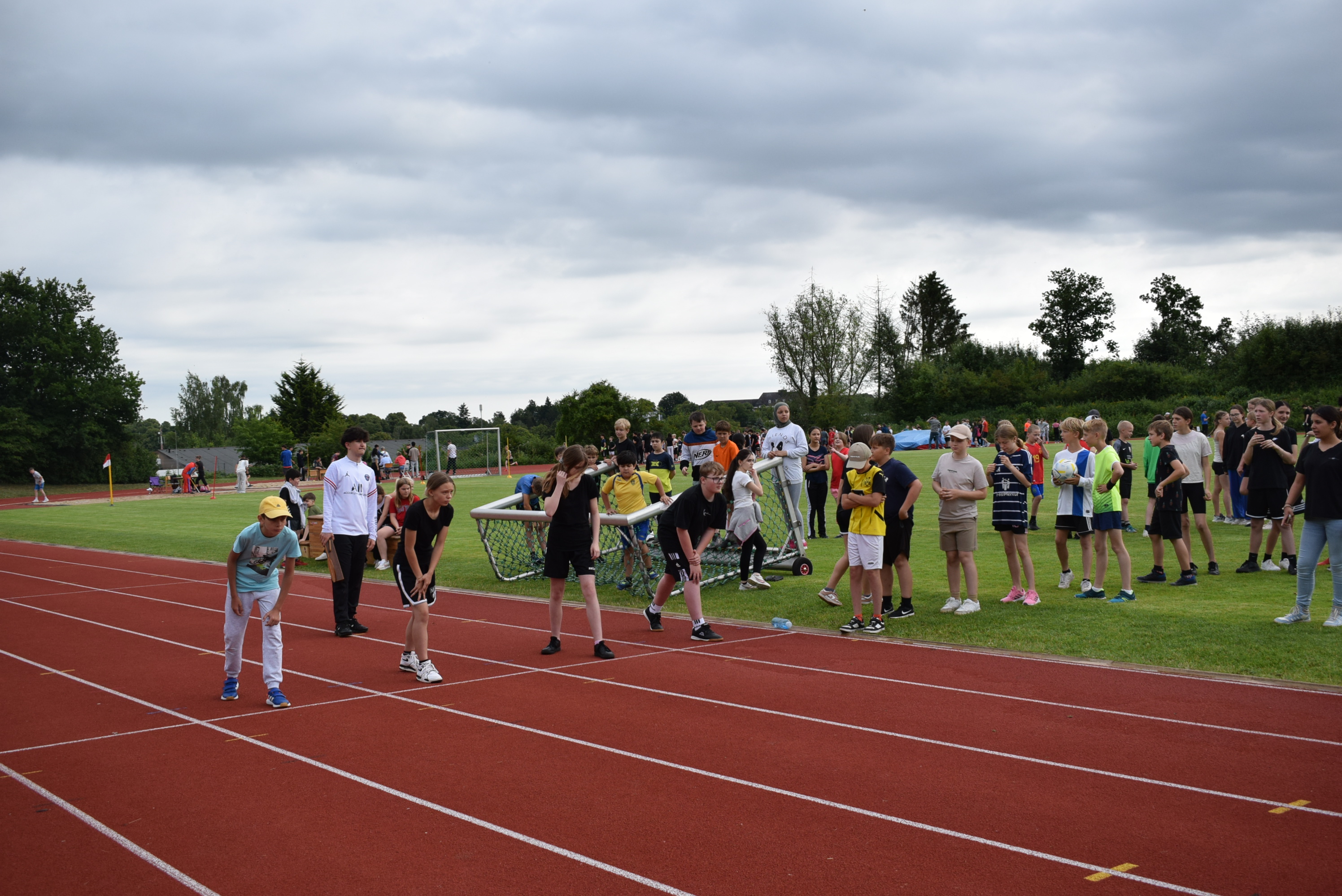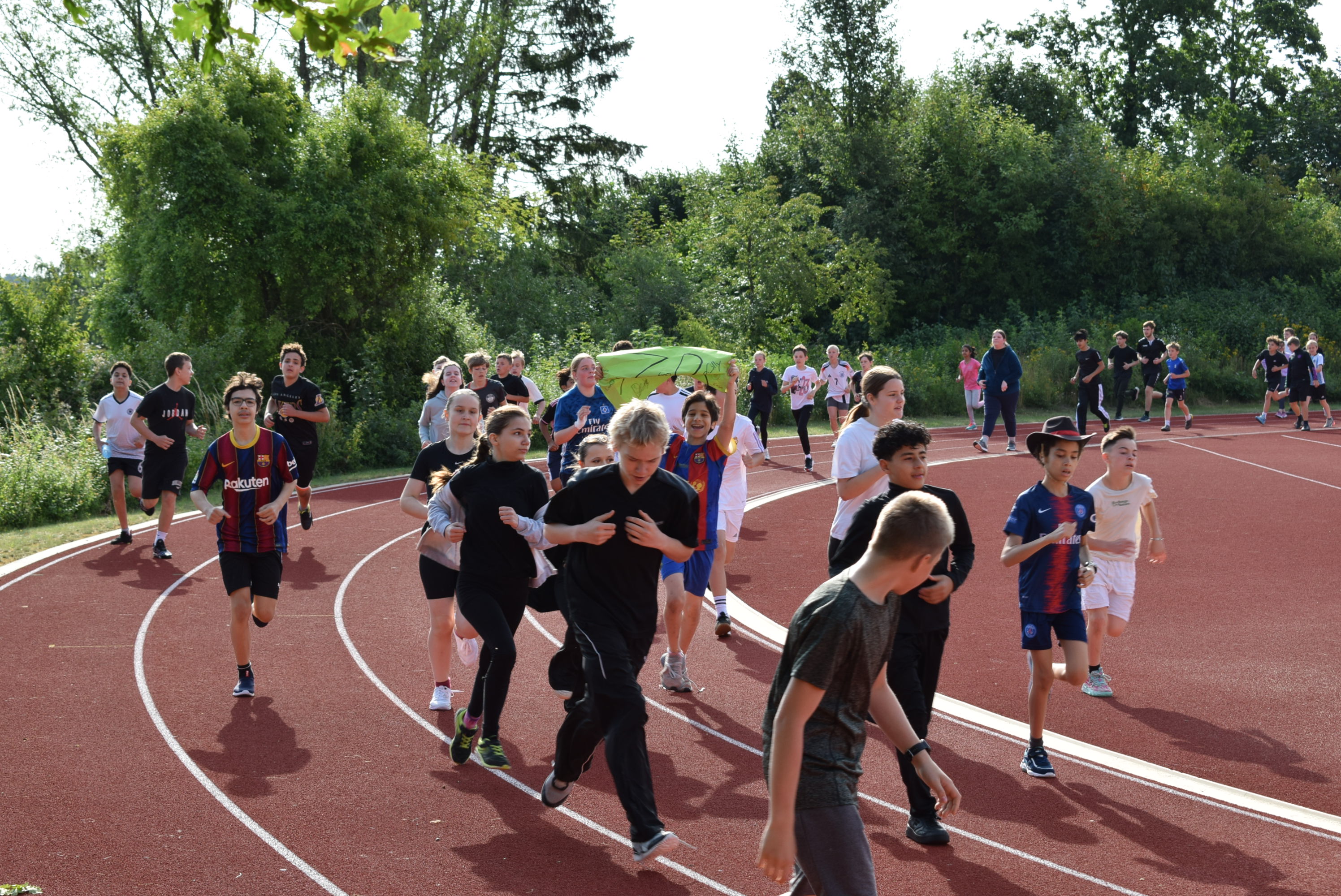 Dabei wurden die Klassen von ihrem/ihrer Klassenlehrer/in durch die Disziplinen begleitet und unterstützt. Im Anschluss an den Dreikampf wurden in den Jahrgängen 5-7 jeweils vier Mädchen und vier Jungen ausgewählt, um ihre Klasse bei den Pendelstaffeln zu vertreten. Jeder Staffelteilnehmer musste 50 m im sprinten, bevor der Staffelstab weitergegeben wurde.