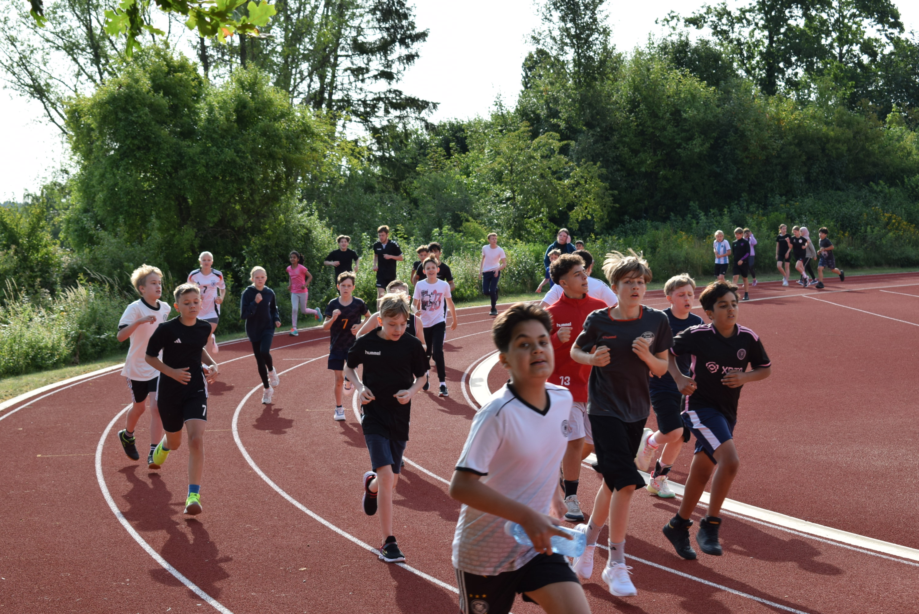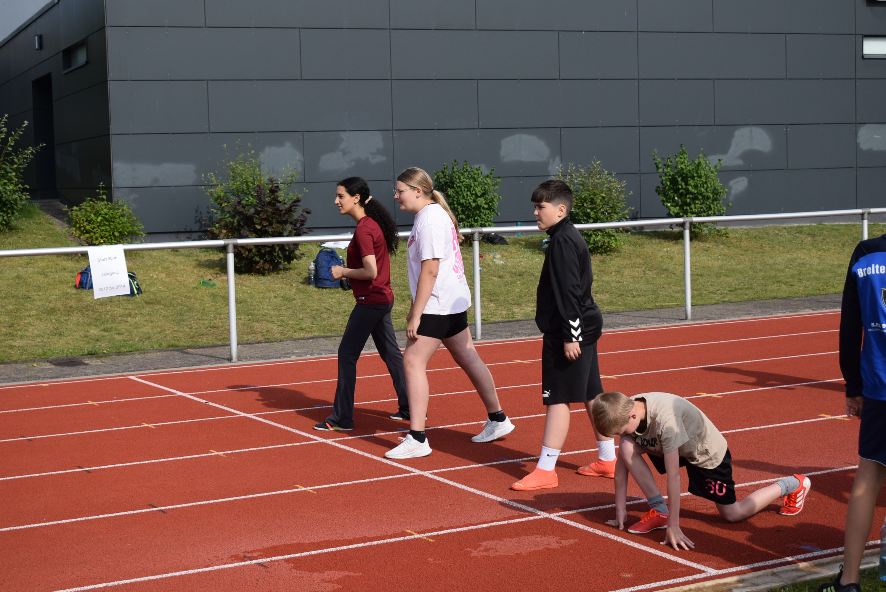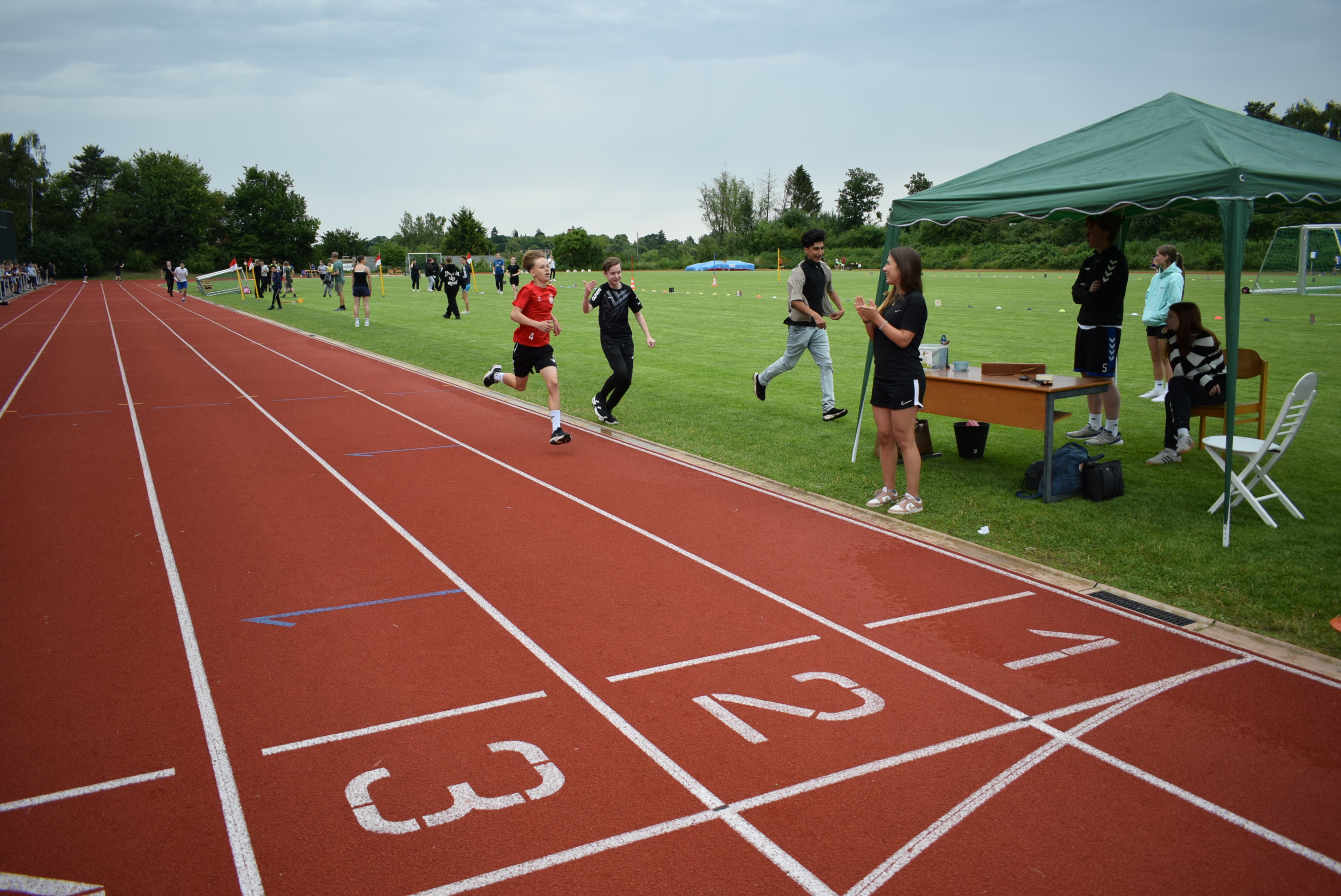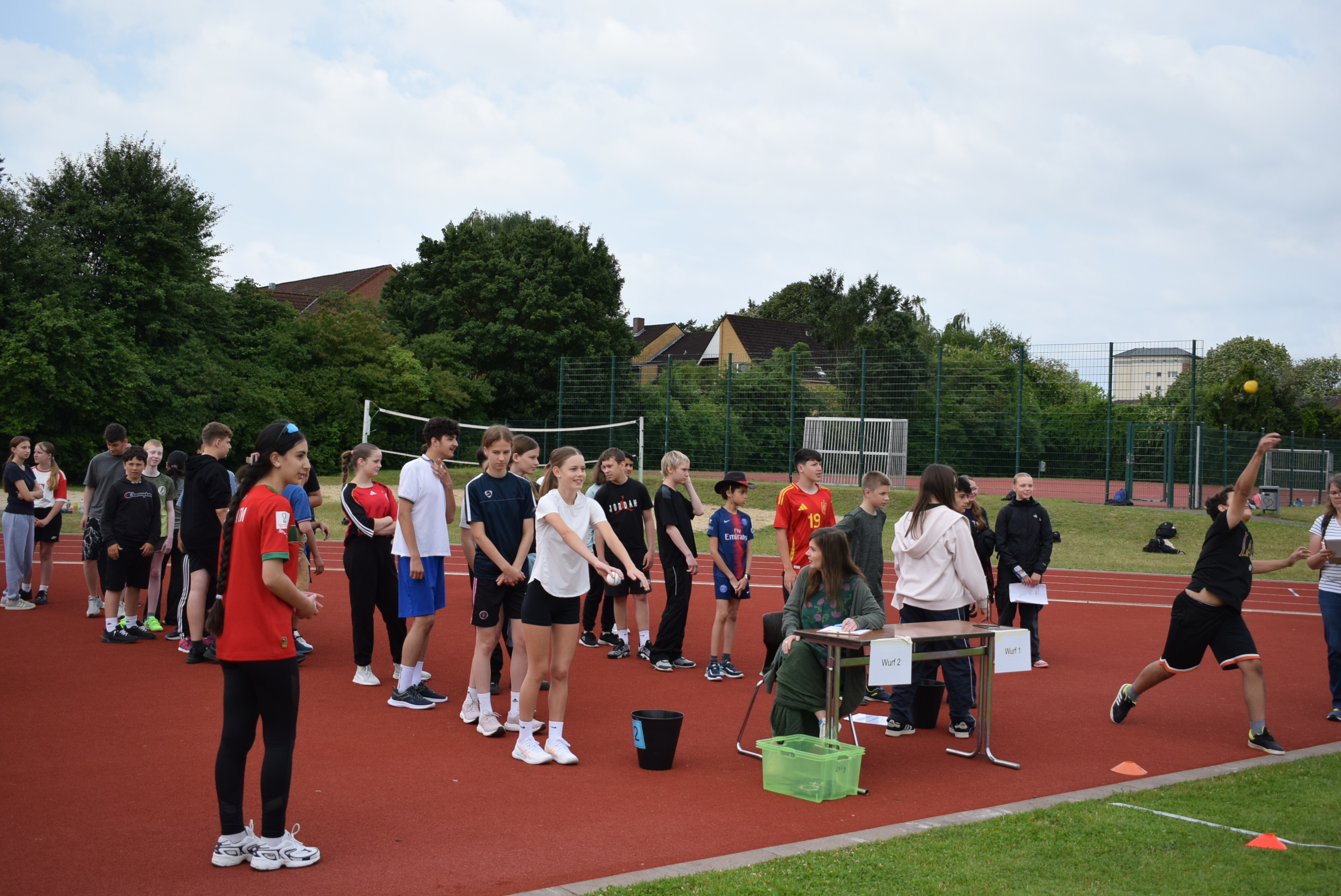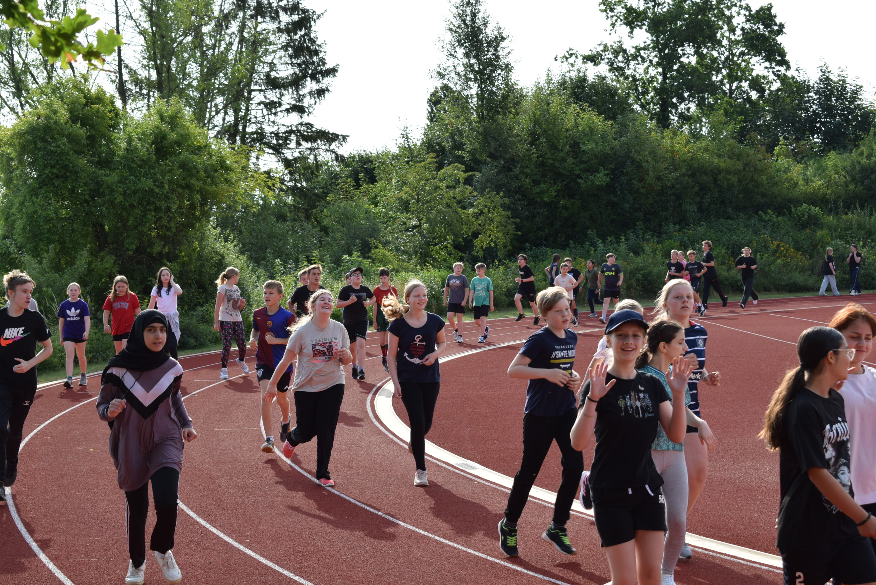 Dabei wurden die Klassen von ihrem/ihrer Klassenlehrer/in durch die Disziplinen begleitet und unterstützt. Im Anschluss an den Dreikampf wurden in den Jahrgängen 5-7 jeweils vier Mädchen und vier Jungen ausgewählt, um ihre Klasse bei den Pendelstaffeln zu vertreten. Jeder Staffelteilnehmer musste 50 m im sprinten, bevor der Staffelstab weitergegeben wurde.