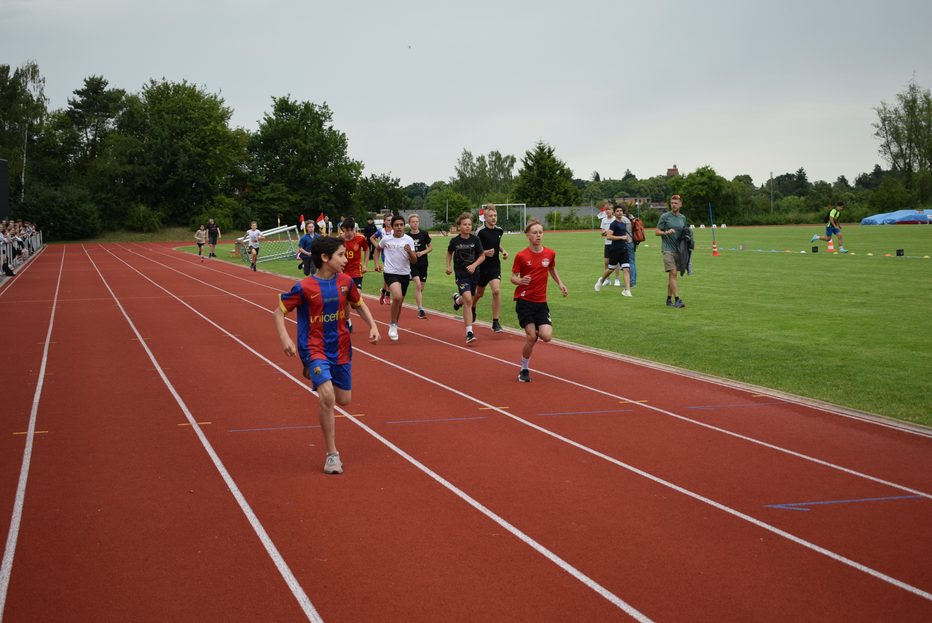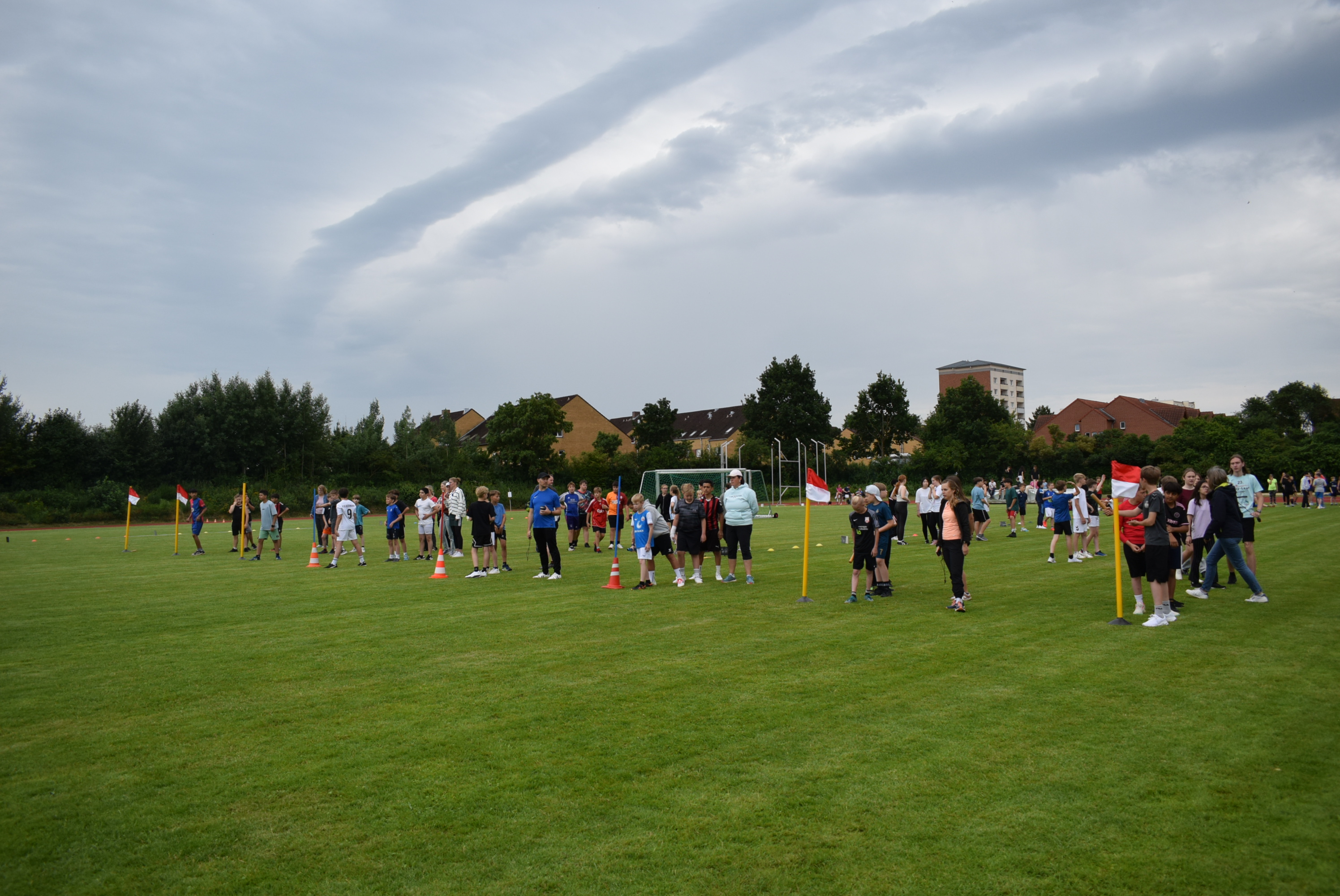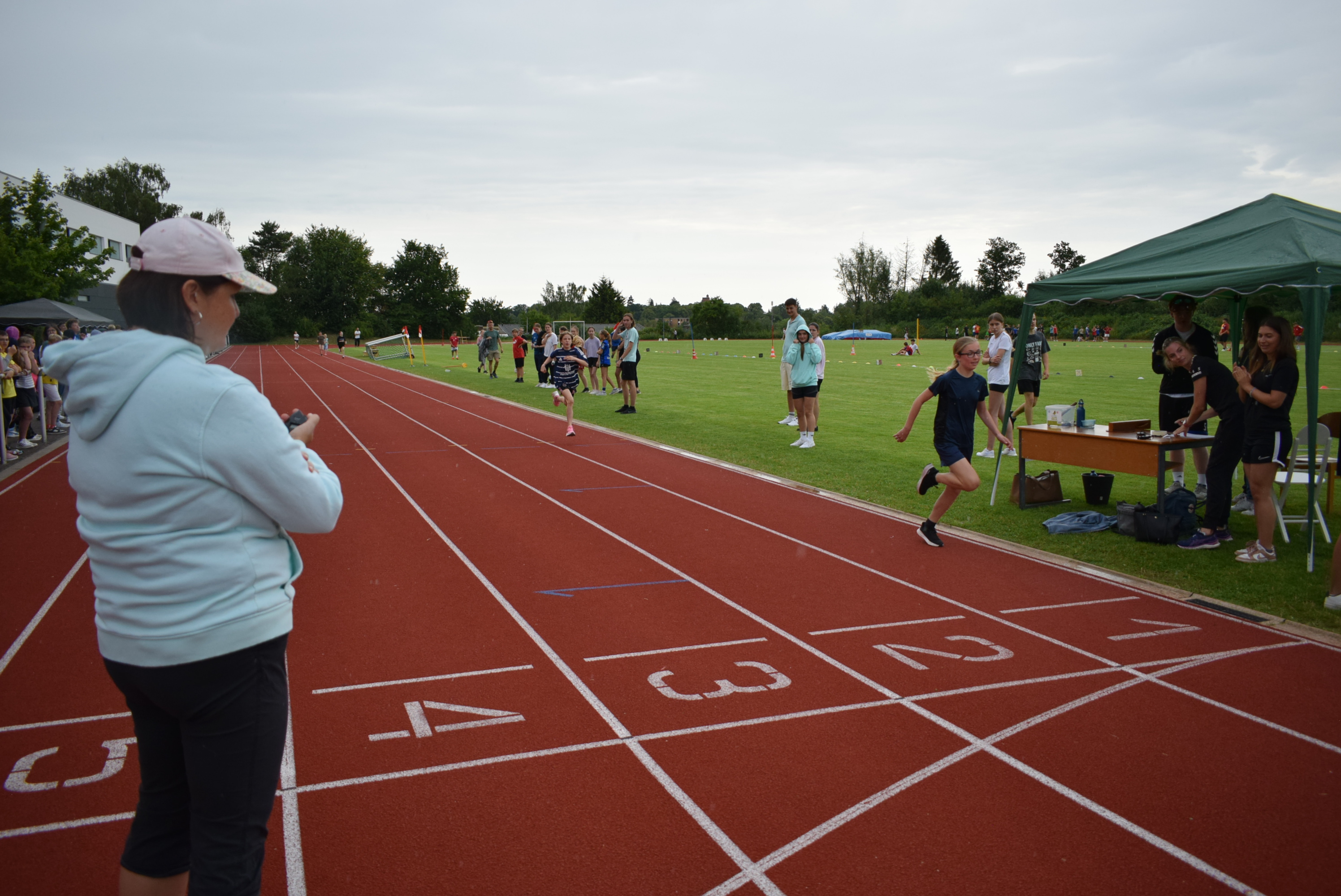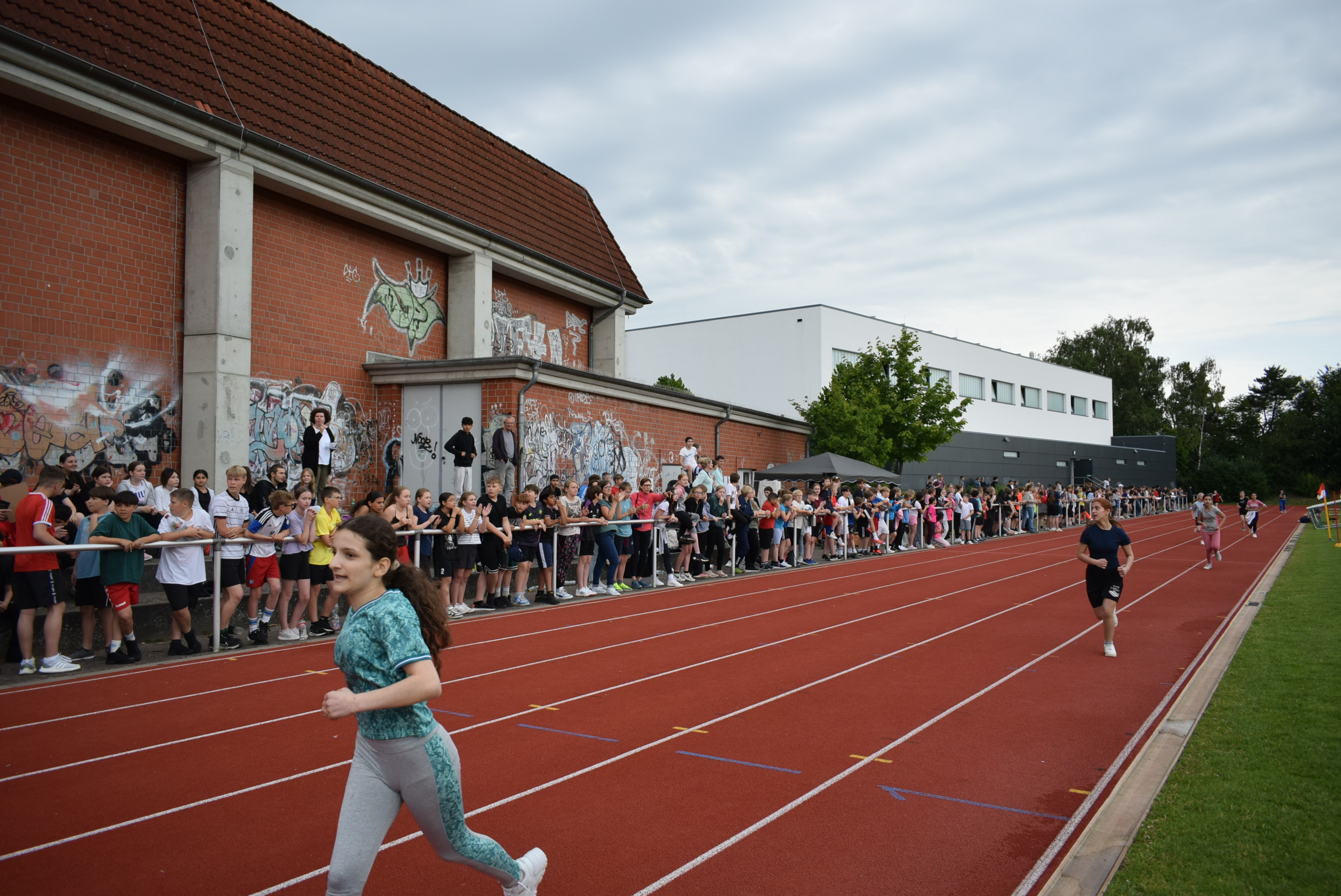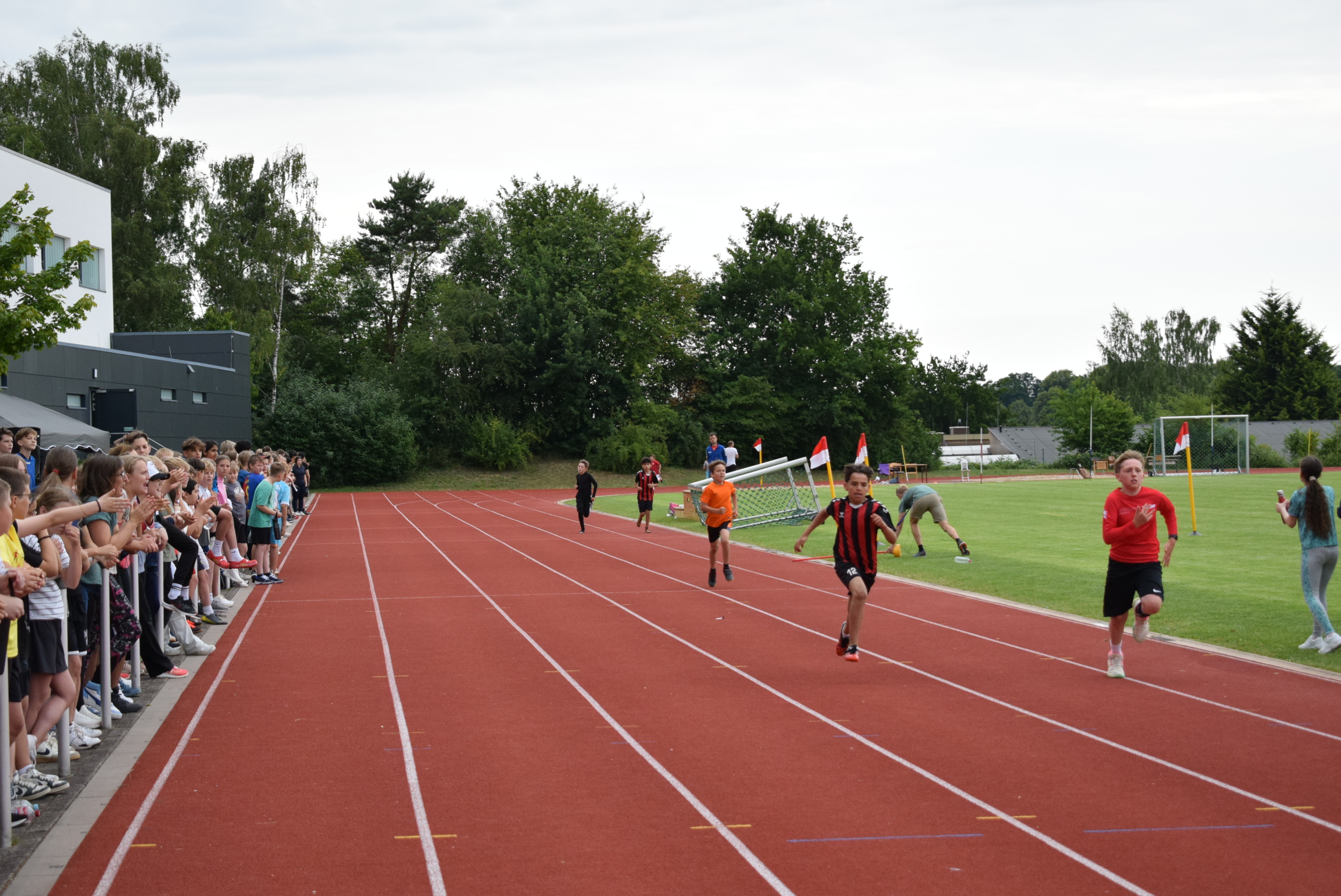 Dabei wurden die Klassen von ihrem/ihrer Klassenlehrer/in durch die Disziplinen begleitet und unterstützt. Im Anschluss an den Dreikampf wurden in den Jahrgängen 5-7 jeweils vier Mädchen und vier Jungen ausgewählt, um ihre Klasse bei den Pendelstaffeln zu vertreten. Jeder Staffelteilnehmer musste 50 m im sprinten, bevor der Staffelstab weitergegeben wurde.
