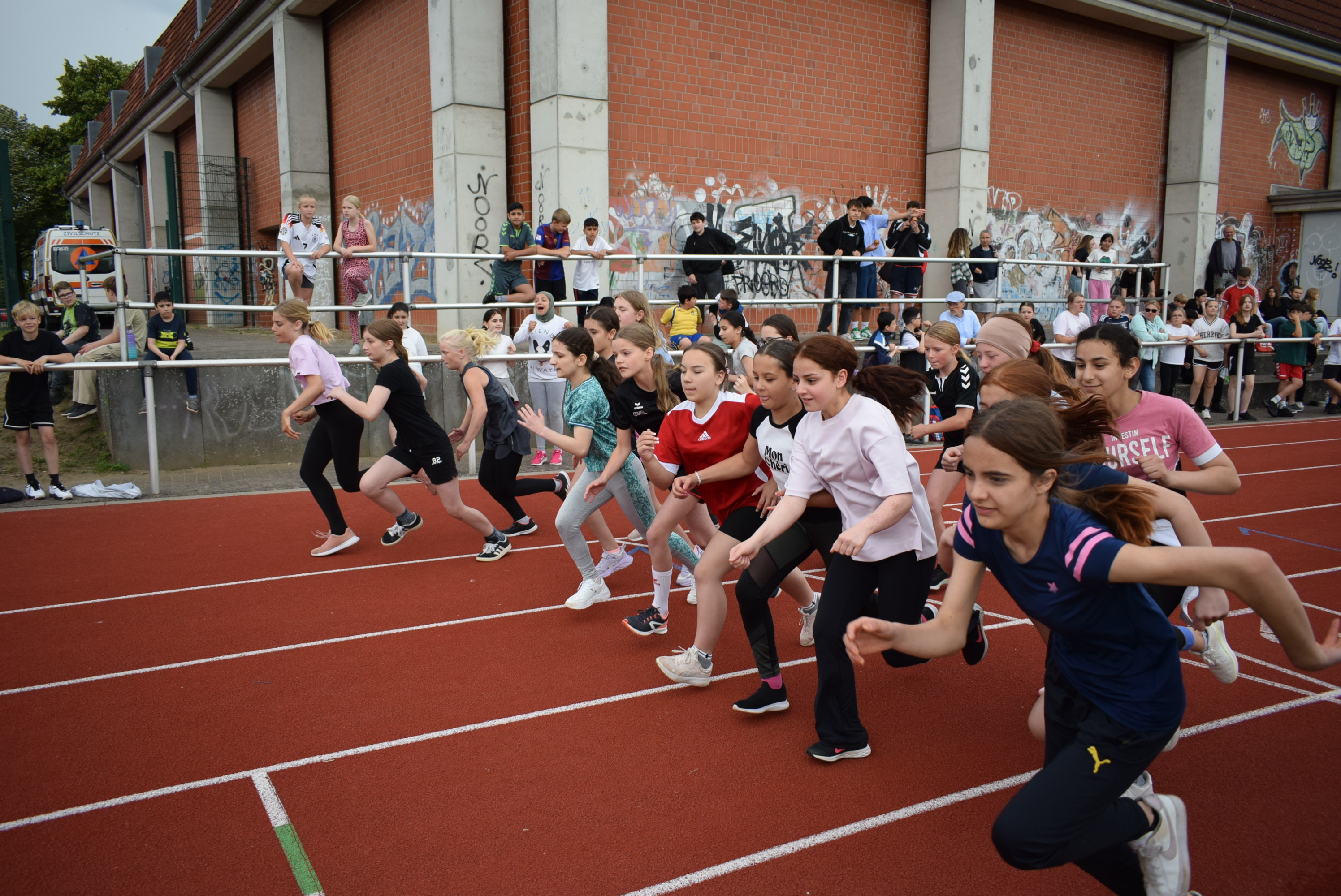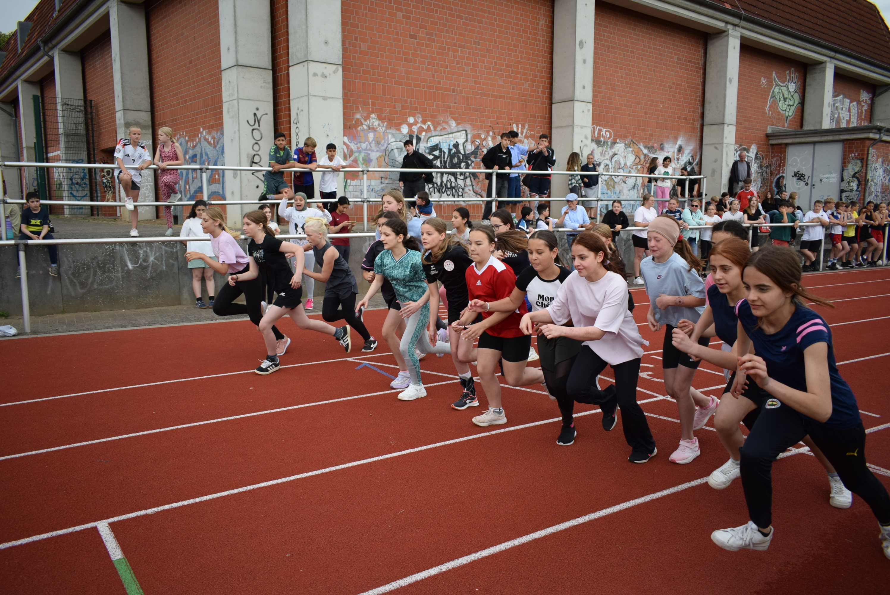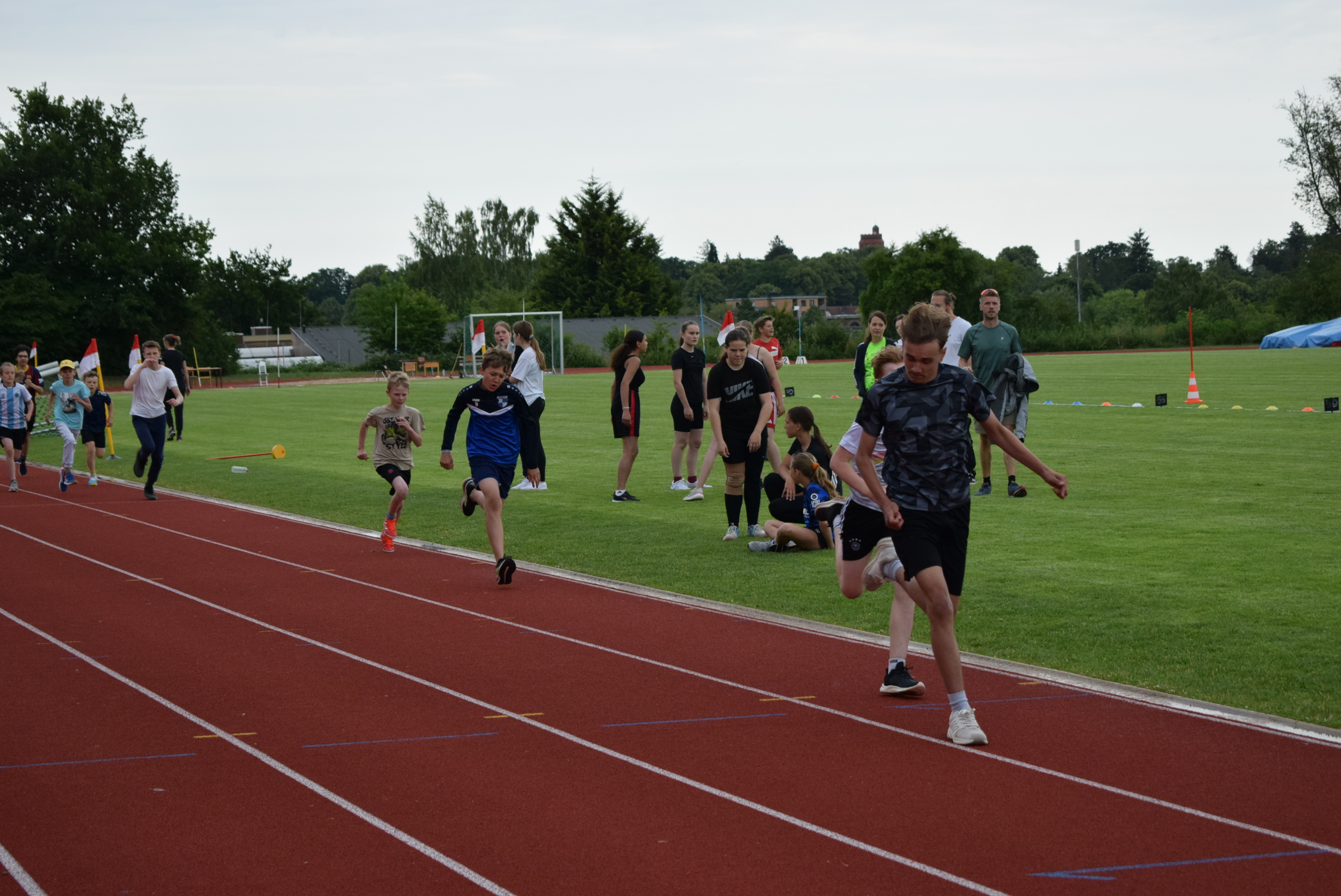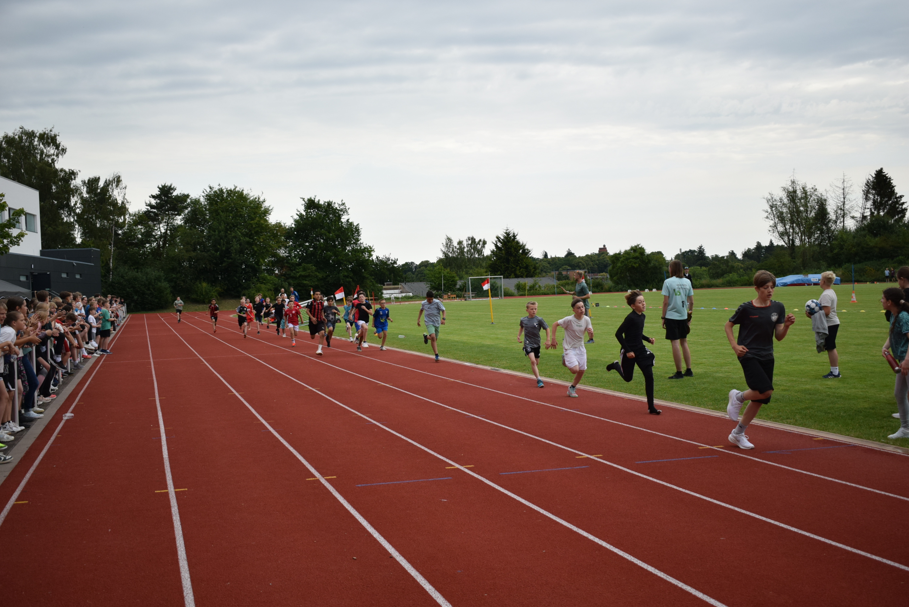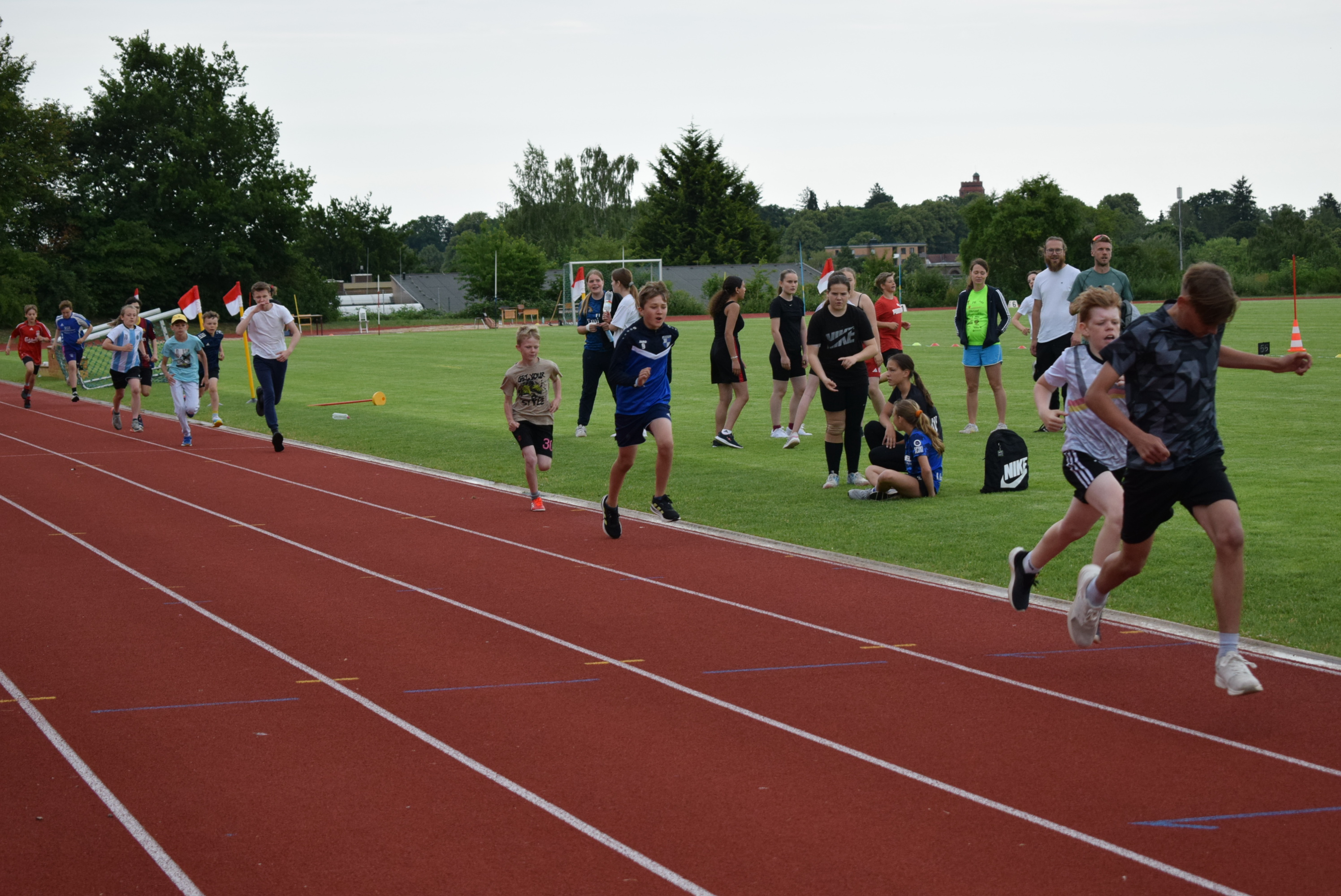 Dabei wurden die Klassen von ihrem/ihrer Klassenlehrer/in durch die Disziplinen begleitet und unterstützt. Im Anschluss an den Dreikampf wurden in den Jahrgängen 5-7 jeweils vier Mädchen und vier Jungen ausgewählt, um ihre Klasse bei den Pendelstaffeln zu vertreten. Jeder Staffelteilnehmer musste 50 m im sprinten, bevor der Staffelstab weitergegeben wurde.