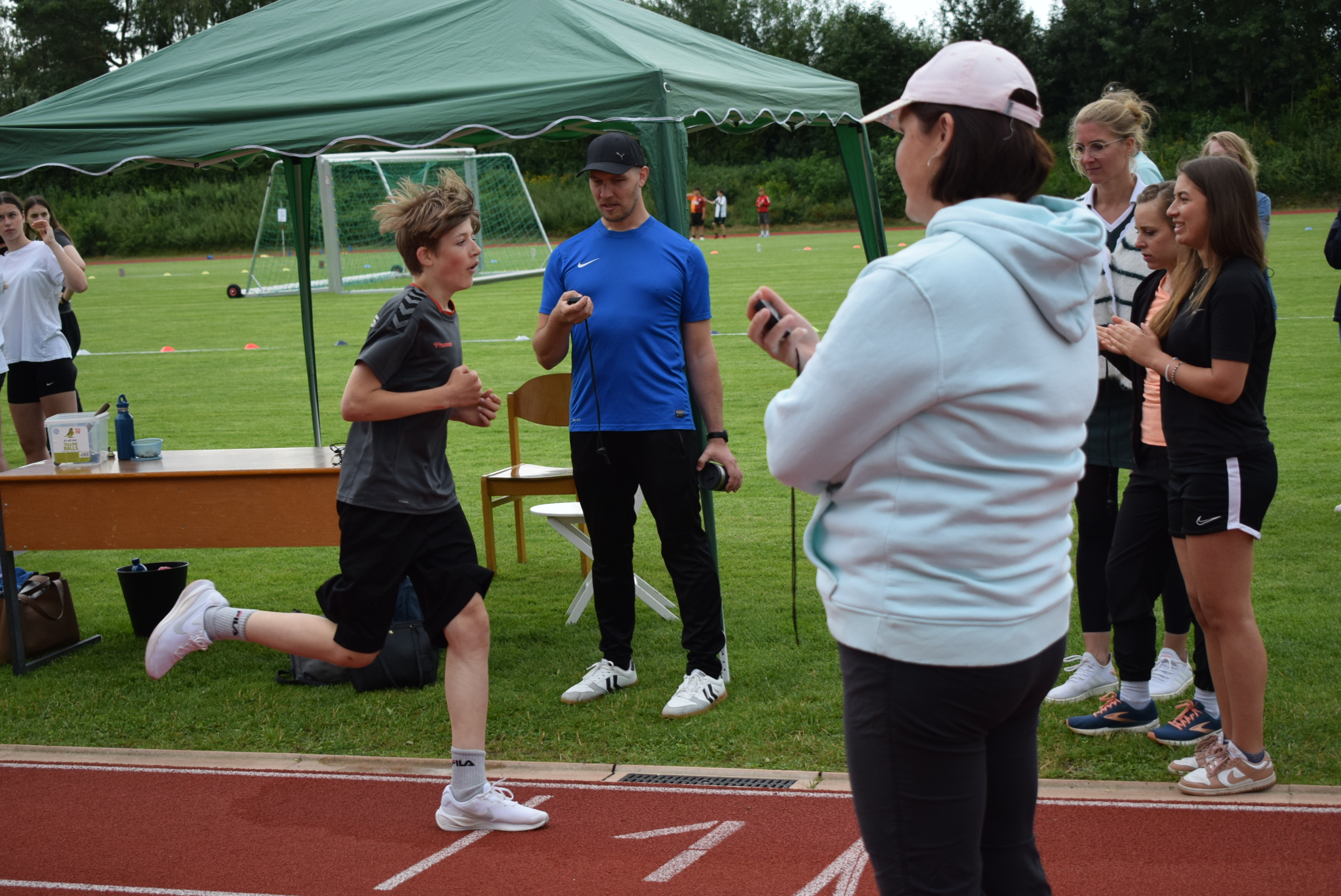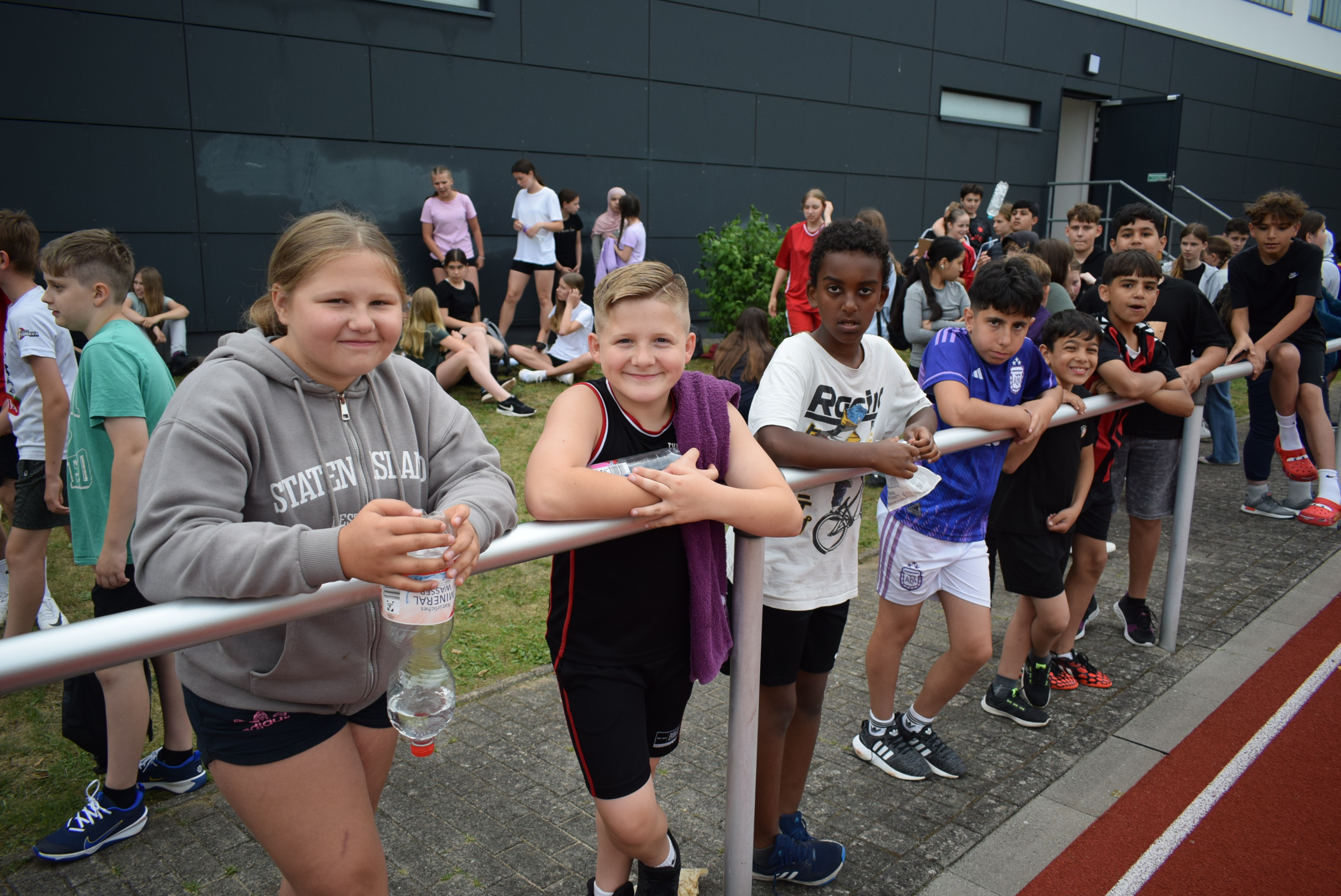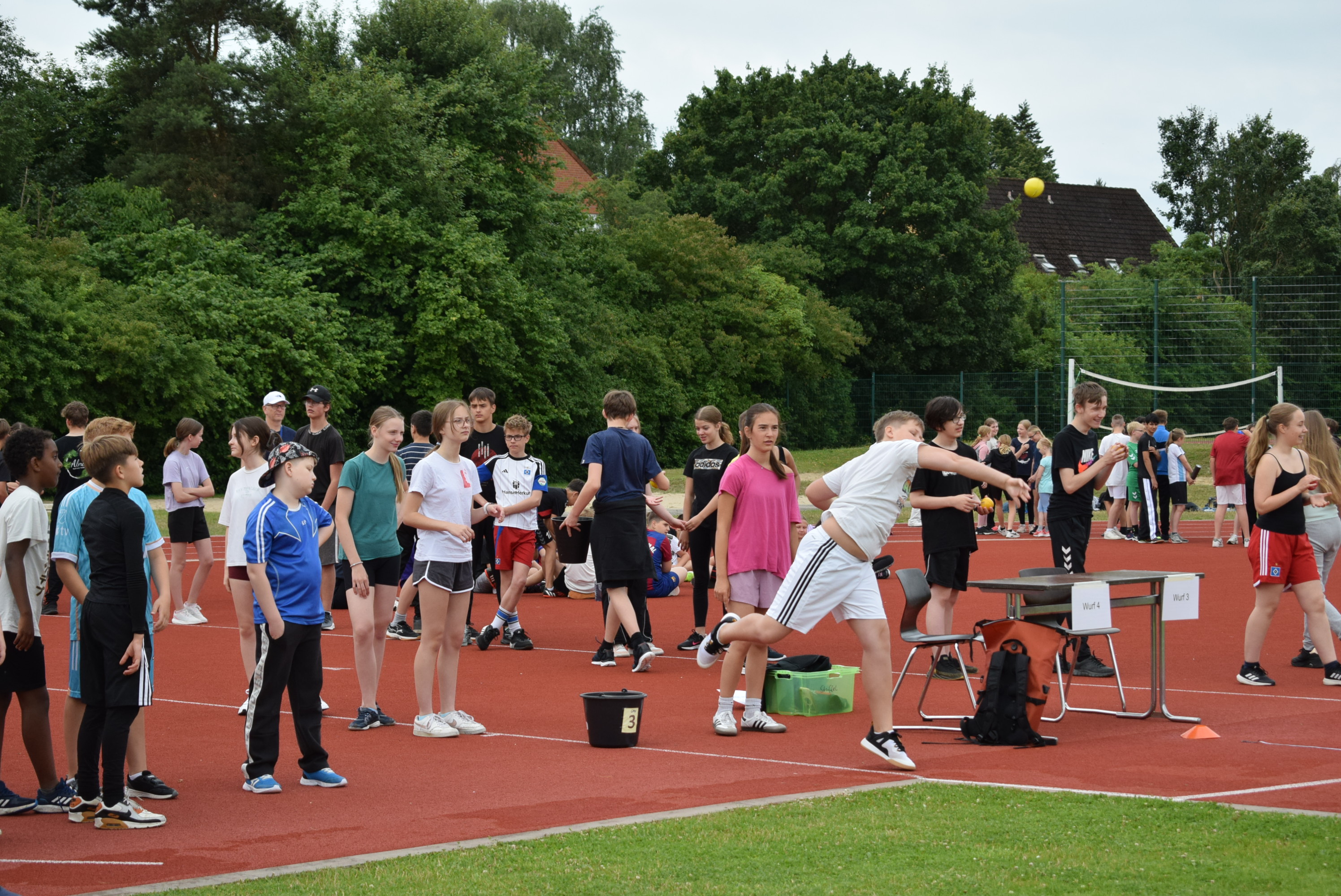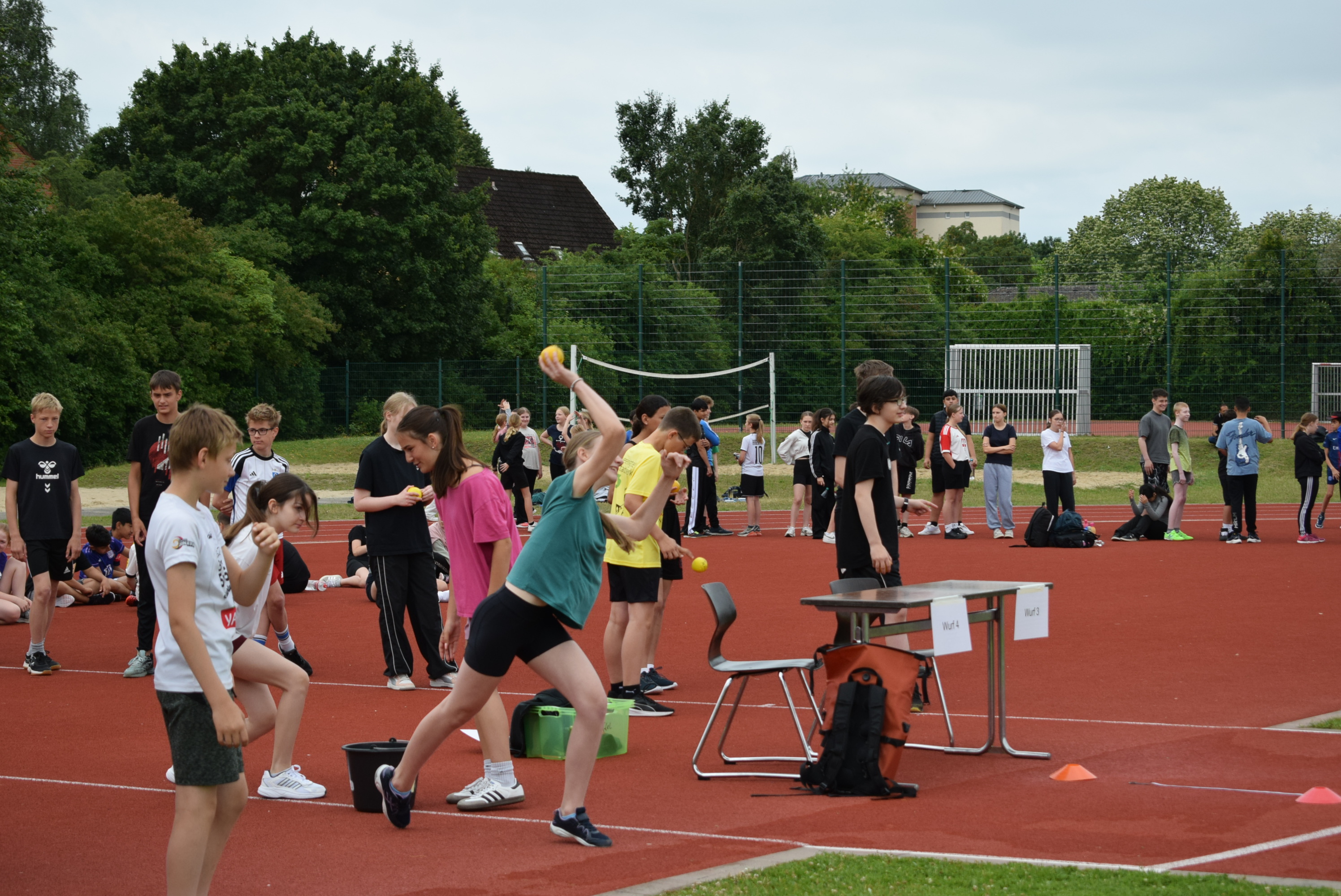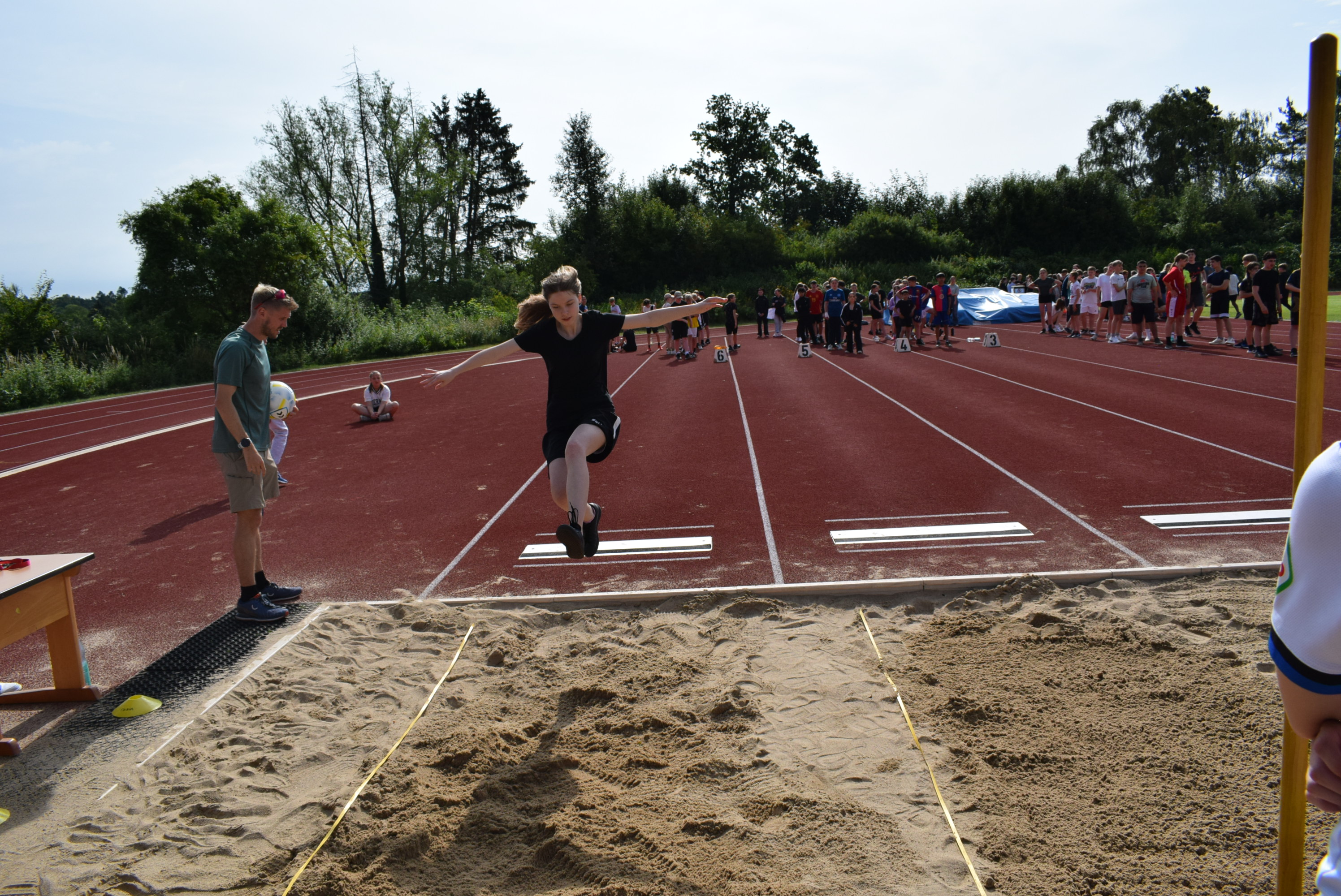 Dabei wurden die Klassen von ihrem/ihrer Klassenlehrer/in durch die Disziplinen begleitet und unterstützt. Im Anschluss an den Dreikampf wurden in den Jahrgängen 5-7 jeweils vier Mädchen und vier Jungen ausgewählt, um ihre Klasse bei den Pendelstaffeln zu vertreten. Jeder Staffelteilnehmer musste 50 m im sprinten, bevor der Staffelstab weitergegeben wurde.