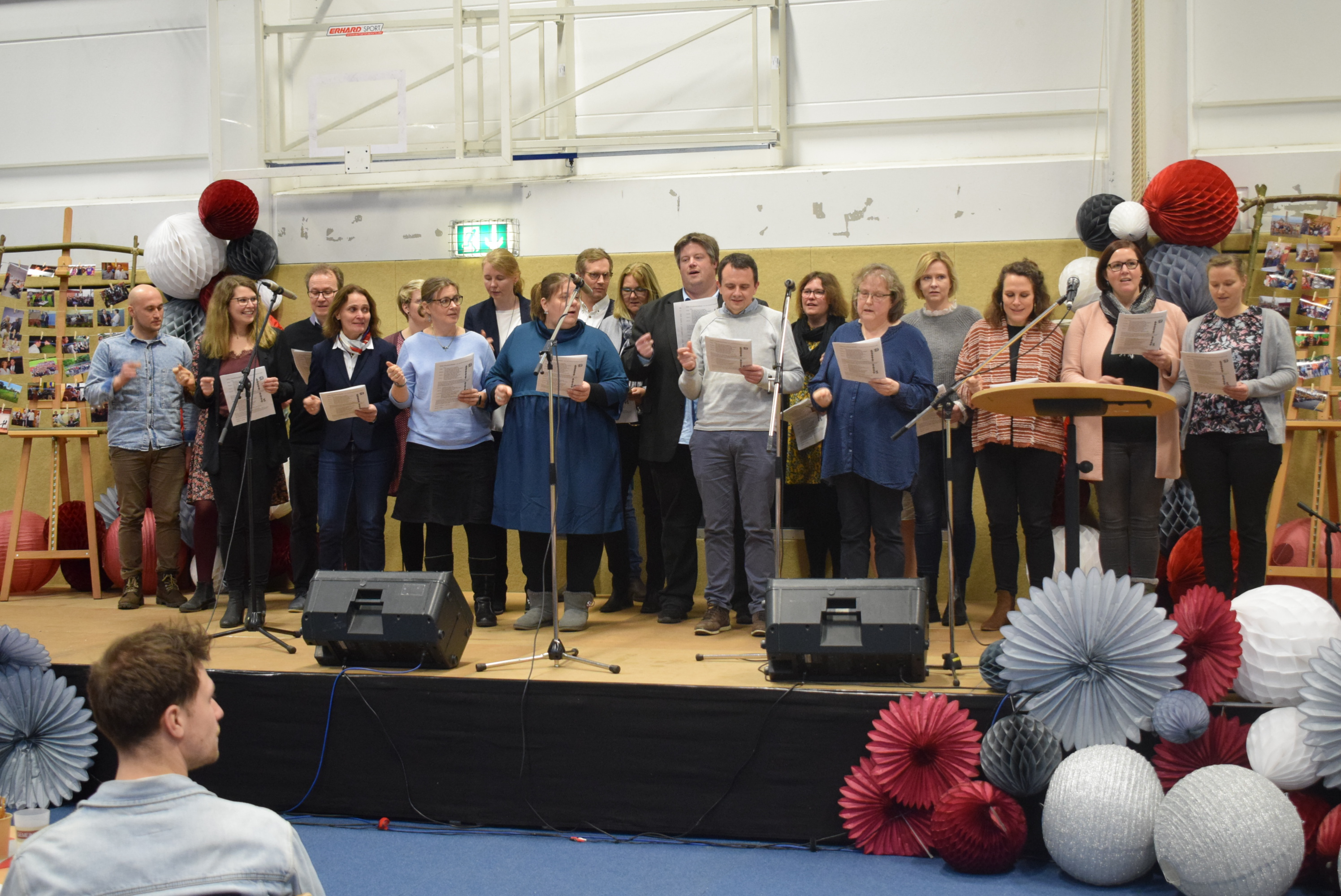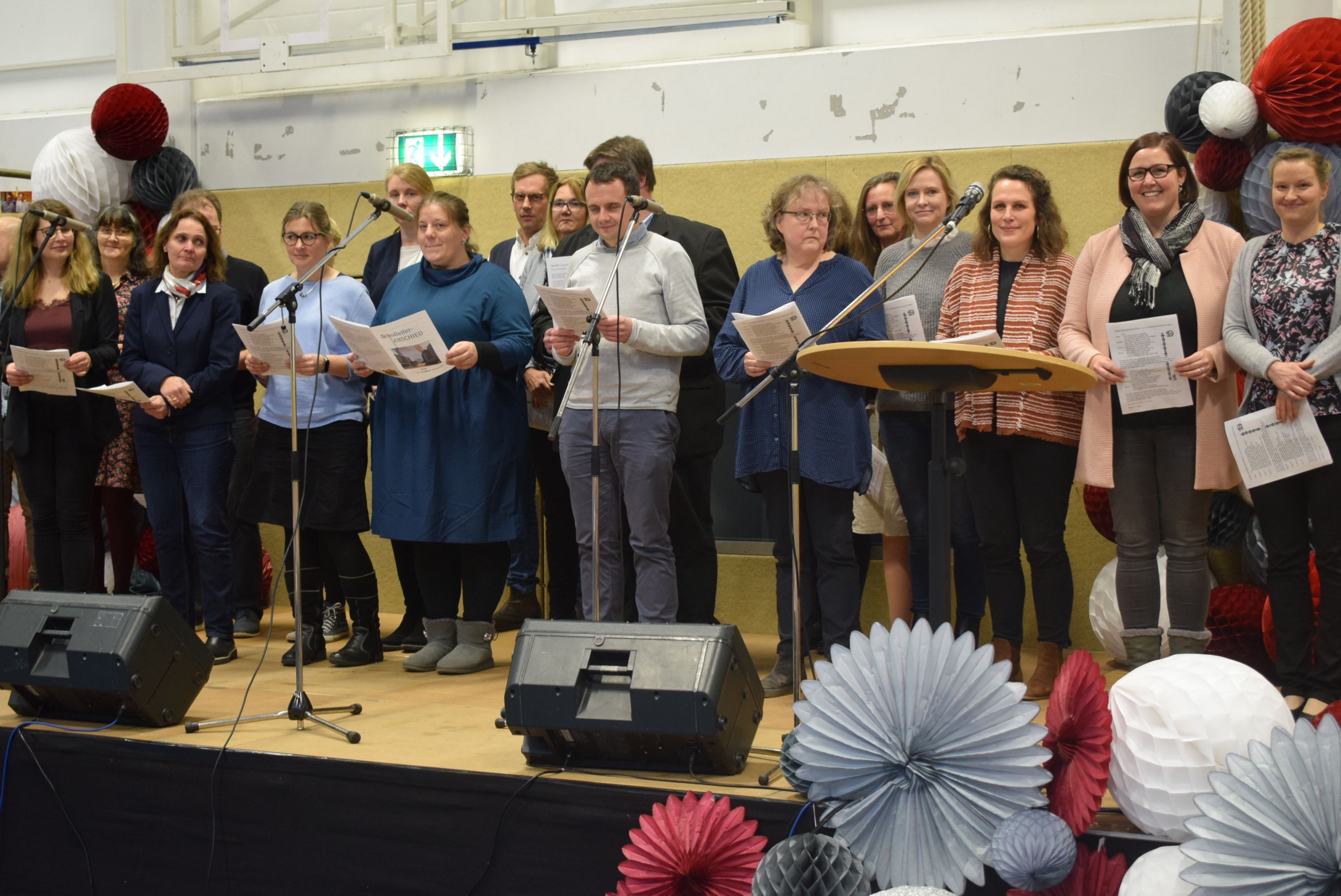Der Lehrerchor sang mit der musikalischen Begleitung des WPU I „Musik“ mehrere auf Herrn Dr. Schmidt und Frau Röper umgetextete Lieder und würdigte so ihre langjährige Arbeit, nicht ohne die Wehmut auszudrücken, die viele bei diesem Abschied fühlten.