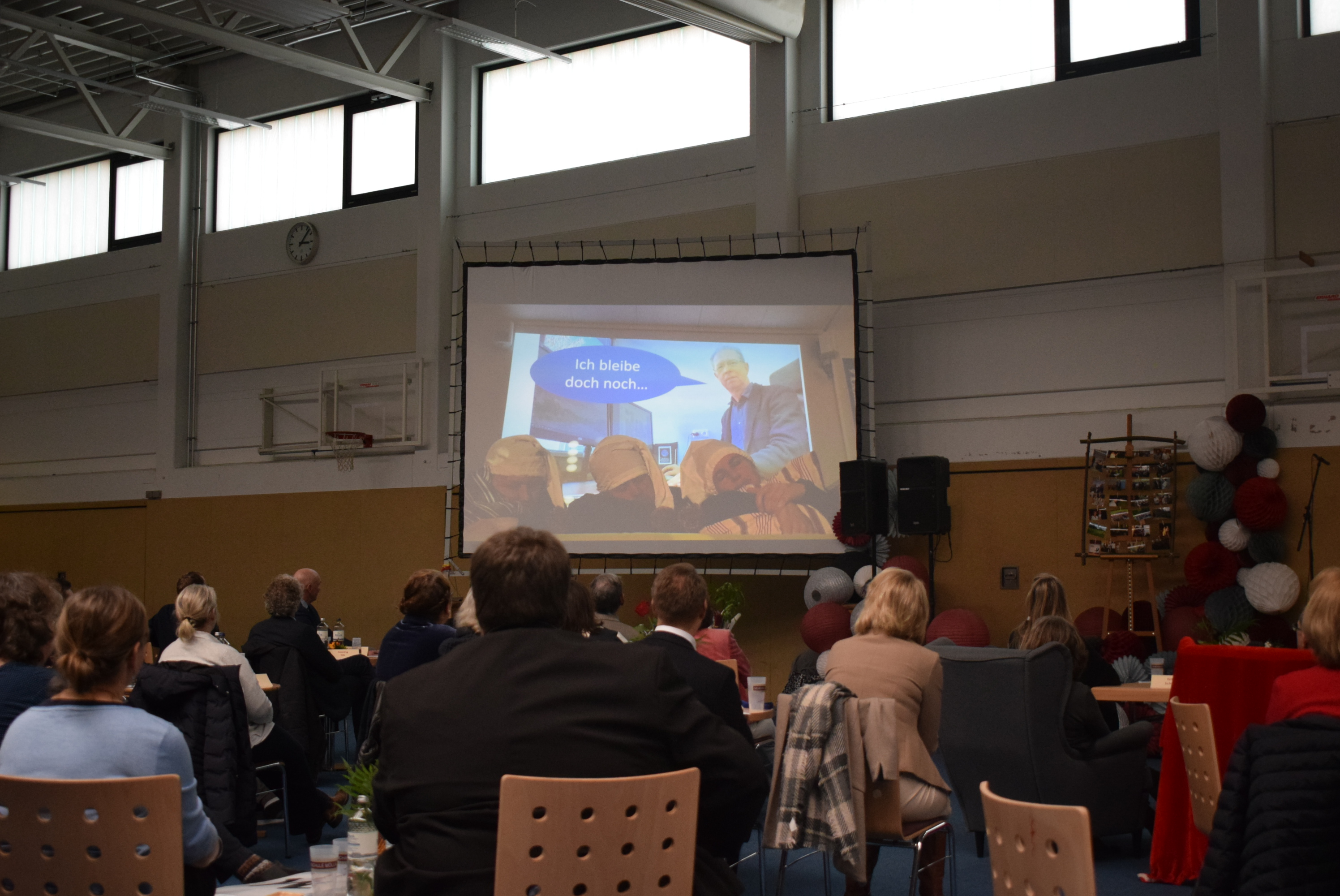 Die Lehrkräfte der Gemeinschaftsschule Mölln zeigten auch einen Film, in dem sie sich zur Musik „Der perfekte Moment“ von Max Raabe in kleinen Filmszenen in die Rolle eines Rentners versetzten.