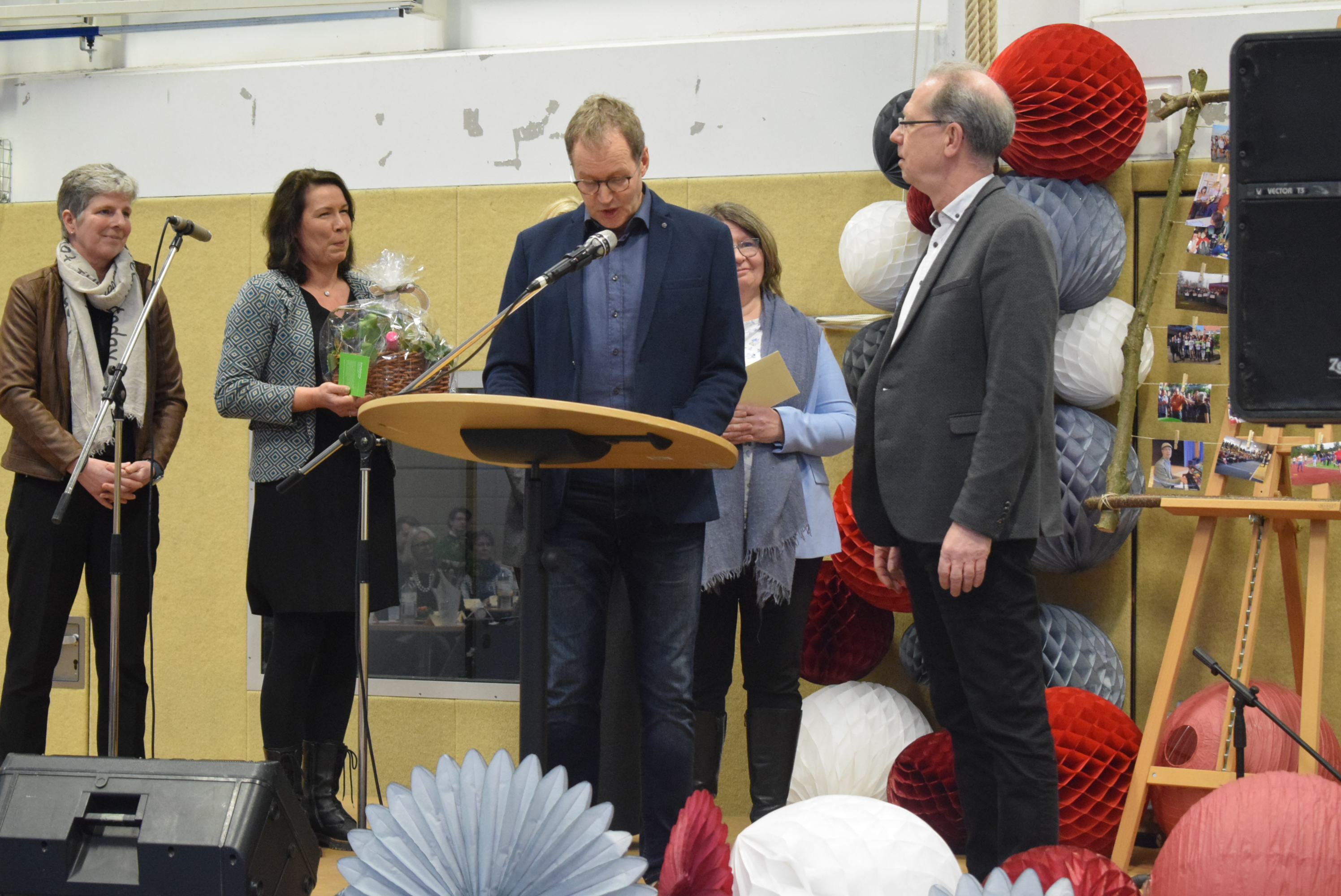Es wurden viele Reden gehalten, in denen die Arbeit der beiden Lehrkräfte gewürdigt wurde. Es sprachen unter anderem die Vorsitzende des örtlichen Personalrates der Gemeinschaftsschule Mölln, Frau Bettina Evers und Herr Heiko Klemann, der stellvertretende Schulleiter der Gemeinschaftsschule Mölln.