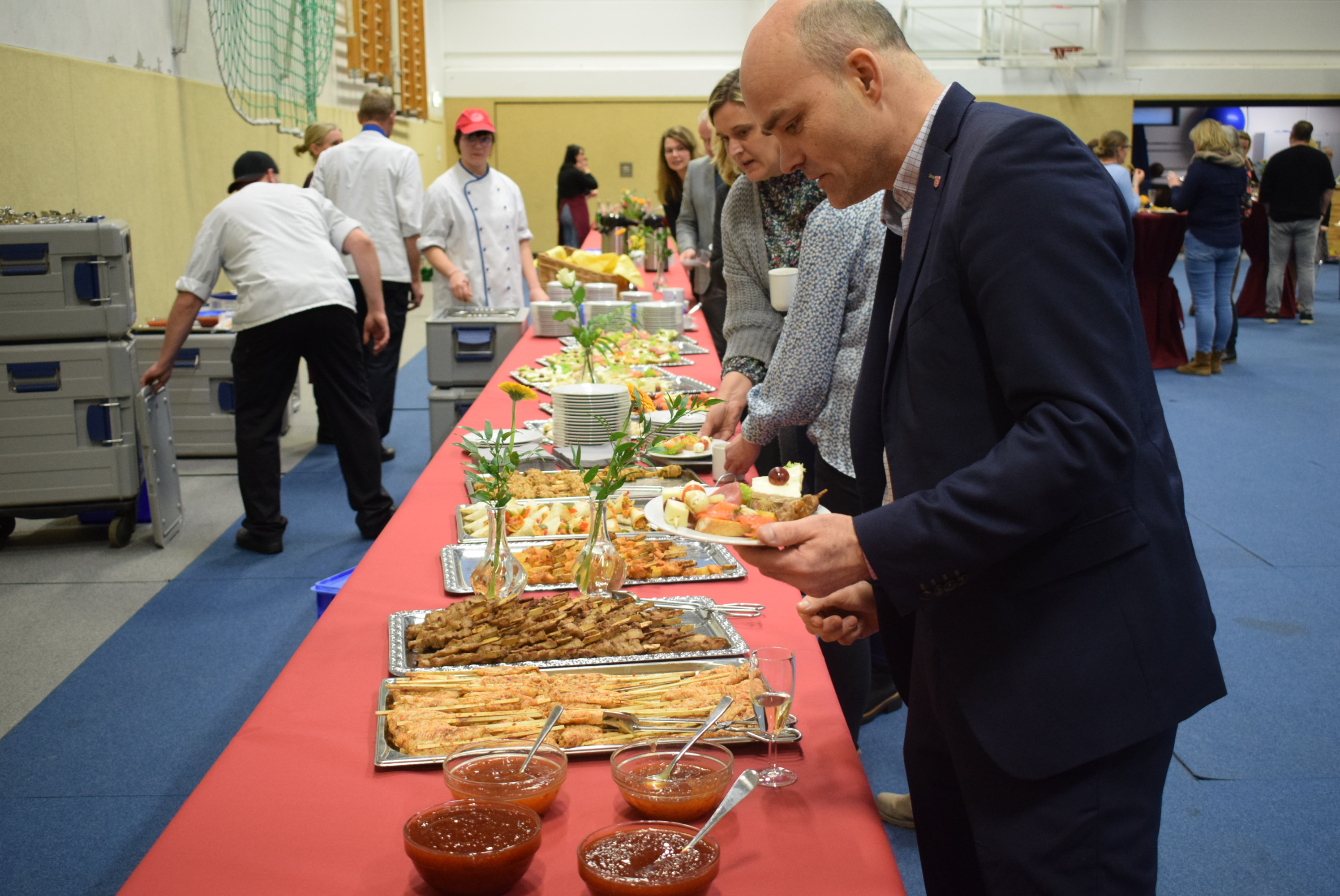 Den Abschluss des Tages bildete ein leckerer von der Mensa auf dem Schulberg zubereiteter Imbiss, bei dem Schülerinnen und Schüler des WPU I „Verbraucherbildung“ den Getränkeservice übernahmen.