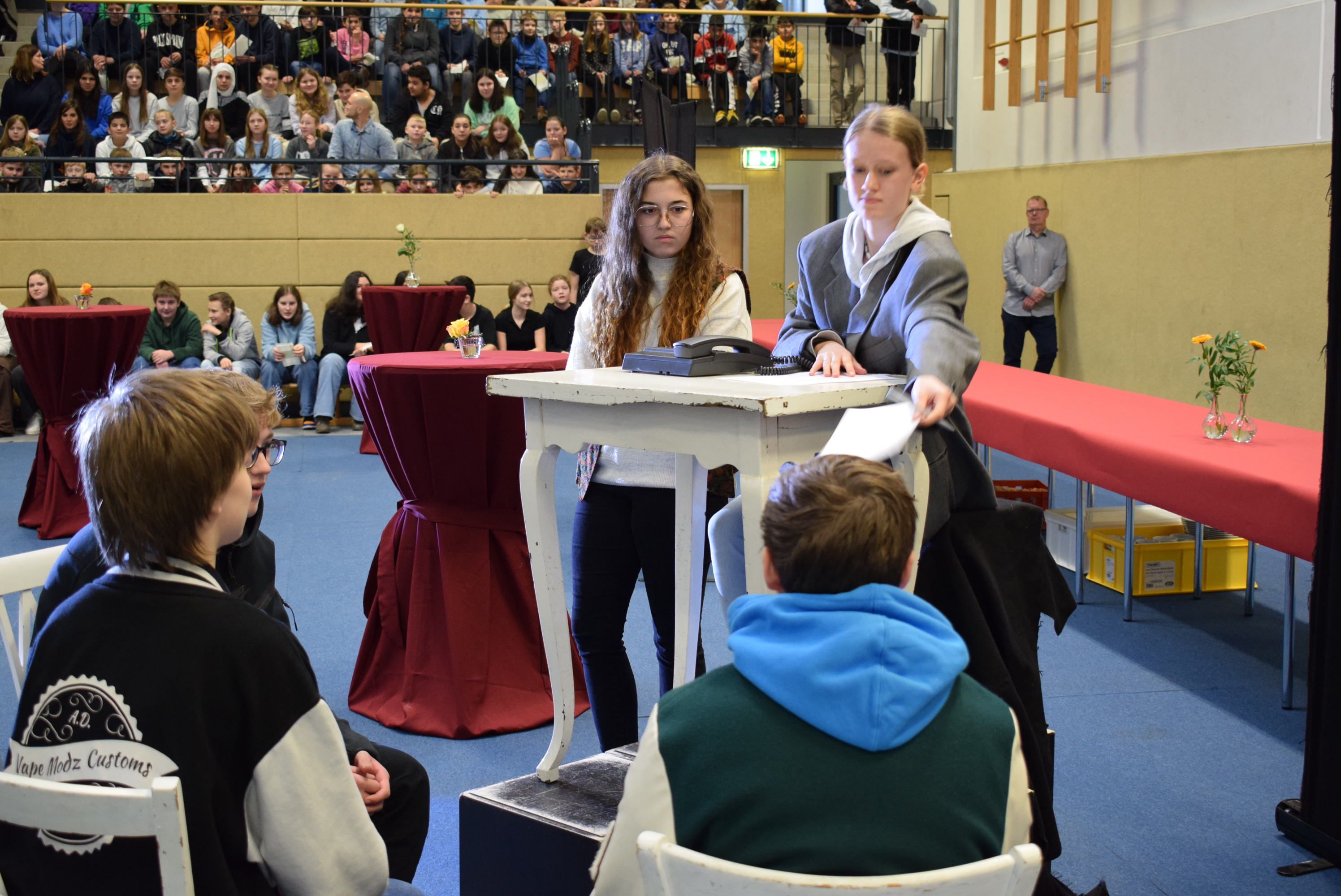 Die Klassensprecher aller Klassen traten auf die Bühne und trugen einzeln die Wünsche ihrer Klassen vor, dabei gab es viele Lacher, denn die Wünsche waren zum Teil sehr originell formuliert.