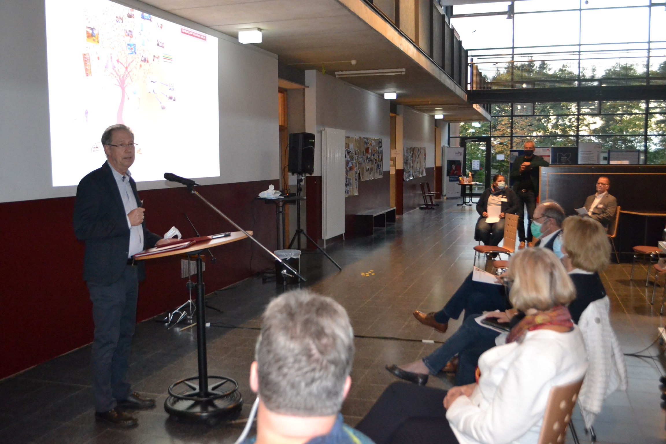 Am Mittwoch, 21.10.2020 haben wir die Möllner Stadtvertreter*innen mit einem Informationsabend in den Prozess unserer Schulentwicklung und die damit verbundenen Ergebnisse der Phase 0 eingebunden. Ziel der Veranstaltung war, die Anforderungen von Schulraum für die pädagogische Arbeit von heute und zukünftig erlebbar zu machen. Die Schulrätin des Kreises Herzogtum Lauenburg, Frau Katrin Thomas, ermunterte die Teilnehmen*innen in ihrem Grußwort zu mutigen Schritten für Schulentwicklungsprozesse.  Bei dieser fraktionsübergreifenden Begegnung gab es mit der Methode „Lernen an Stationen“ folgende Informations-Workshops: